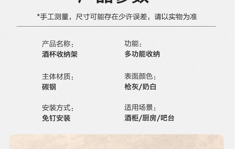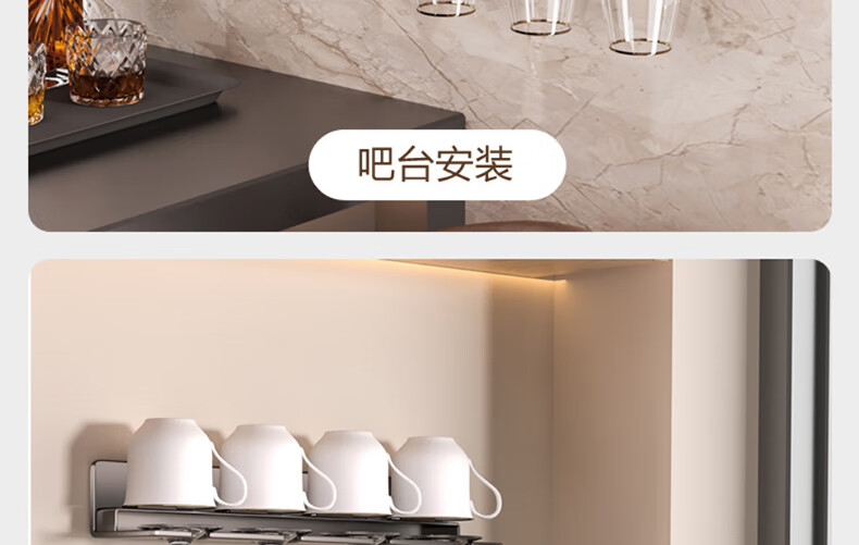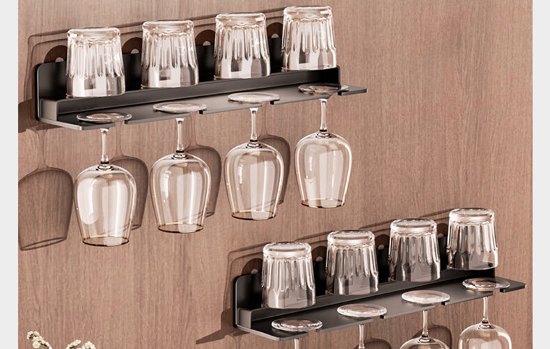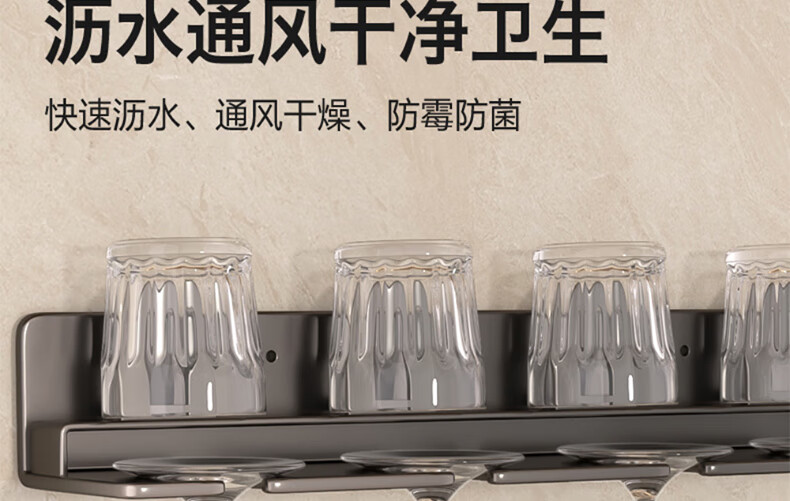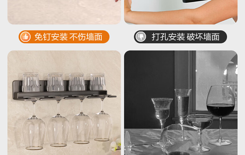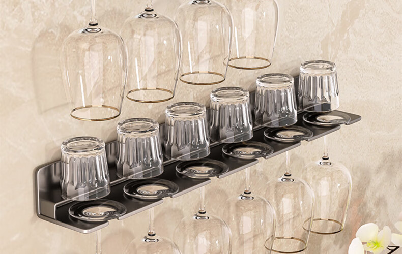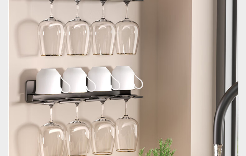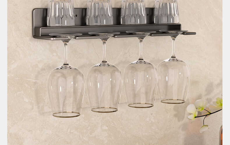 Muju red wine glass rack upside-down goblet storage rack wine cabinet storage wall-mounted cup storage rack light luxury home hanging gun gray 6 cup rack