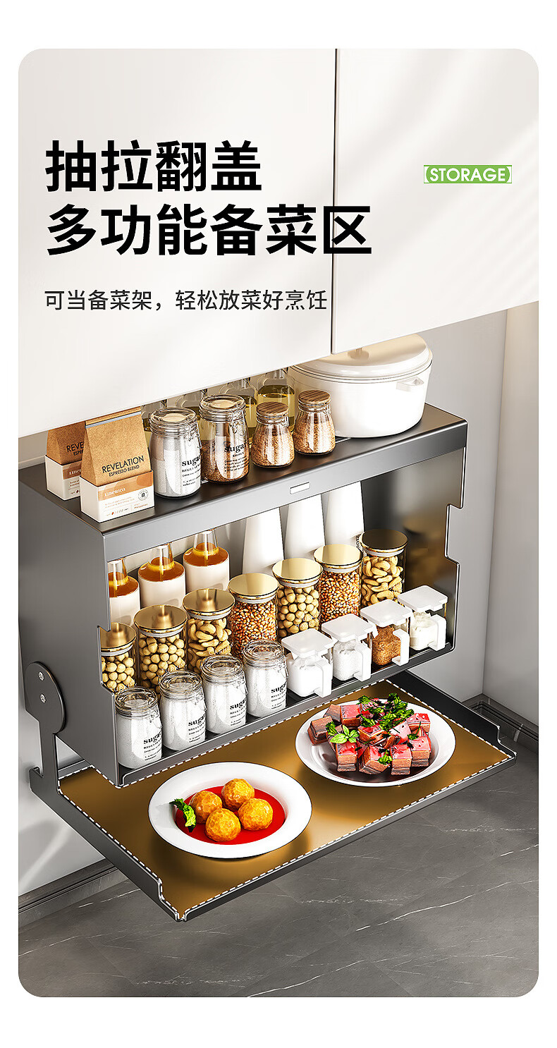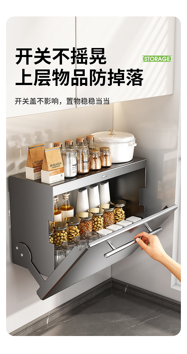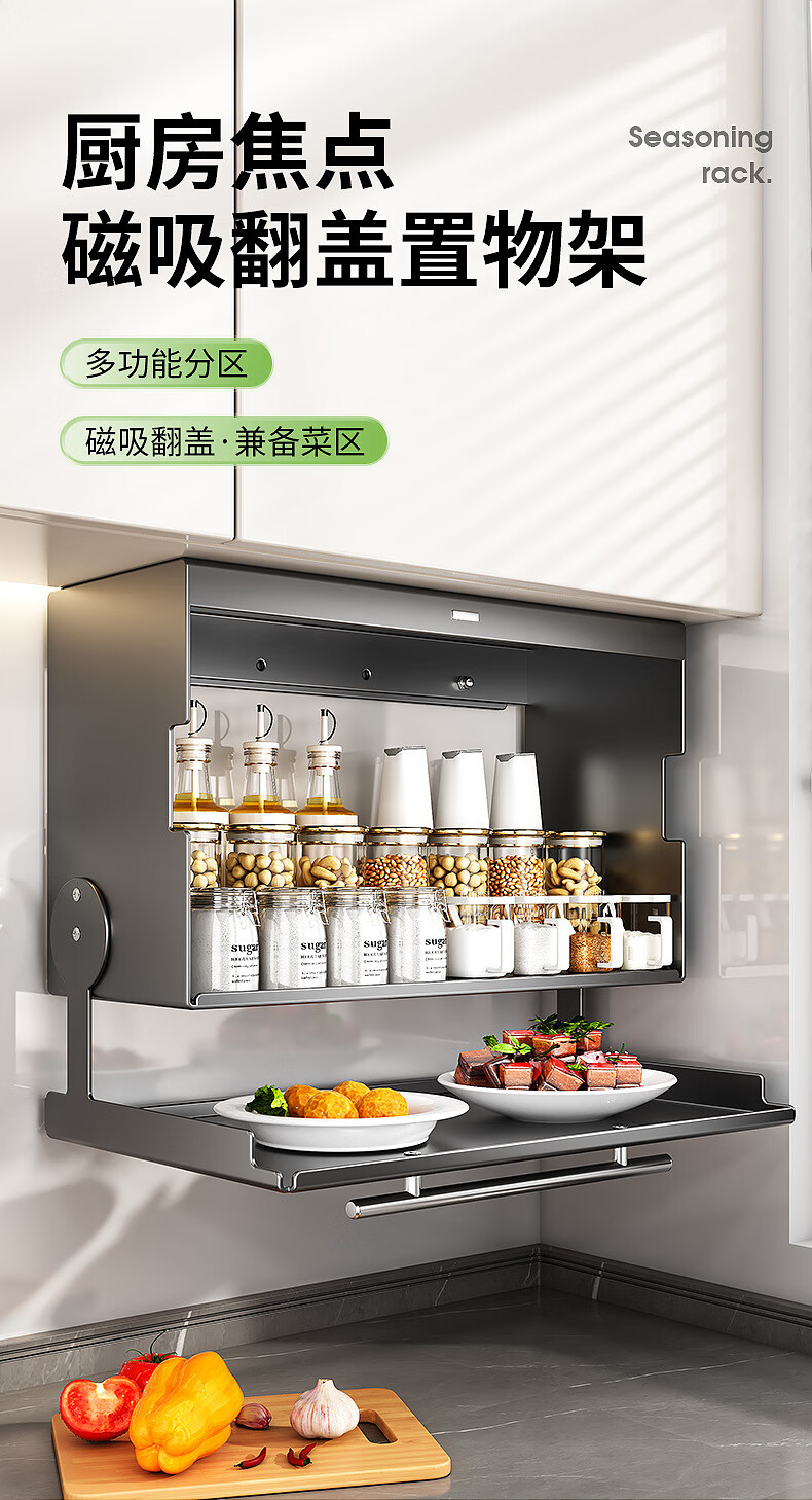Jingyan Kitchen Rack Condiment Wall-mounted Wall Cabinet Pull-down Condiment Rack Wall Preparation Storage Cabinet Storage Rack Upgraded and Height Pull-out Condiment Storage Rack No Punching Strong Load-bearing丨Strong Magnetic Design丨90 Free Folding and Opening
