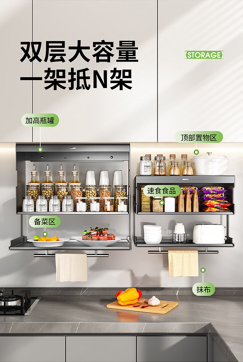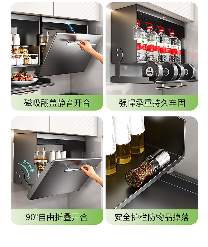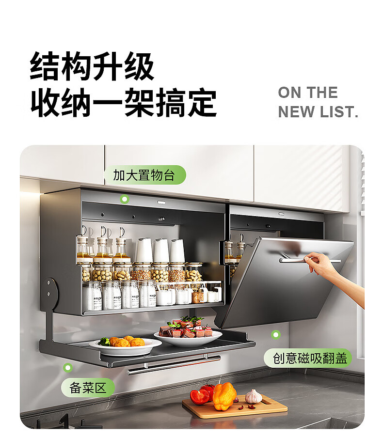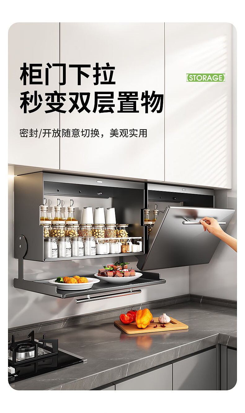 Jingyan Kitchen Rack Condiment Wall-mounted Wall Cabinet Pull-down Condiment Rack Wall Preparation Storage Cabinet Storage Rack Upgraded and Height Pull-out Condiment Storage Rack No Punching Strong Load-bearing丨Strong Magnetic Design丨90 Free Folding and Opening