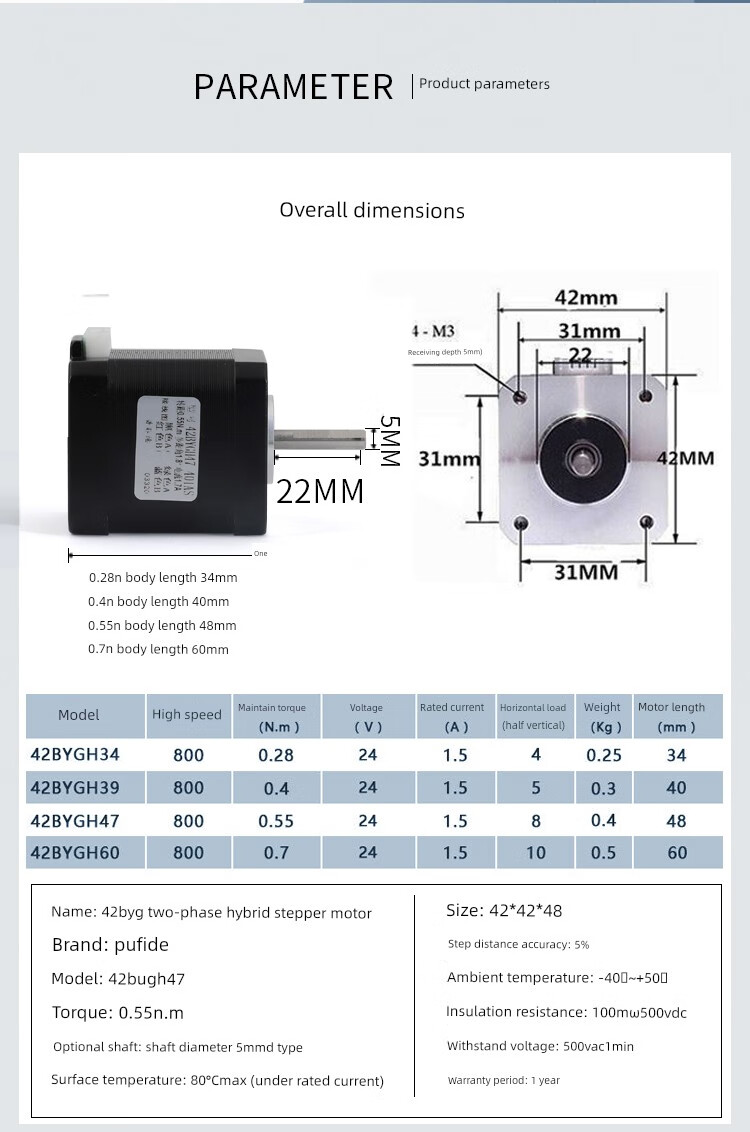 Yue Changsheng Purphide 42 stepper motor unit 0.55N two-phase four-wire 42Bygh47 micro 3D printer robotic arm 0.55N+DM420 with brake (low heat version)