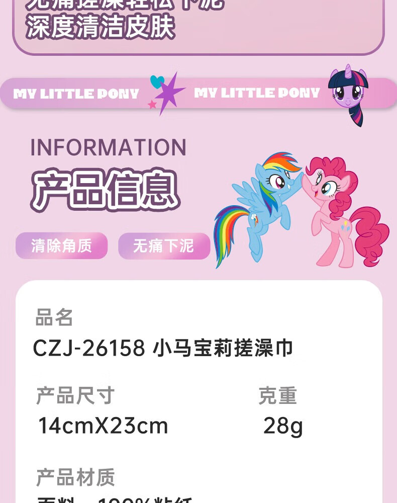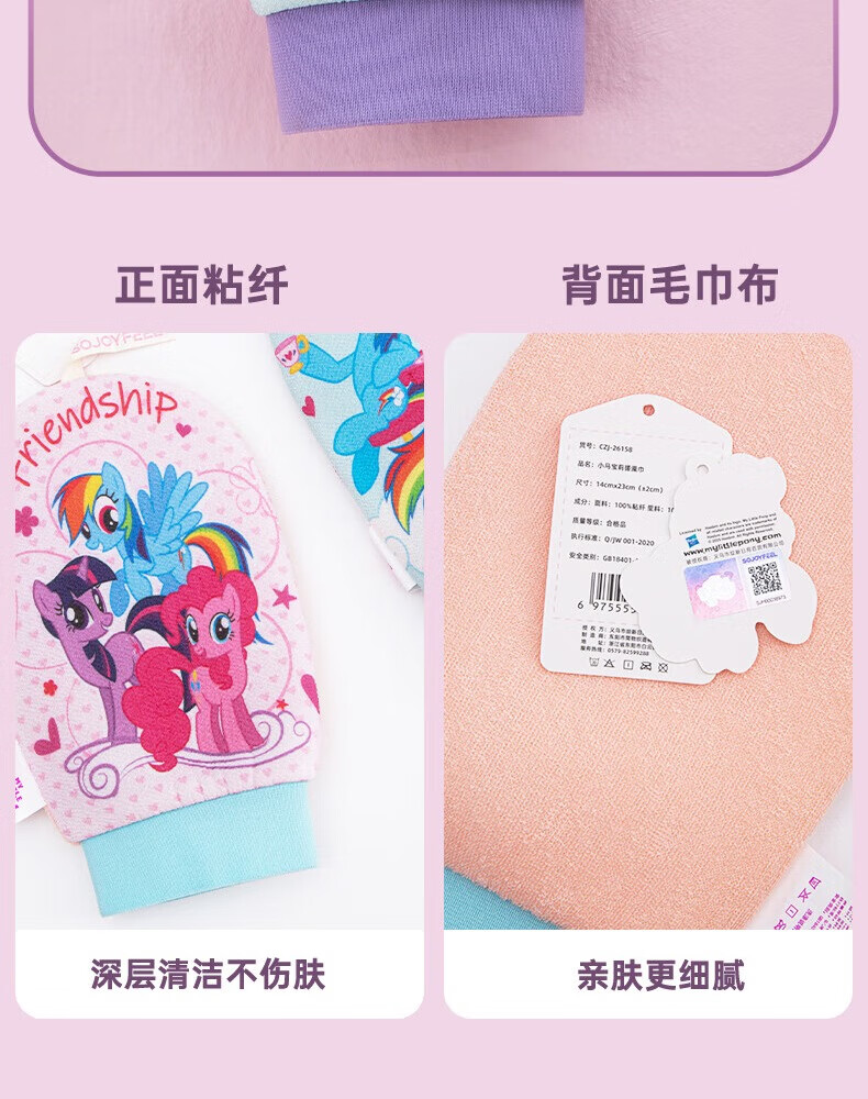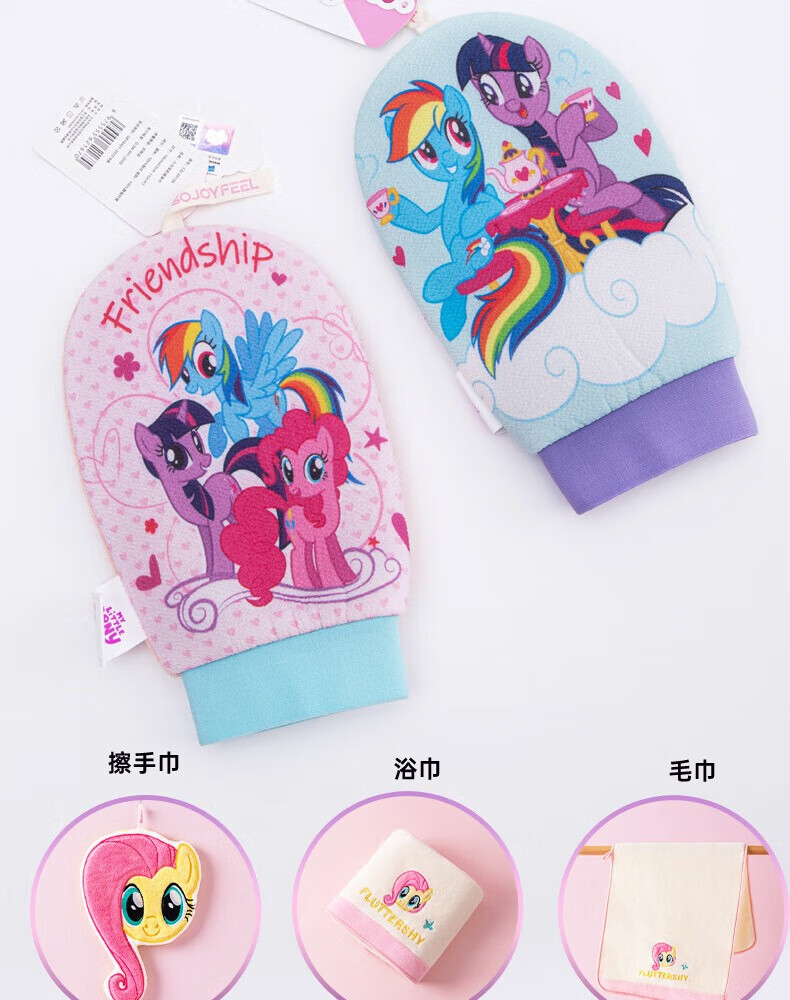 Cute My Little Pony bath towel, children's back rub artifact, no pain in mud, bath towel, women's medium sand rub back towel, genuine blue bottom pony