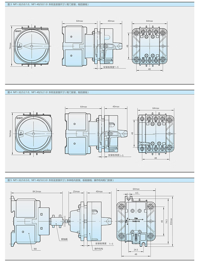 NF1-32/3 0.1.0 Power distribution cabinet machine tool GLD11 load isolation power supply 40A rotary open 32A 3P model NF1-32/3 0.1.0