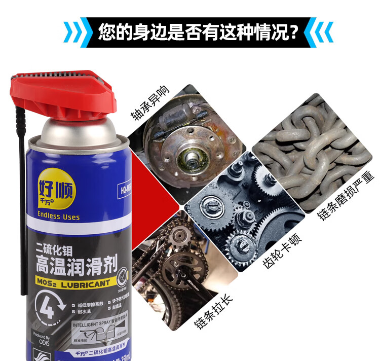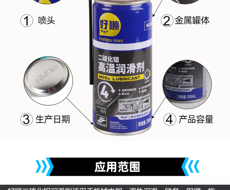 Haoshun Wanwan molybdenum disulfide high temperature resistant lubricant reduces mechanical bearing gear chain friction grease spray molybdenum disulfide high temperature resistant lubricant 350ml 24 bottles__ box