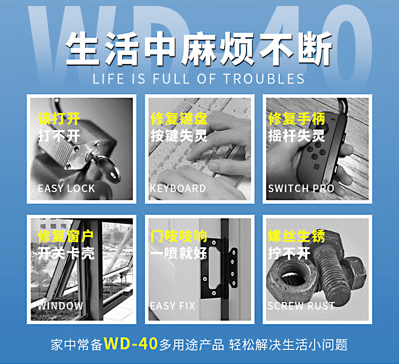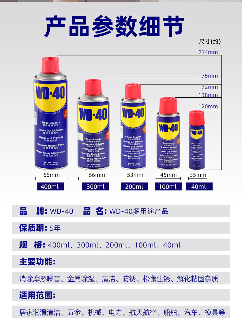 WD40 anti-rust lubricant metal quick rust removal chain cleaning liquid screw bolt loosening agent anti-rust oil WD-40 rust removal and anti-rust lubricant 400 ml 5 bottles