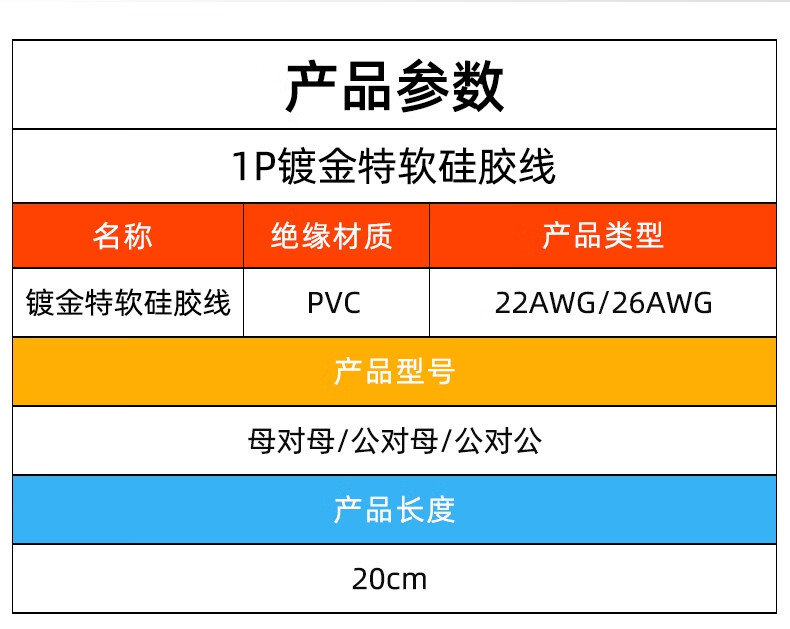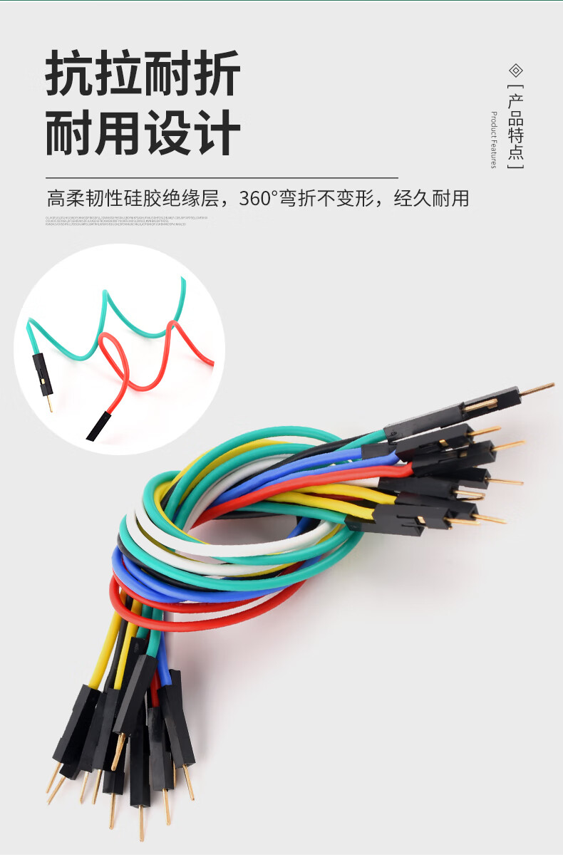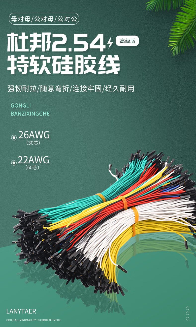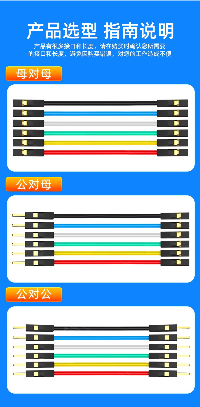 DuPont 2.54 extra soft silicone wire gold-plated terminals ultra-soft DuPont wire female to female to male to male high temperature test wire special soft silicone gold-plated 26AWG six colors male to female 20cm 10 each No specifications