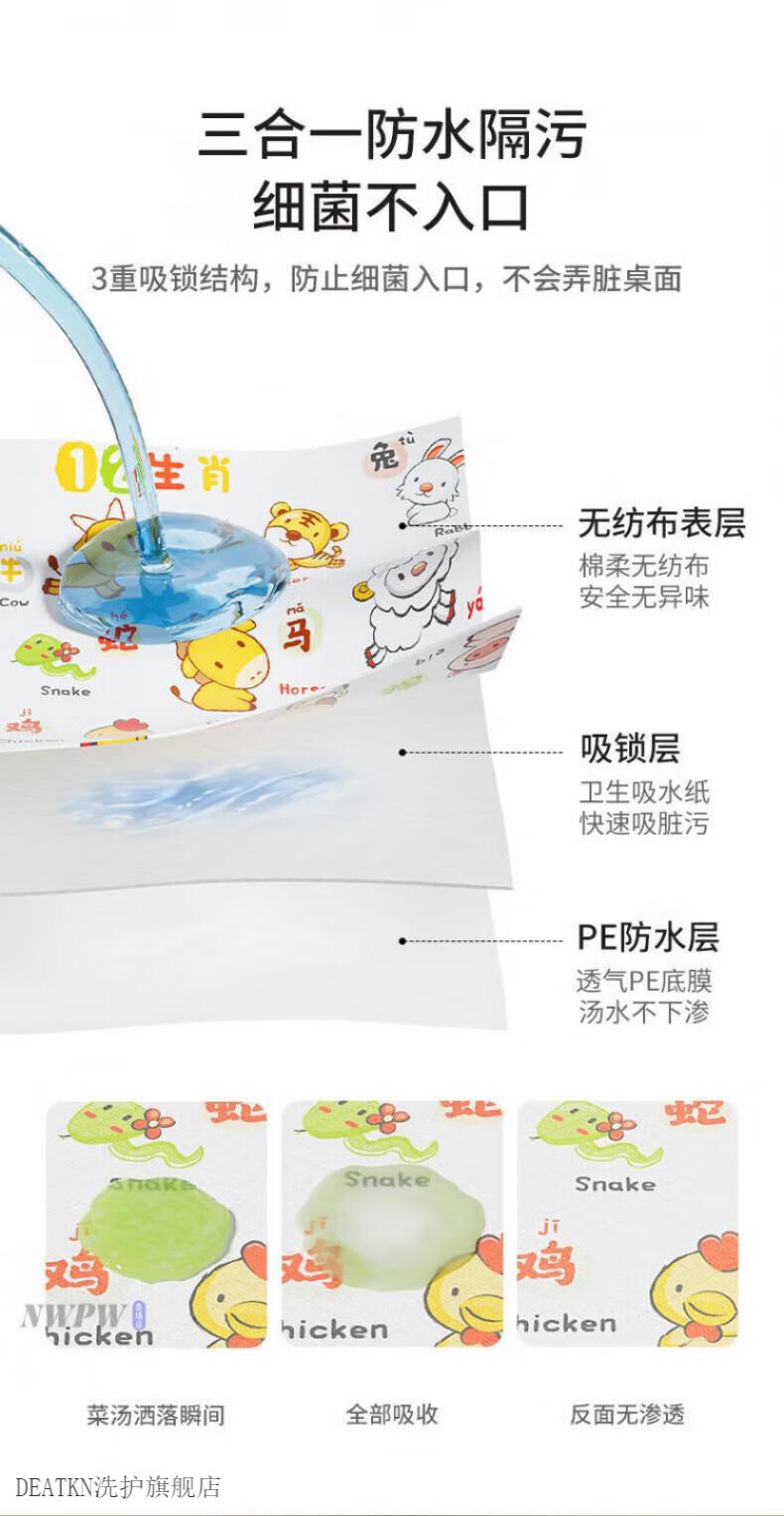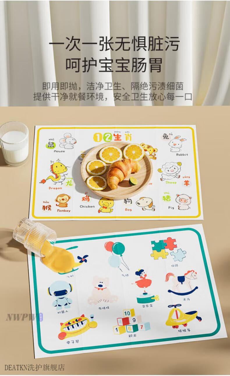 DEATKN German high-end disposable placemat baby table mat baby eating bowl mat elementary school children waterproof and oil-proof tablecloth 20 pieces individually packaged zodiac signs - oil absorption and anti-penetration