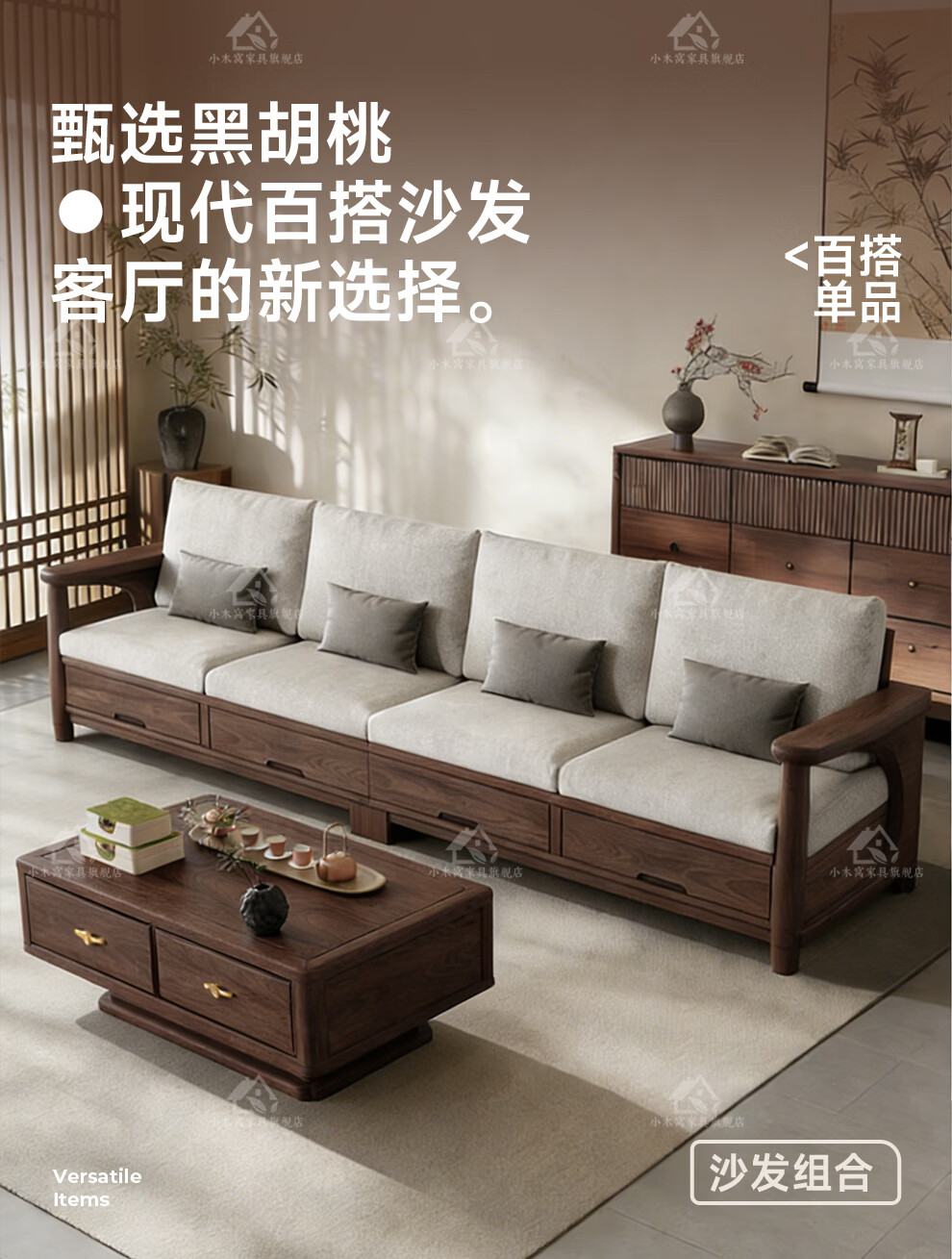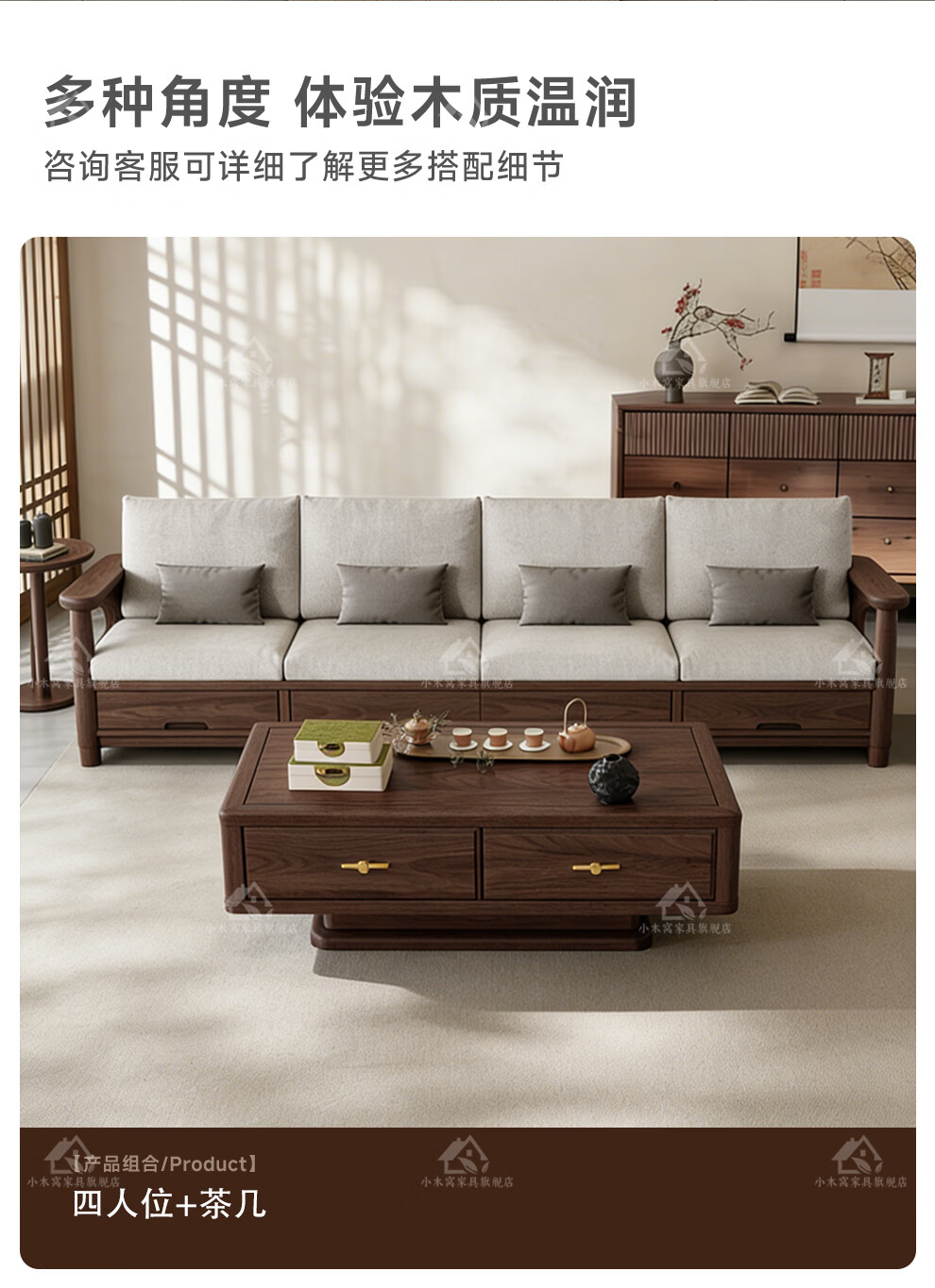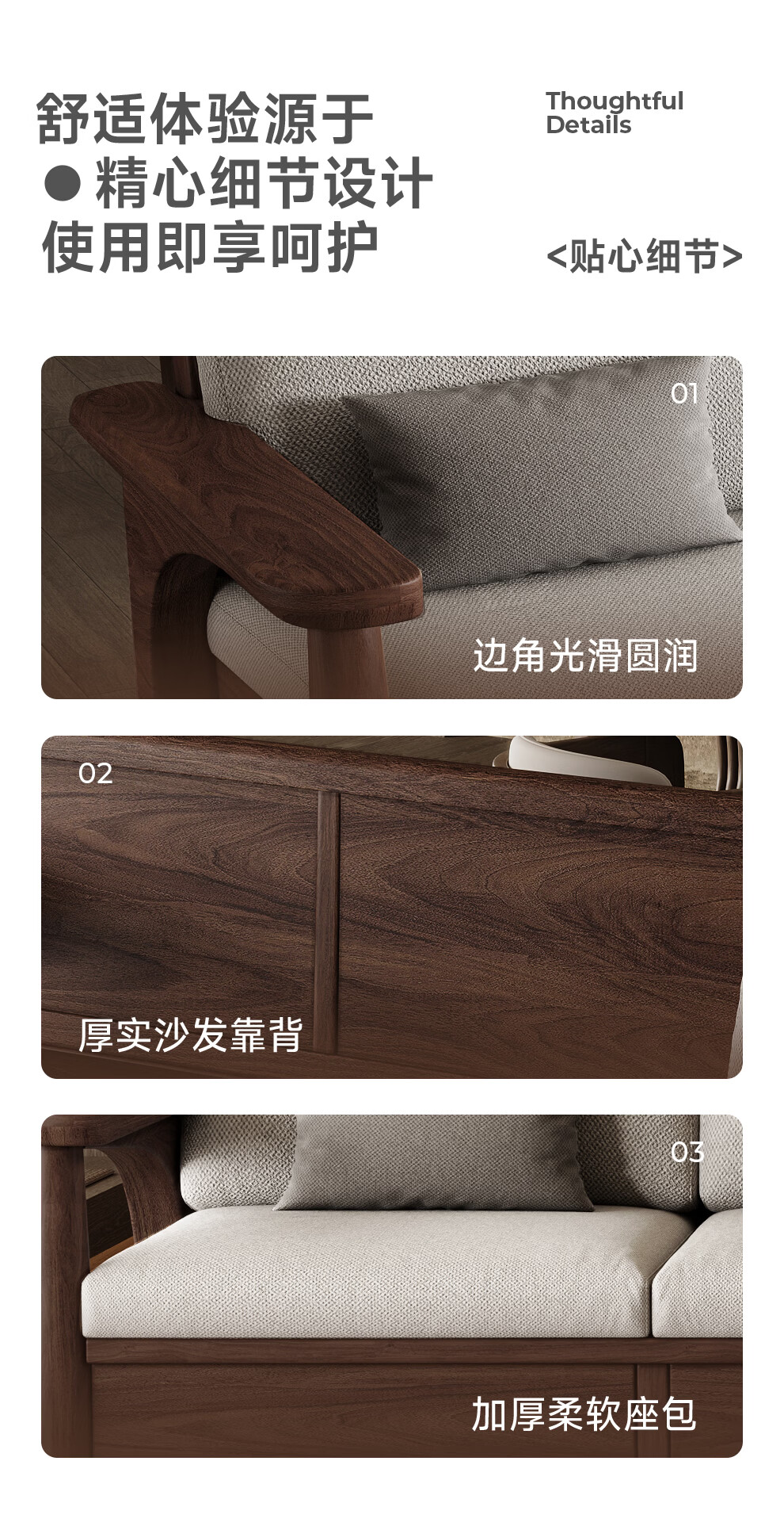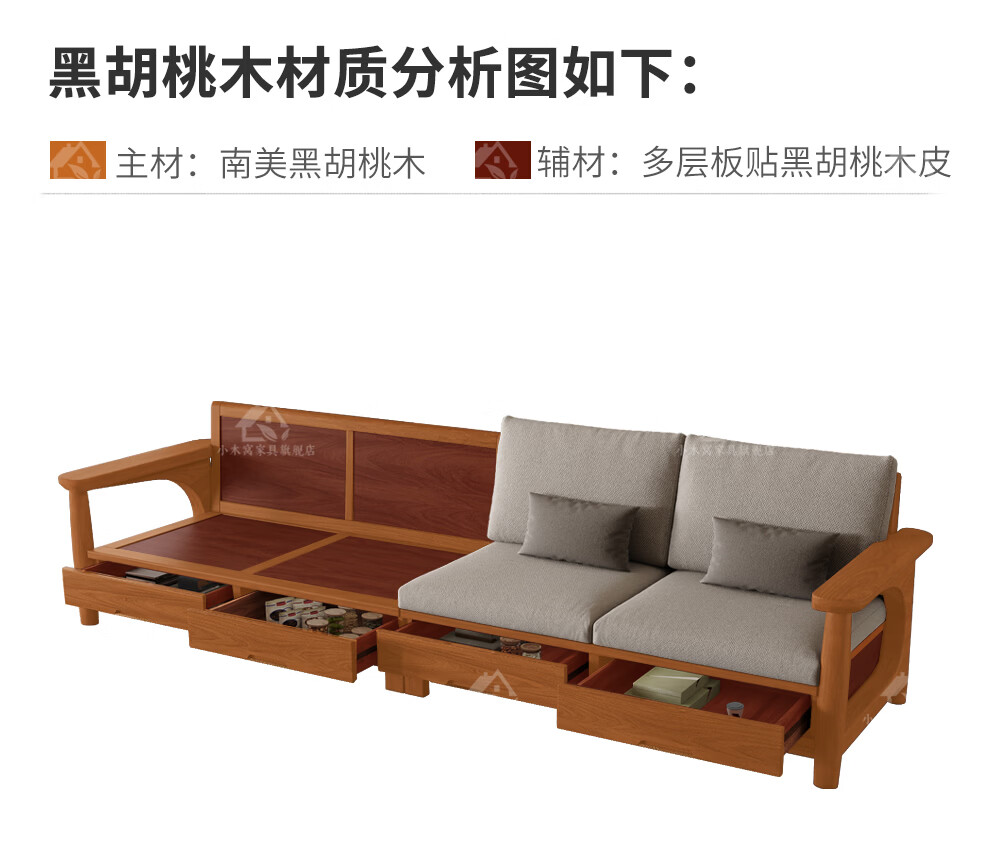 Small wooden nest sofa Song's aesthetic all solid wood sofa living room 2025 new small apartment sofa combination black walnut straight three-seat combination