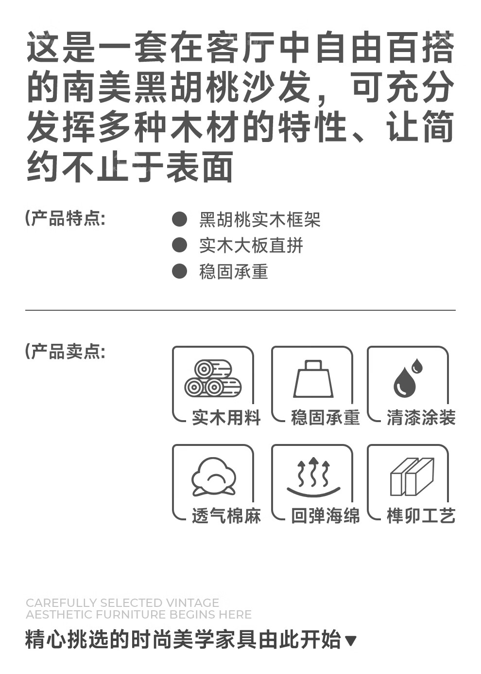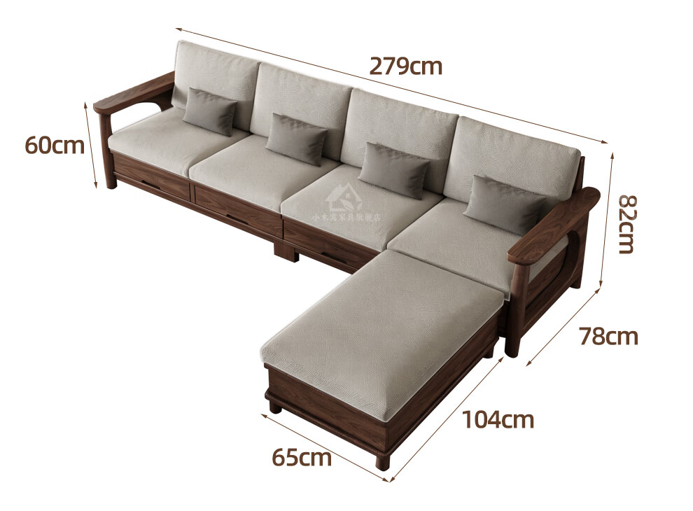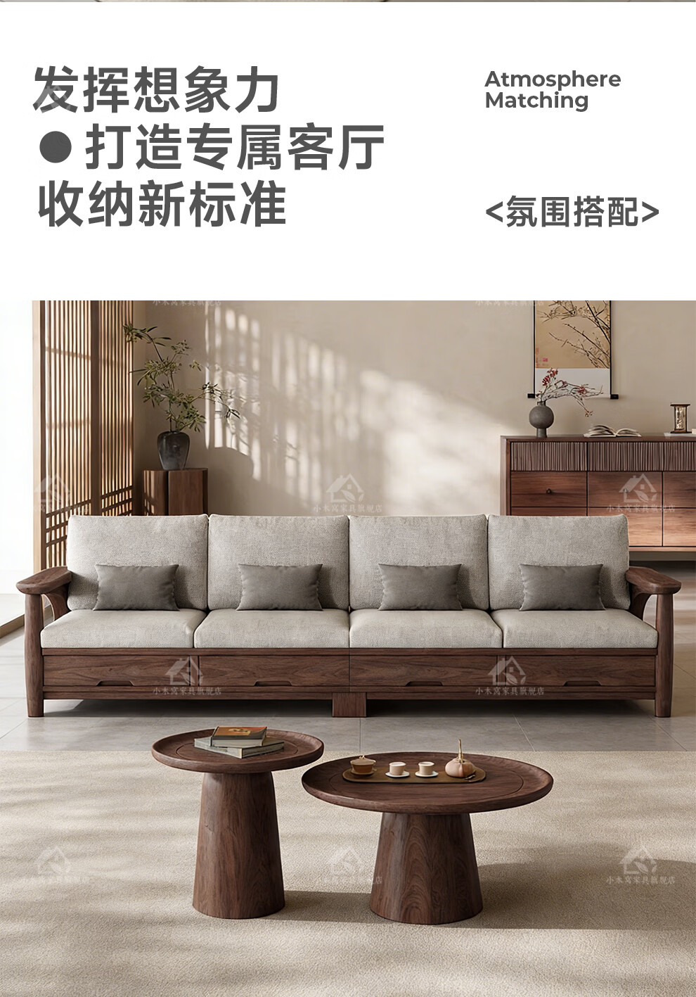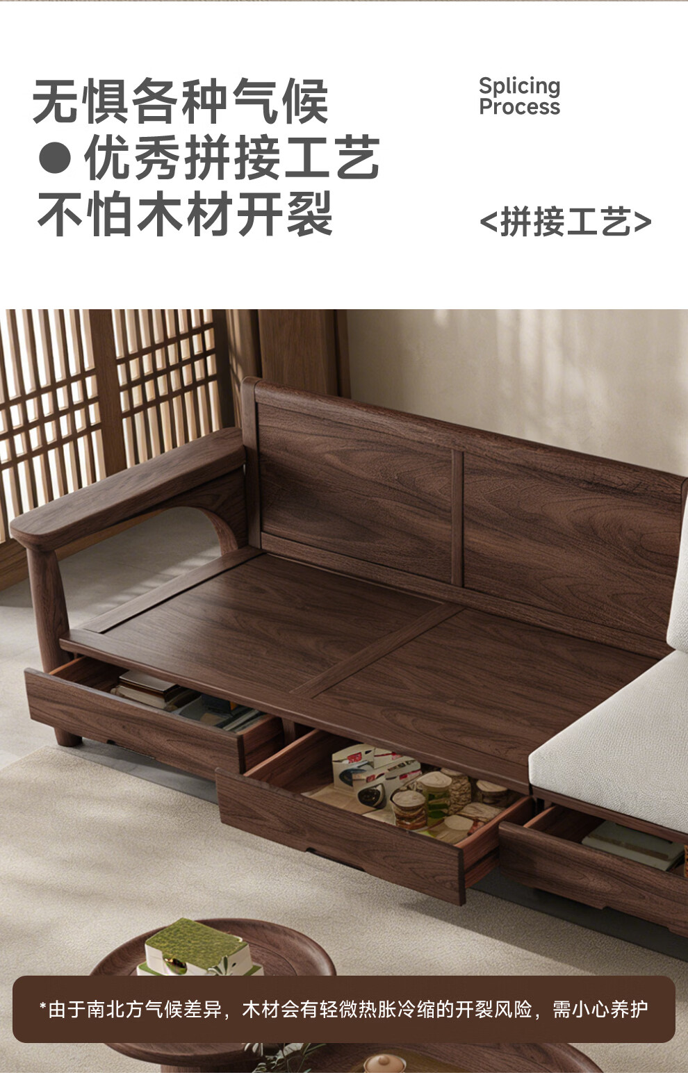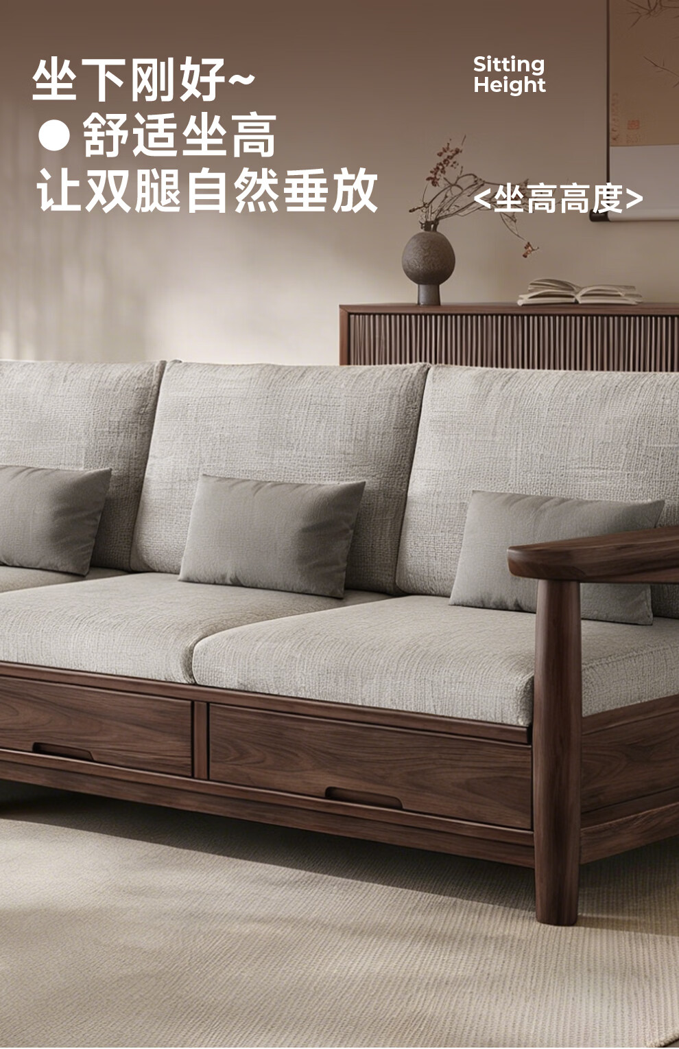Small wooden nest sofa Song's aesthetic all solid wood sofa living room 2025 new small apartment sofa combination black walnut straight three-seat combination