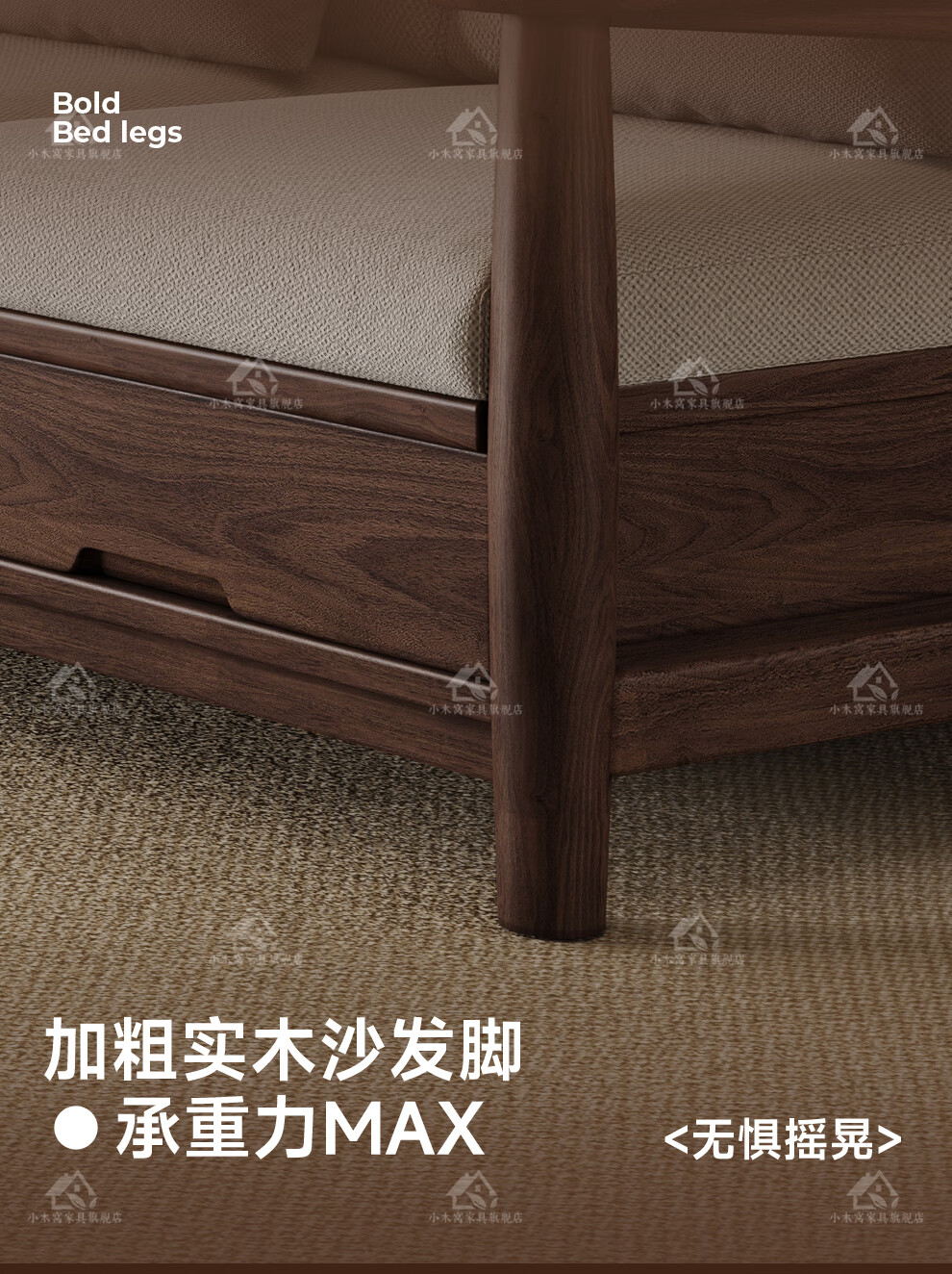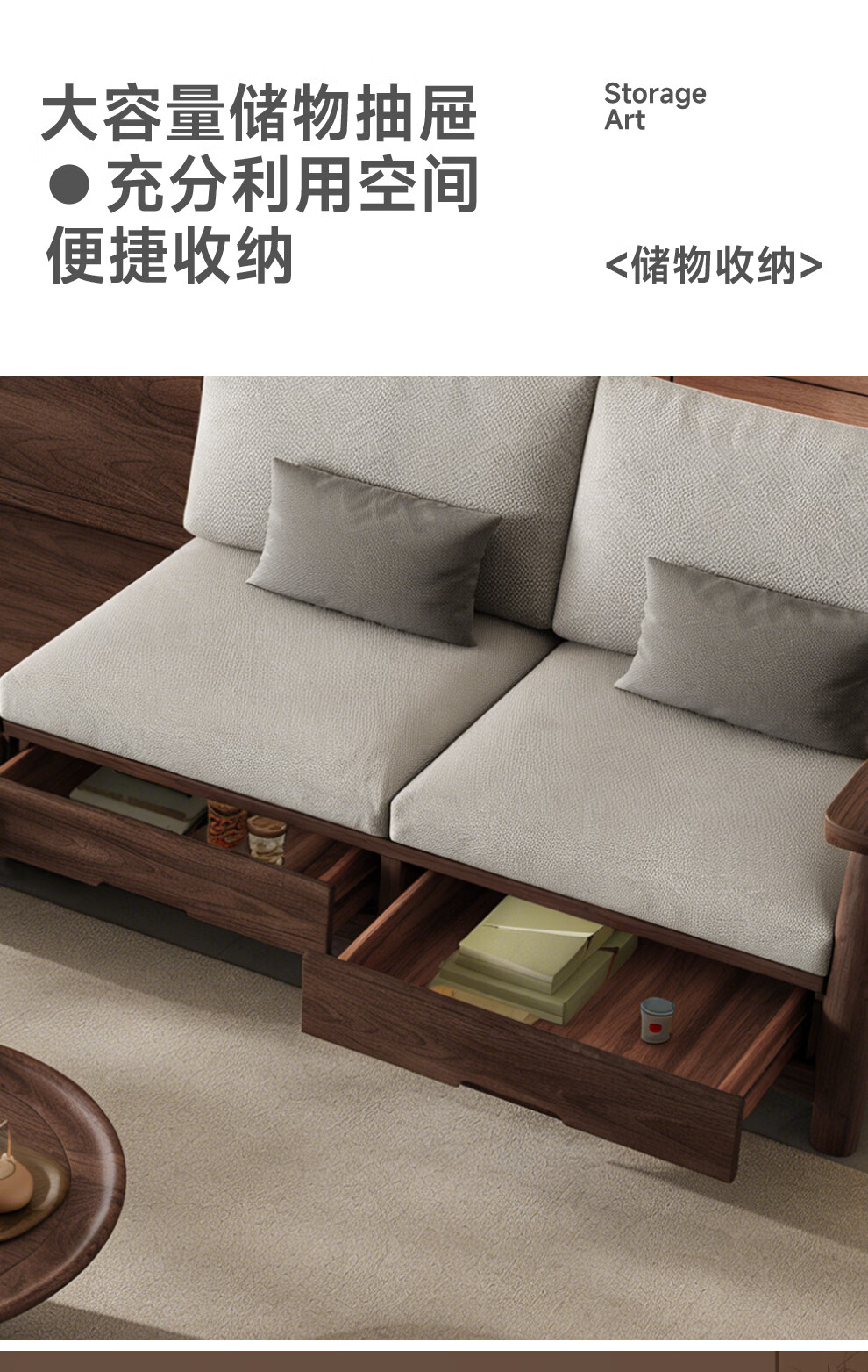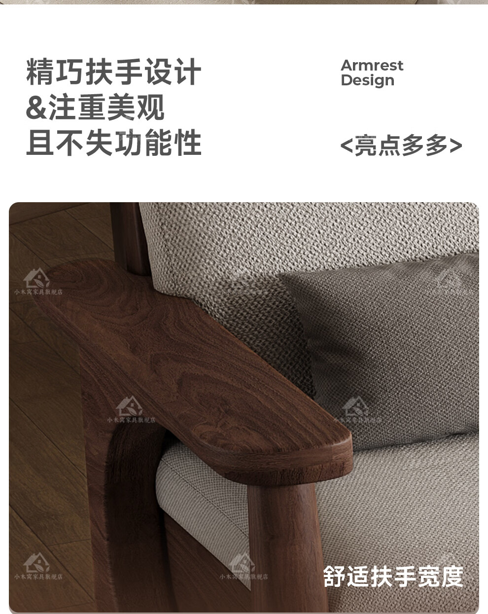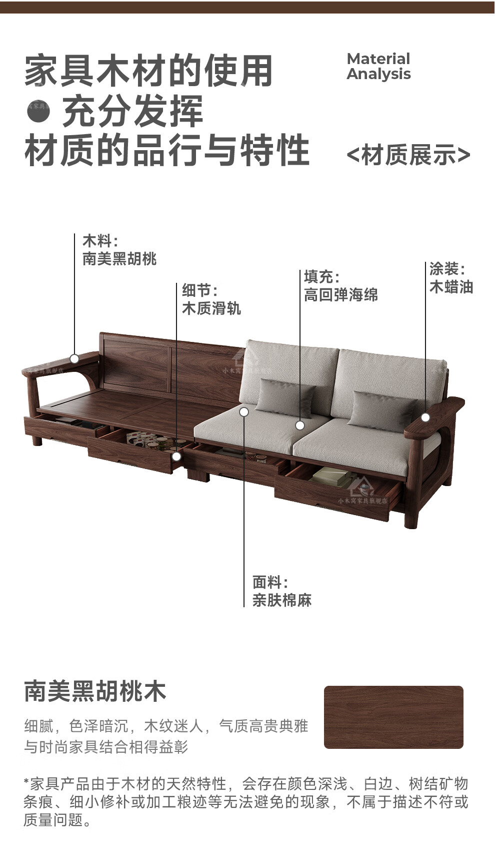 Small wooden nest sofa Song's aesthetic all solid wood sofa living room 2025 new small apartment sofa combination black walnut straight three-seat combination