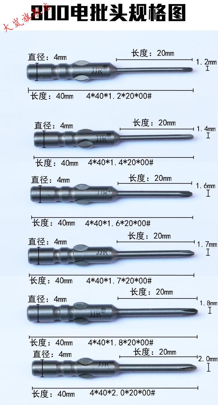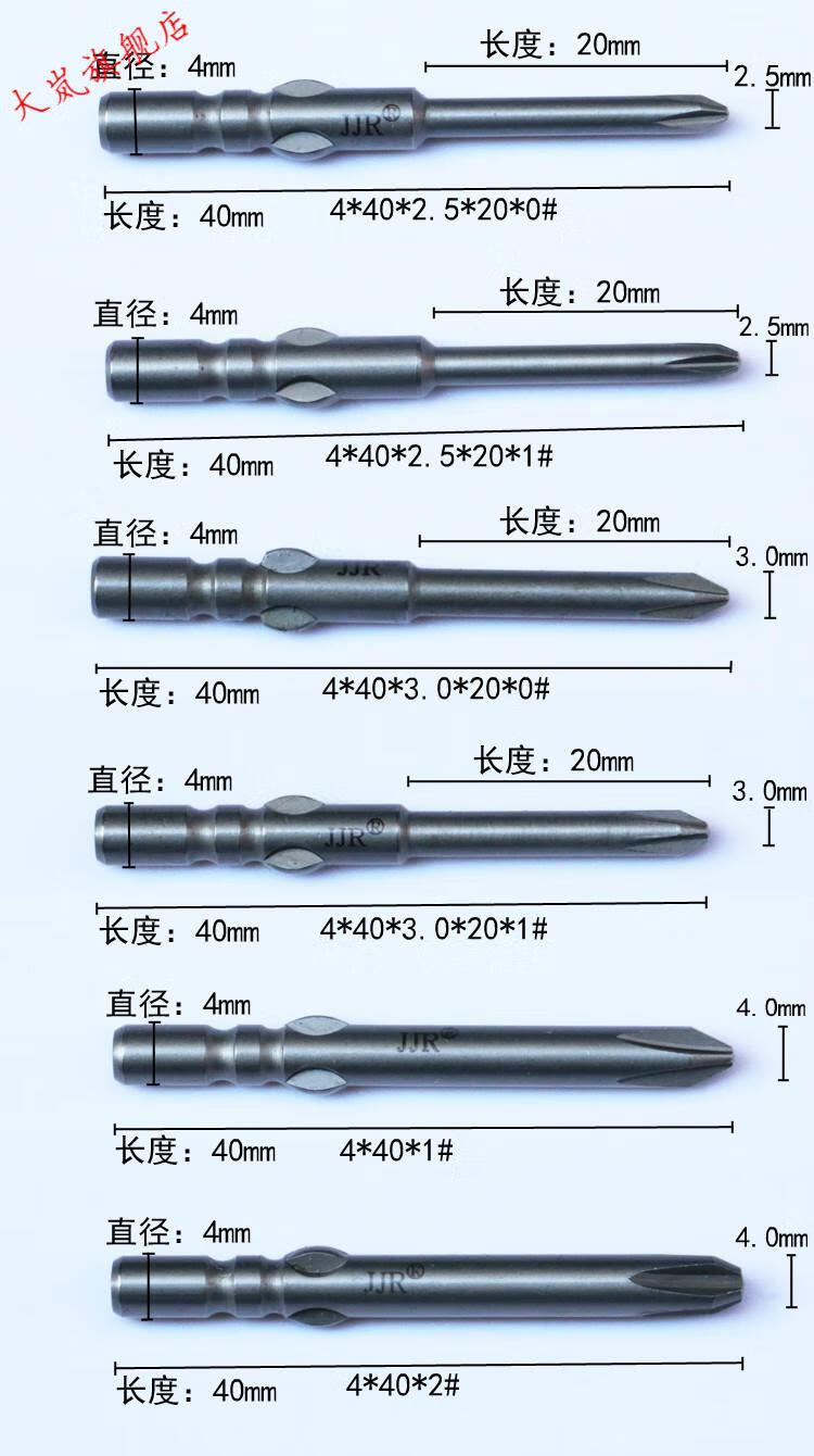 He Jiagong Jiyou electric screwdriver head 800 electric screwdriver head cross electric screwdriver tip electric screwdriver head 4 diameter 4*40*1.2*20*00#