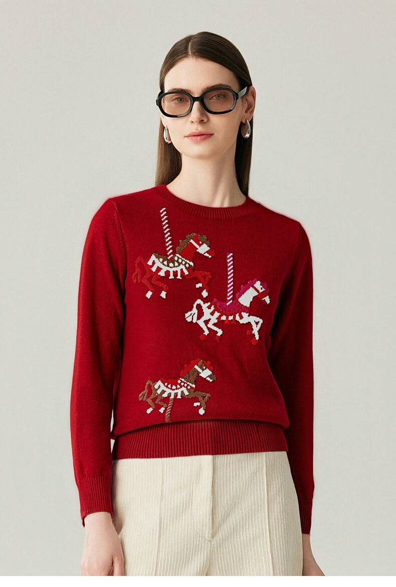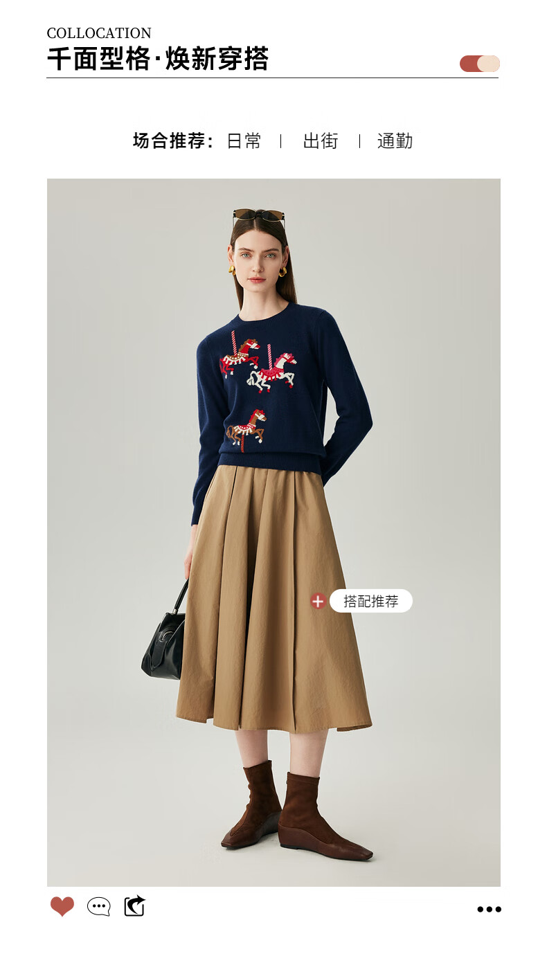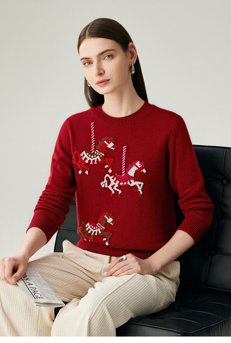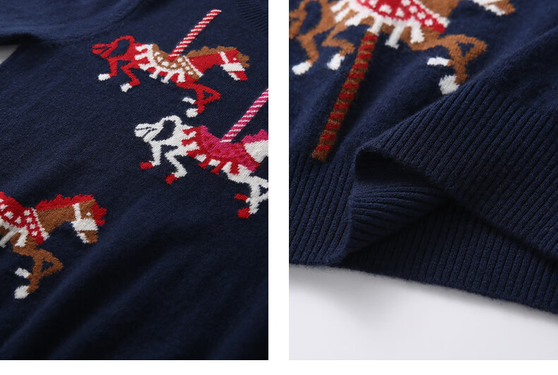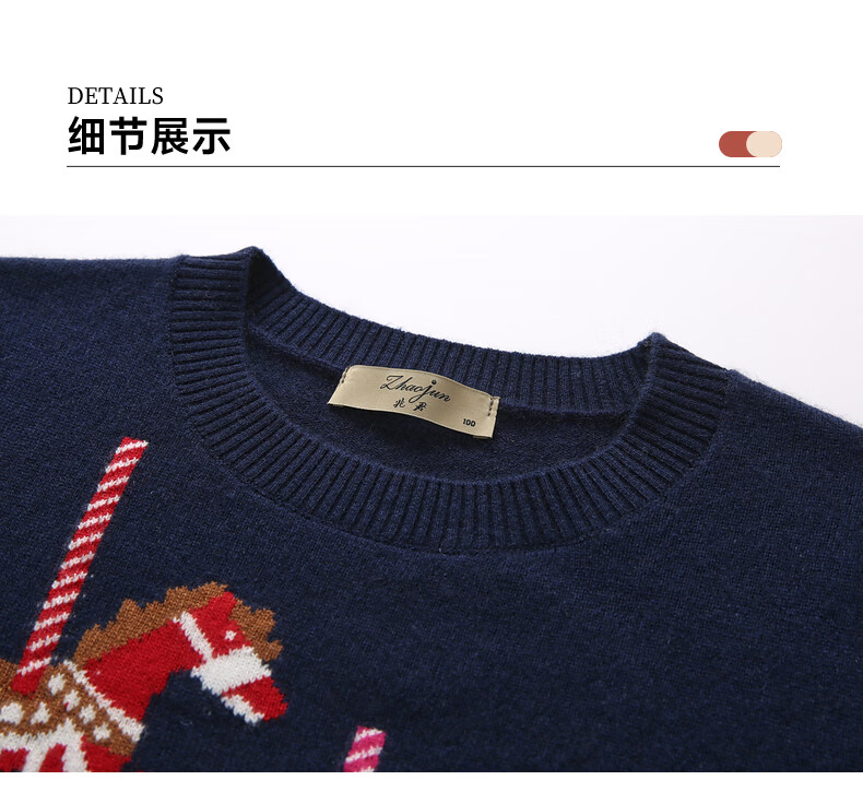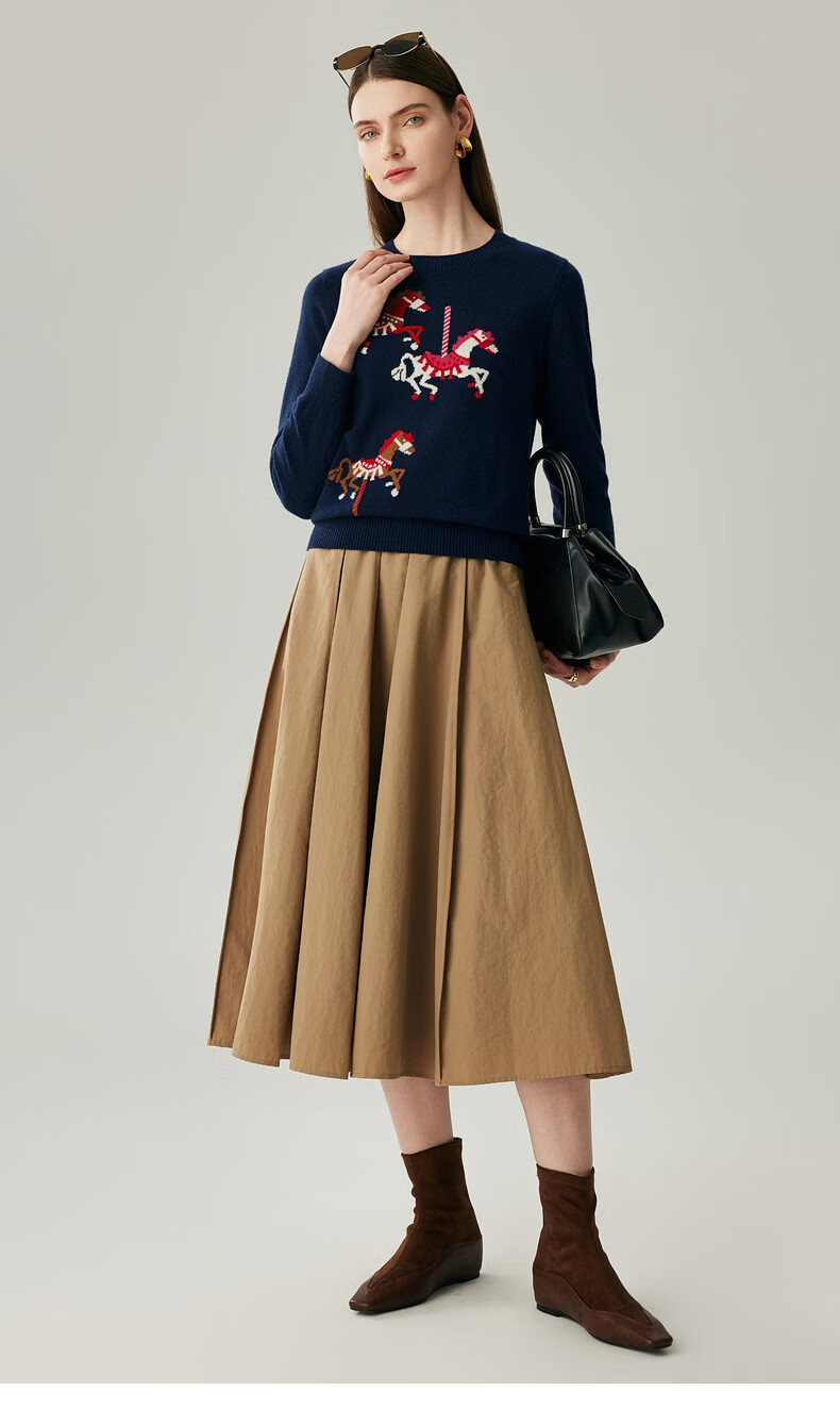 Zhaojun 2025 Autumn and Winter New Round Neck 100% Cashmere Sweater Women's Carousel Sweater Age Reduction Base Sweater Dark Blue XL