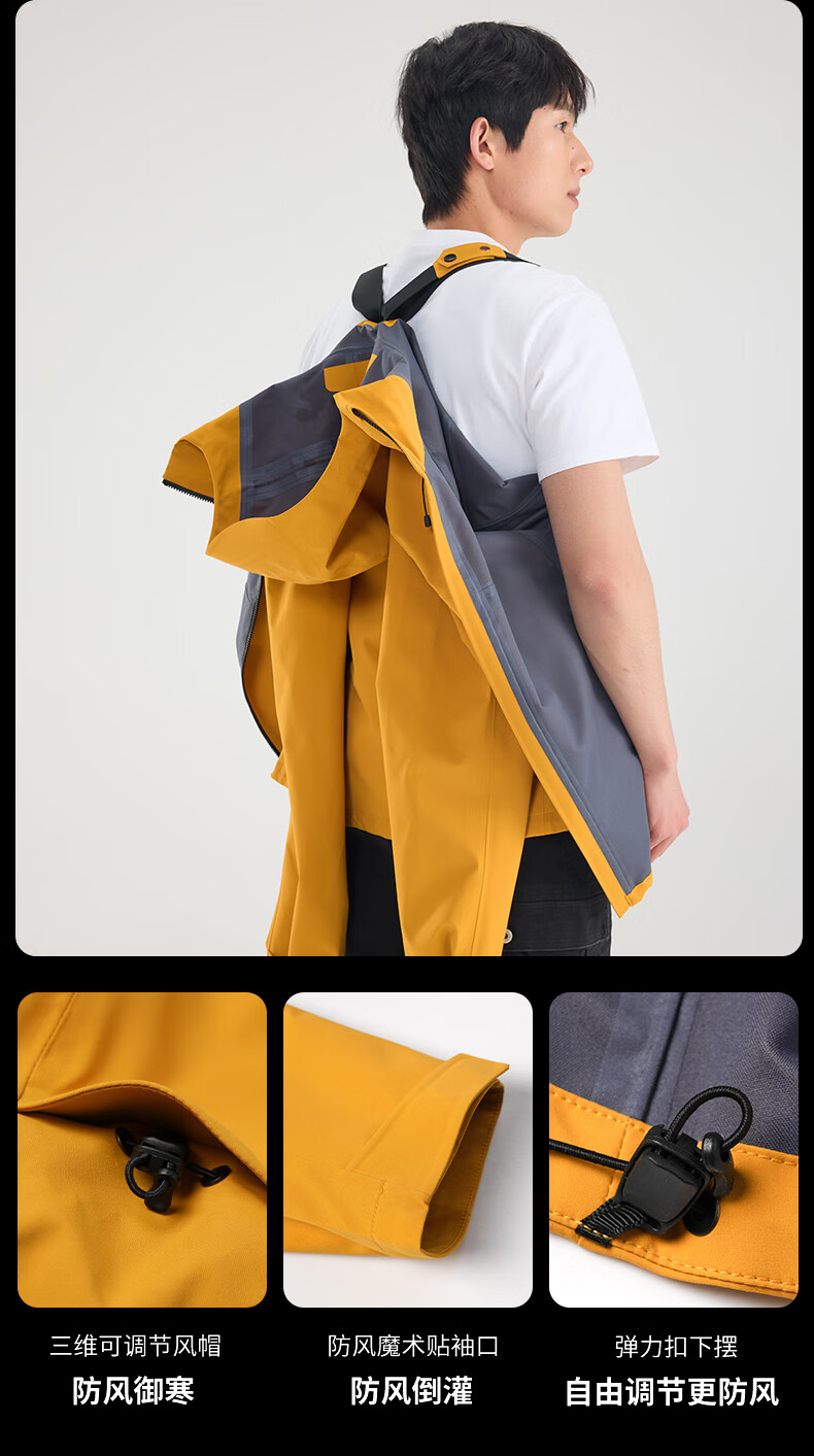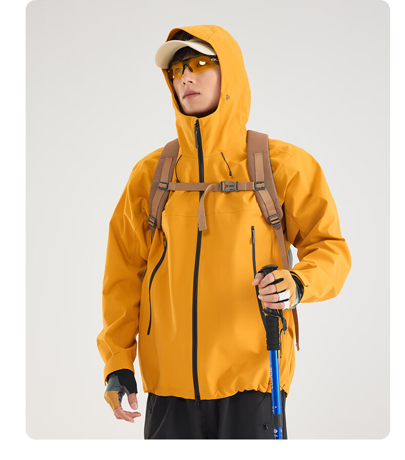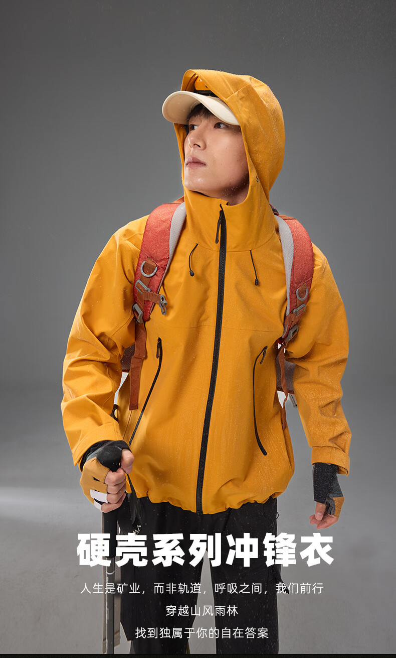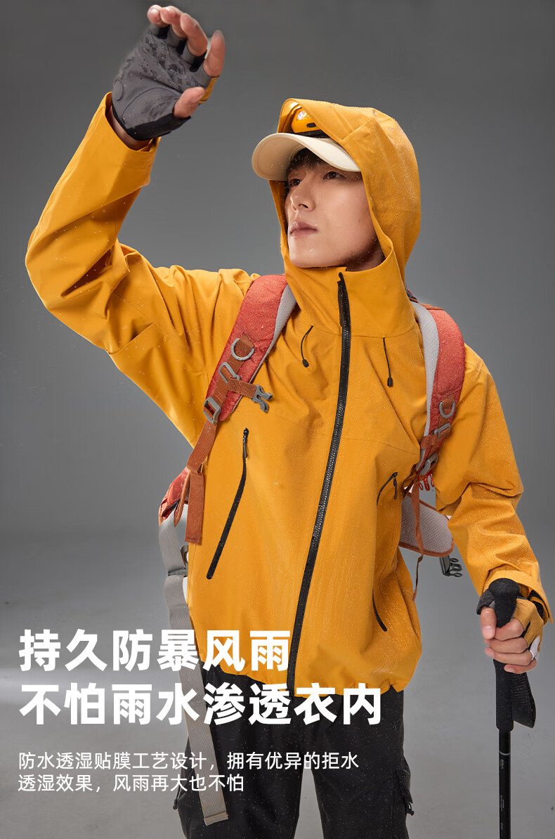 Archbird's same style outdoor mountain jacket for men's casual sports fully rubberized waterproof and windproof mountaineering jacket black gold green 3XL 180-200 catties