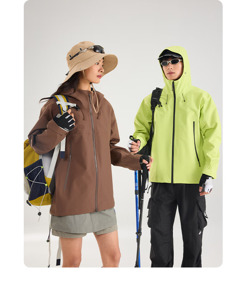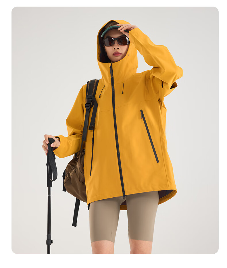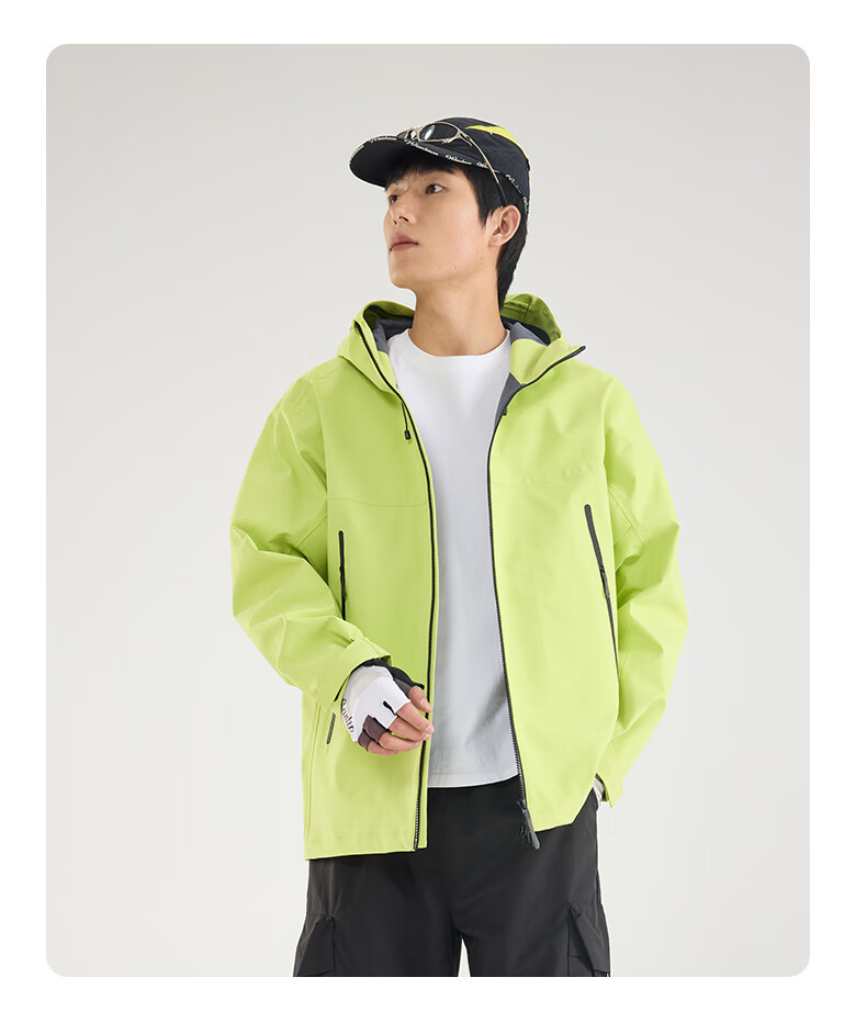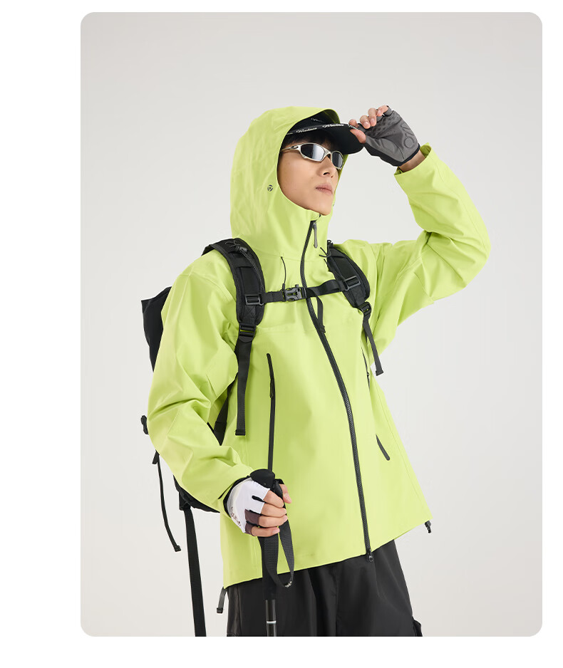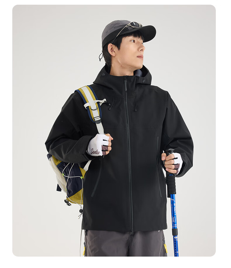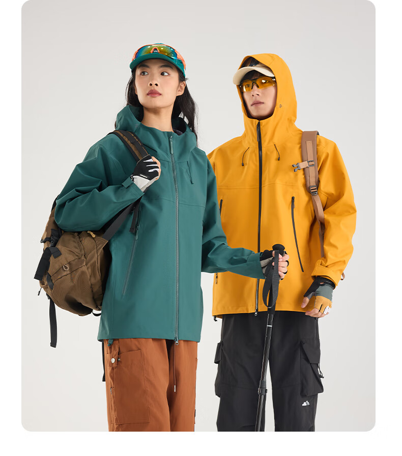 Archbird's same style outdoor mountain jacket for men's casual sports fully rubberized waterproof and windproof mountaineering jacket black gold green 3XL 180-200 catties