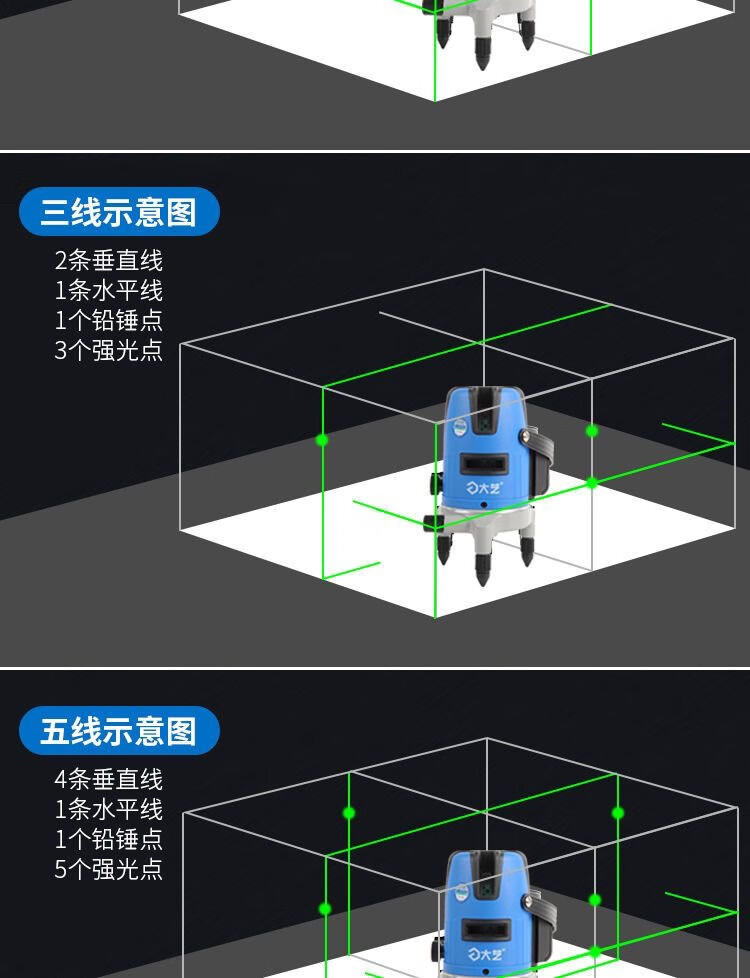 Huaiman Green Light Level 235 Line High Precision Distance Ruler Measurement Tool Bracket Dayi 2 Line (Green Strong Light) New + 1.2 Meter Bracket