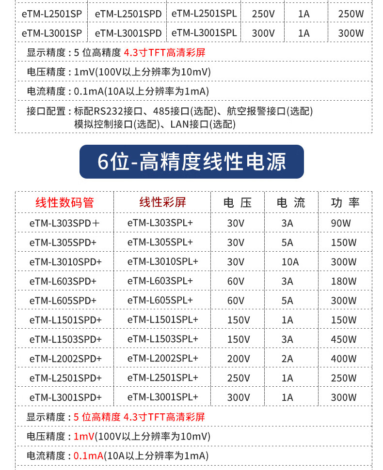 Huaiman high-precision adjustable DC power supply constant voltage constant current linear voltage stabilization programmable 56-bit display eTM-L1503SPL (150V3A-five-bit linear) including 13% special ticket