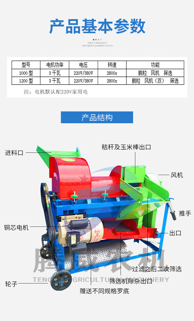 Pupan small multi-functional threshing corn, soybean, sorghum, rapeseed, bract, rice, millet, fully automatic peeling and tearing, single ventilator, the whole machine does not include a motor_ enhanced version