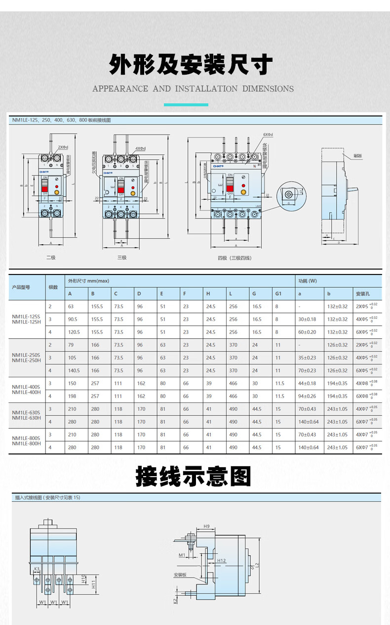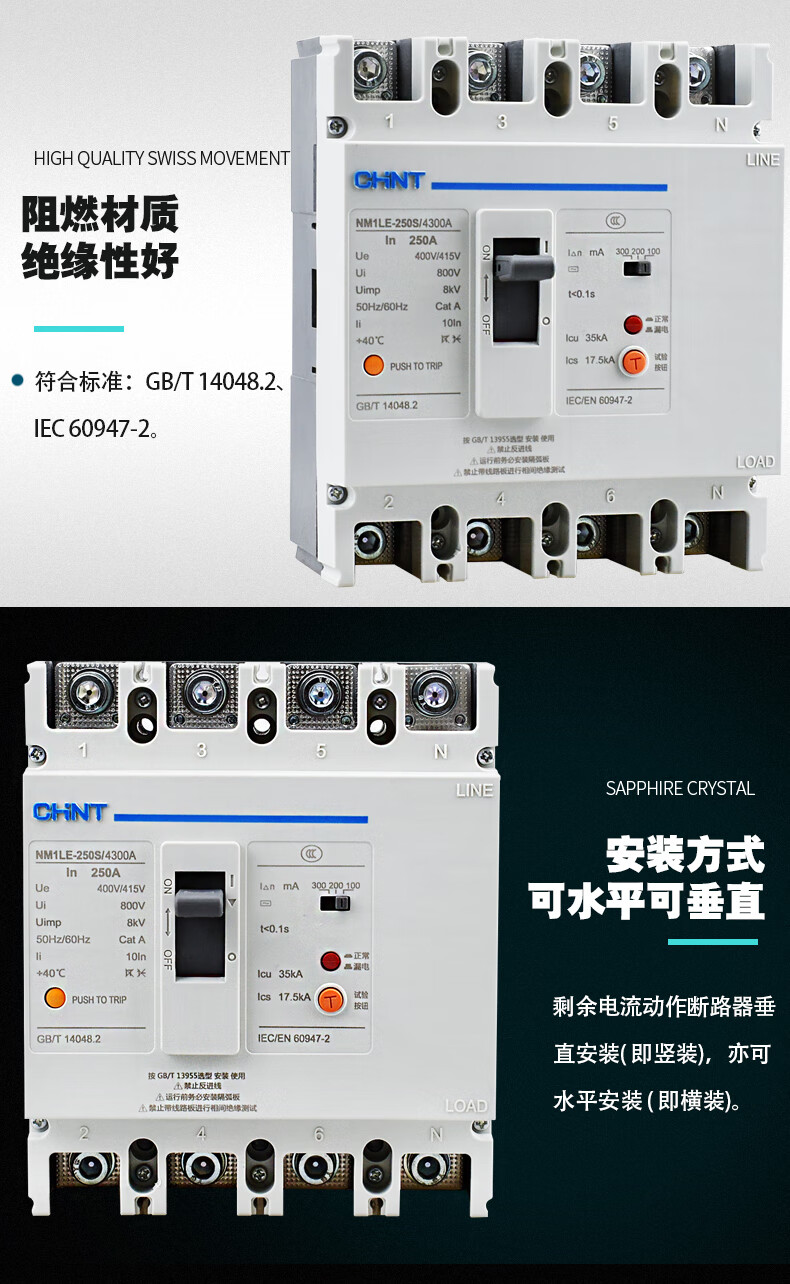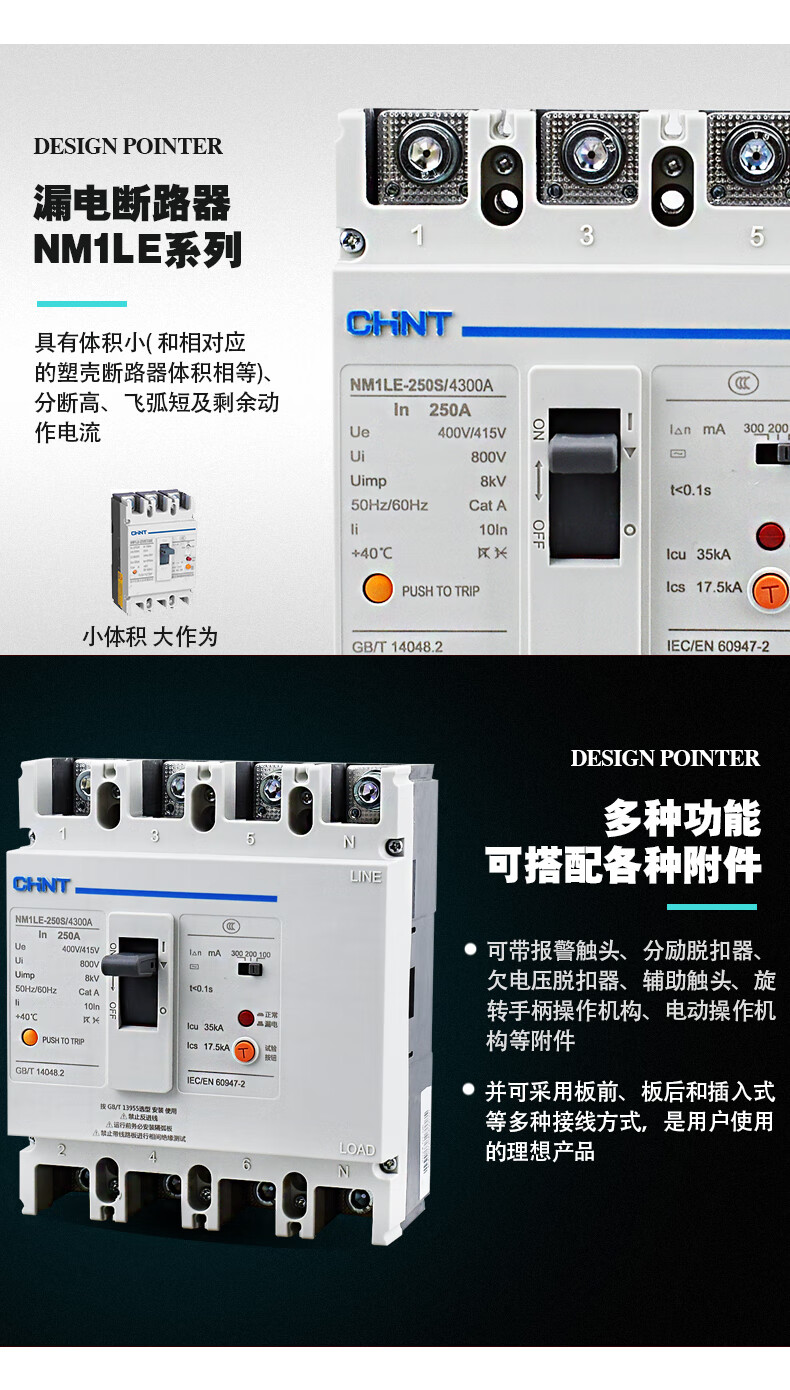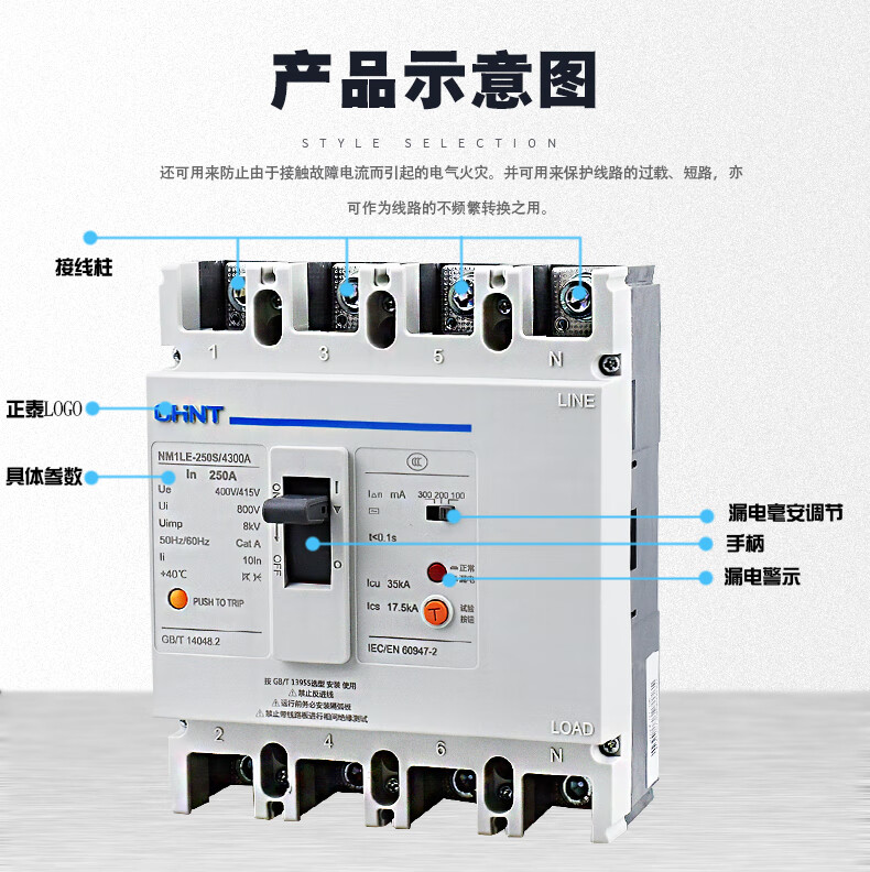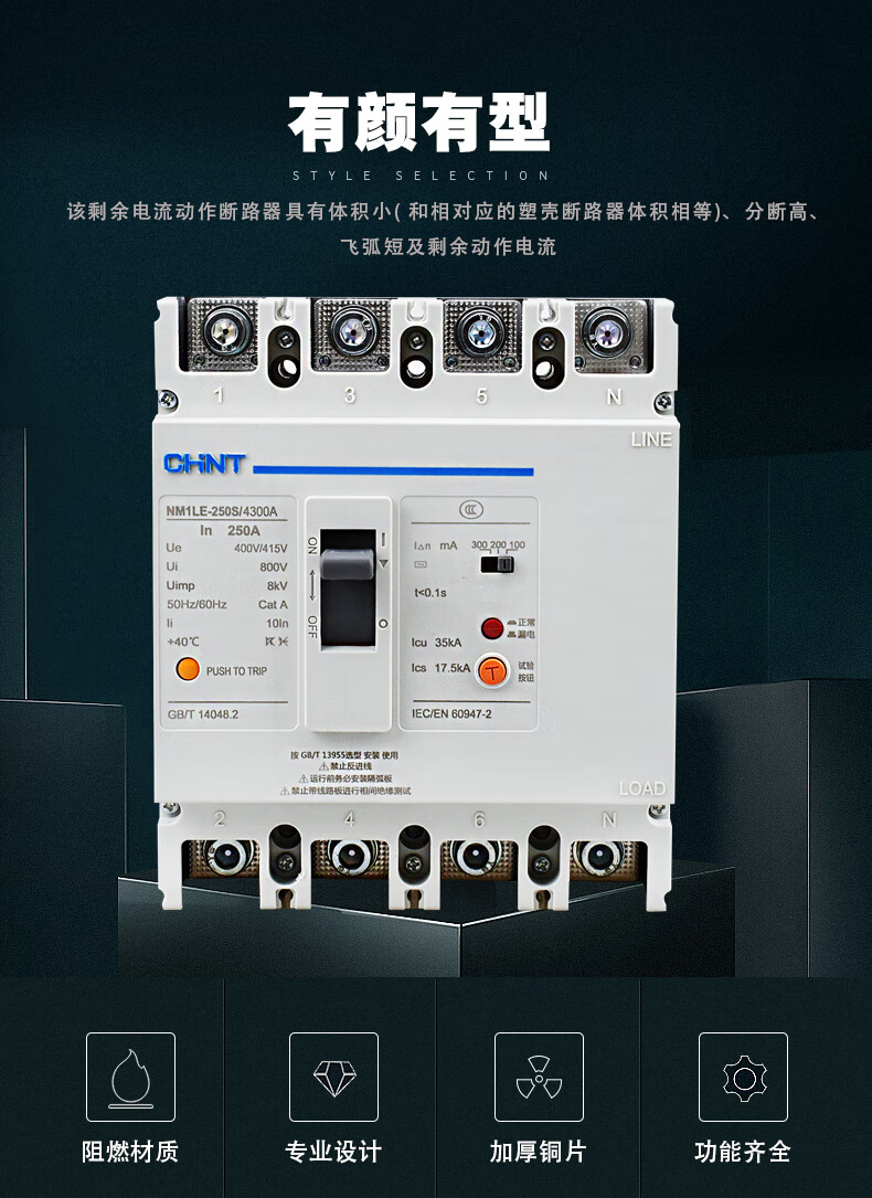 NM1LE leakage circuit breaker three-phase four-wire plastic case switch 6310025630800 125A 4p