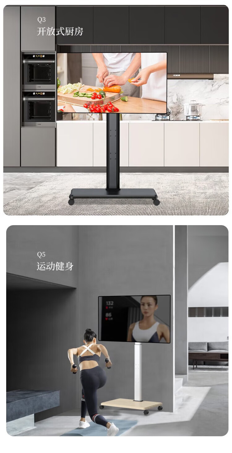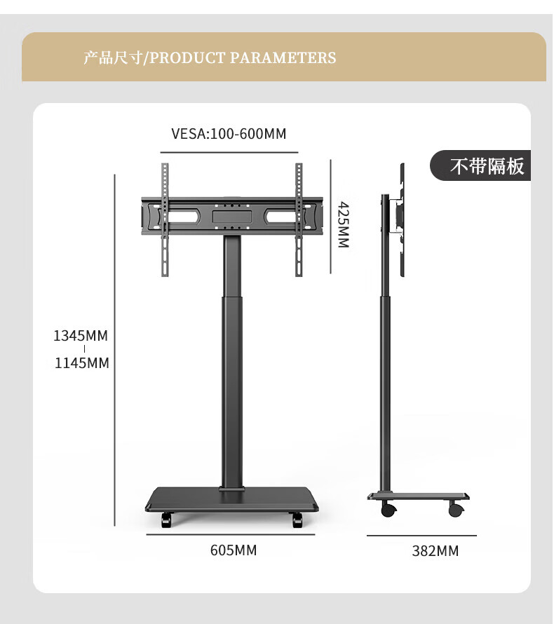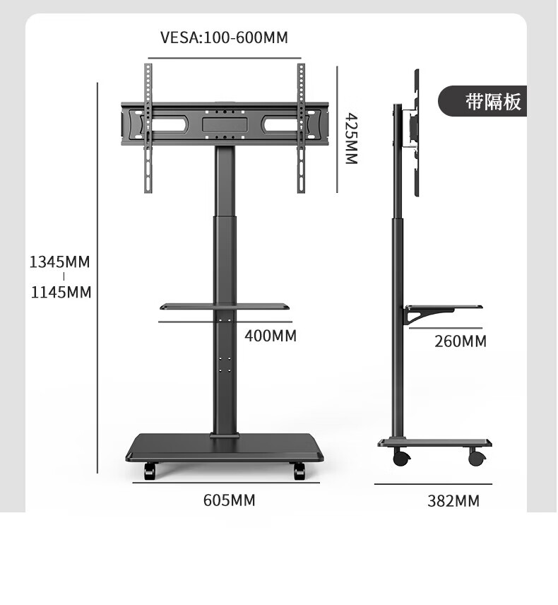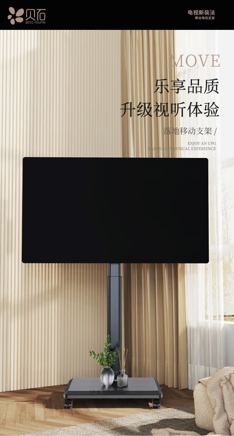 TV Mount Monitor Bracket Floor Standing 32/43/55/65/75 Inch TV Mount TV Mobile Cart Universal TV Cart 32-75 Inches Simple Black/Including Lower Tray