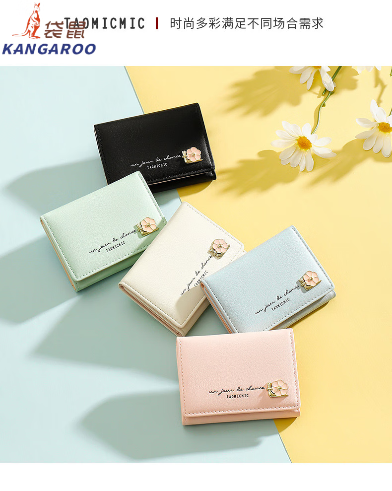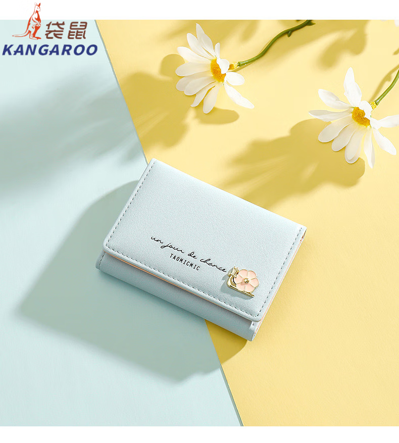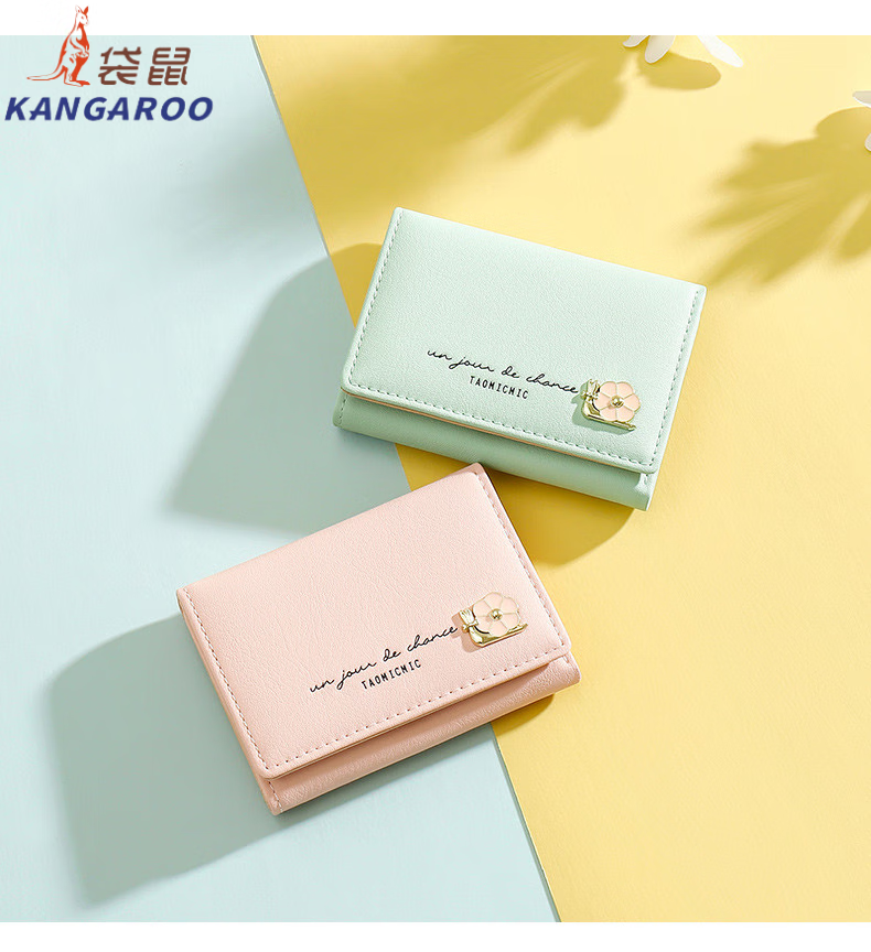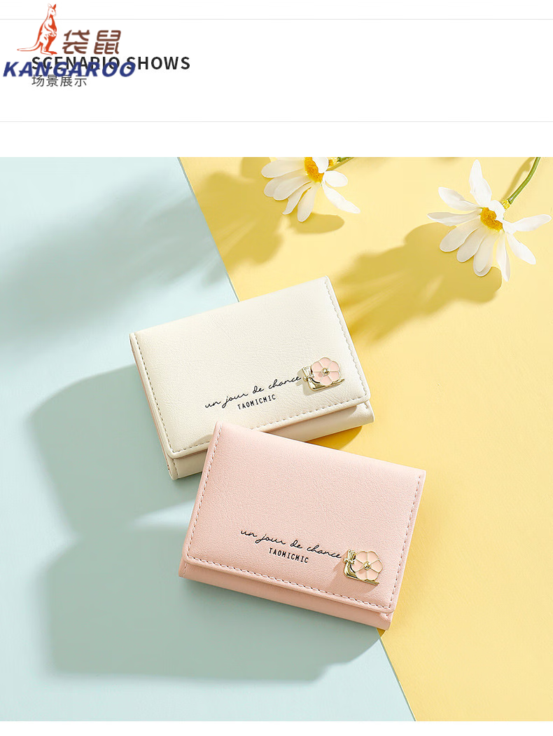Kangaroo (KANGAROO) French imported quality student short wallet Japanese and Korean fashion compact folding women's wallet mini large capacity small rice white