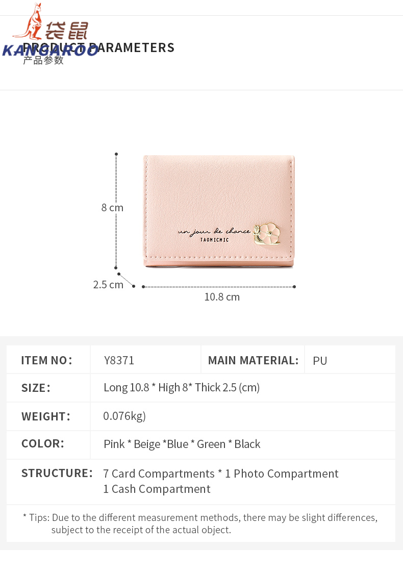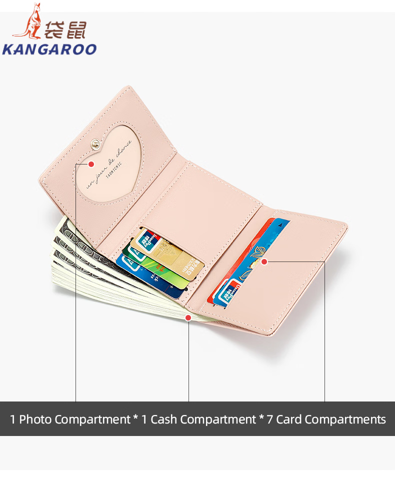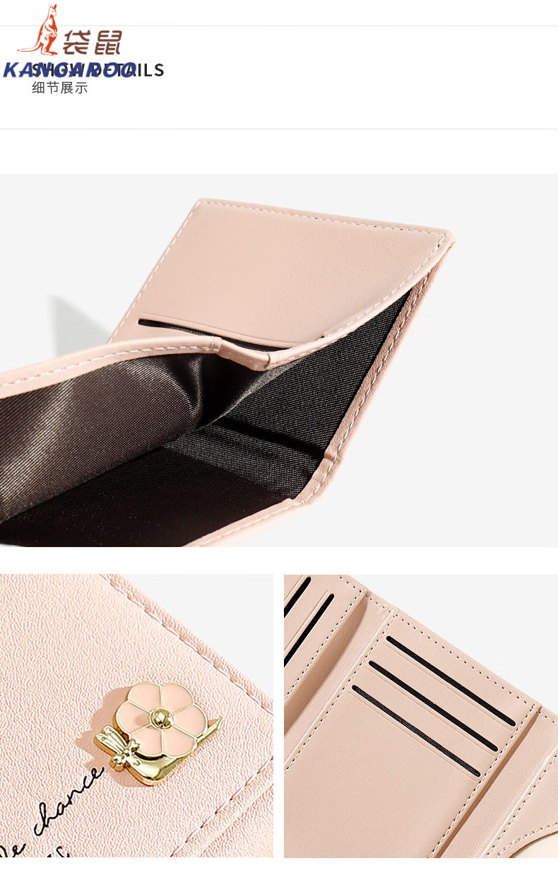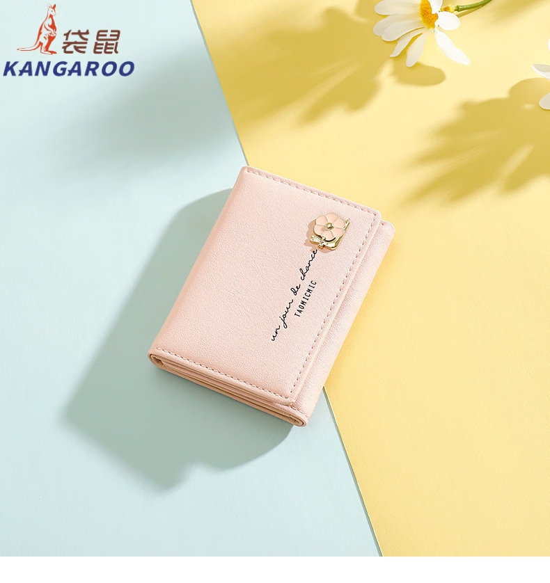 Kangaroo (KANGAROO) French imported quality student short wallet Japanese and Korean fashion compact folding women's wallet mini large capacity small rice white