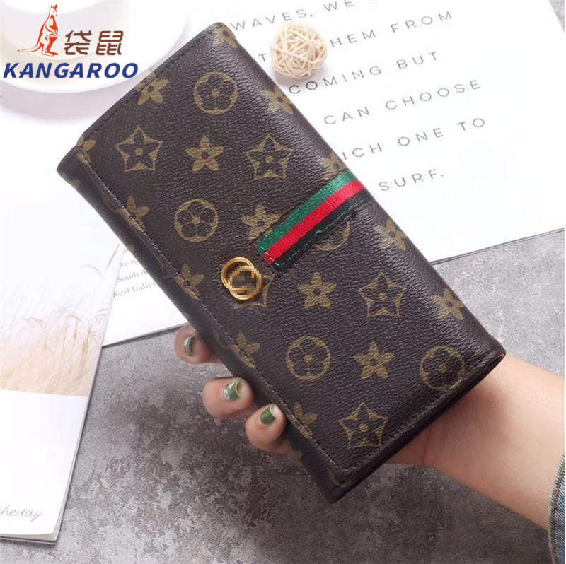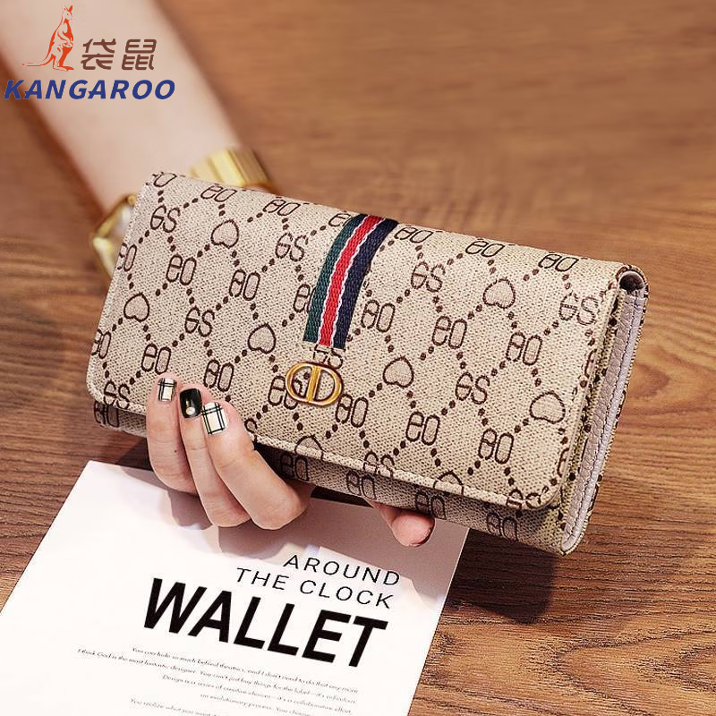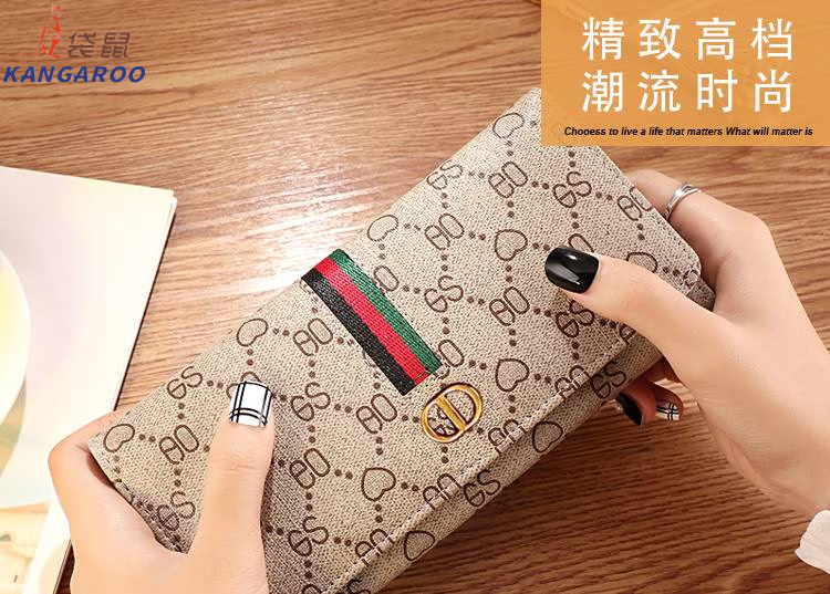 Kangaroo (KANGAROO) French imported quality long wallet and mobile phone bag dual-purpose women's card holder two-in-one wallet women's wallet clip peach heart (10 card slots) can hold mobile phone long