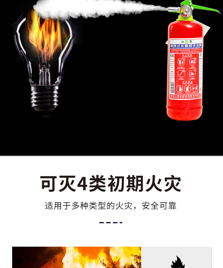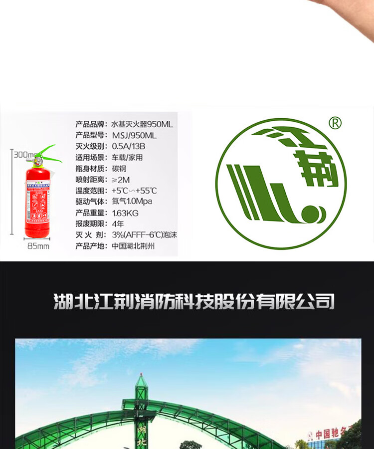 Jiangjing MSJ/950ML portable water-based fire extinguisher 950ml efficient fire extinguishing household green environmental protection pollution-free 950ml water-based red water-based household fire extinguisher 950ML