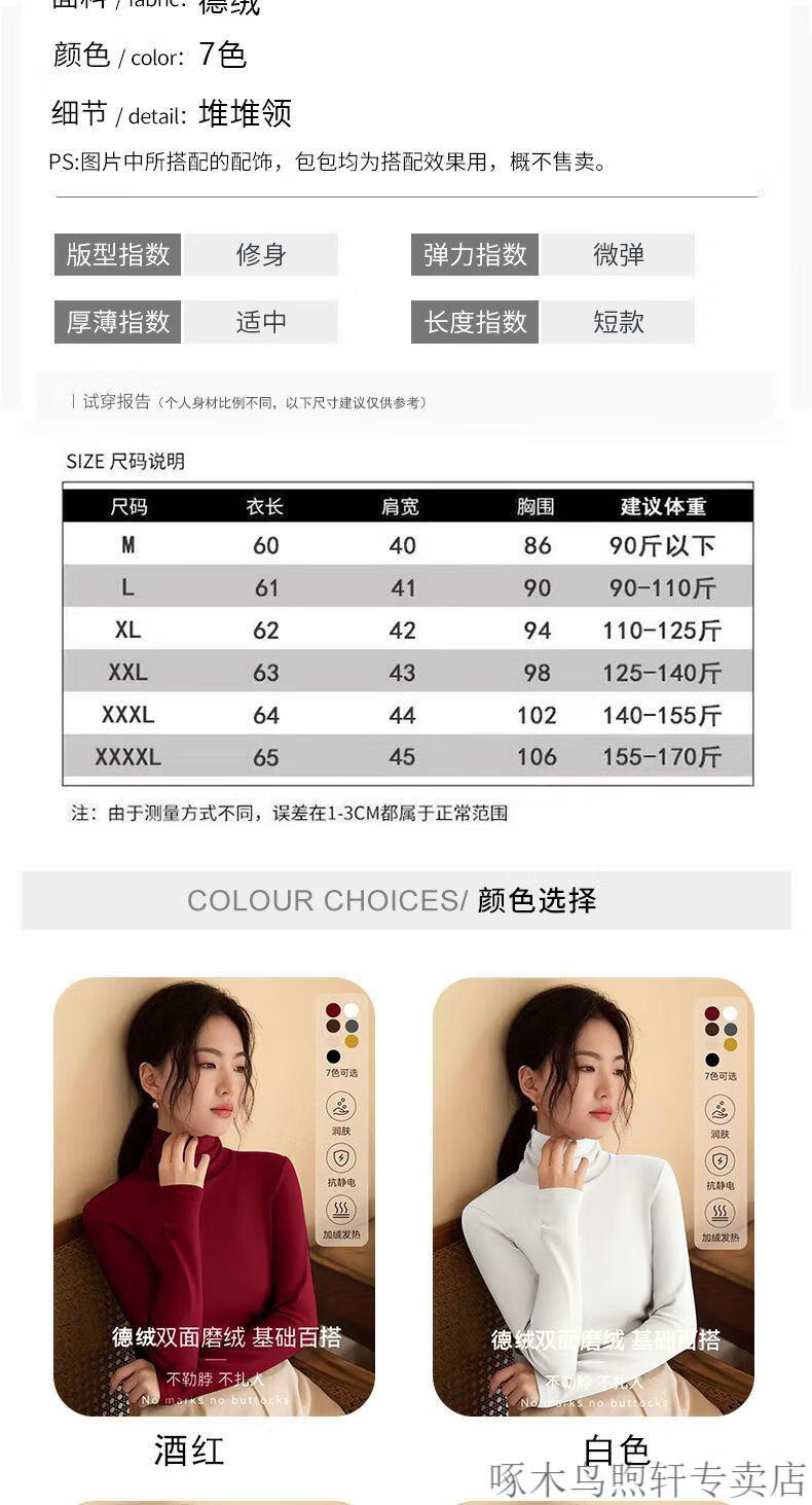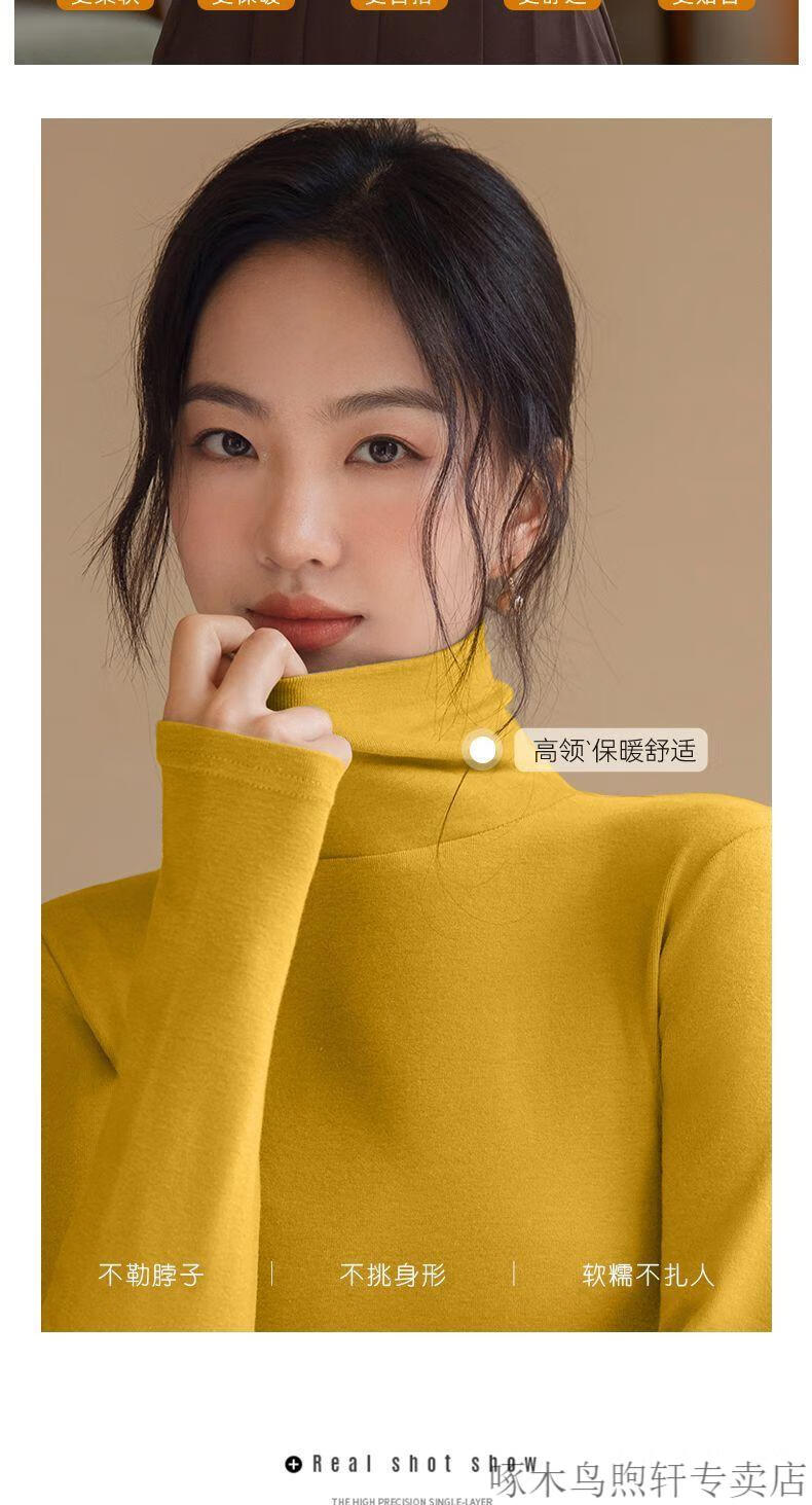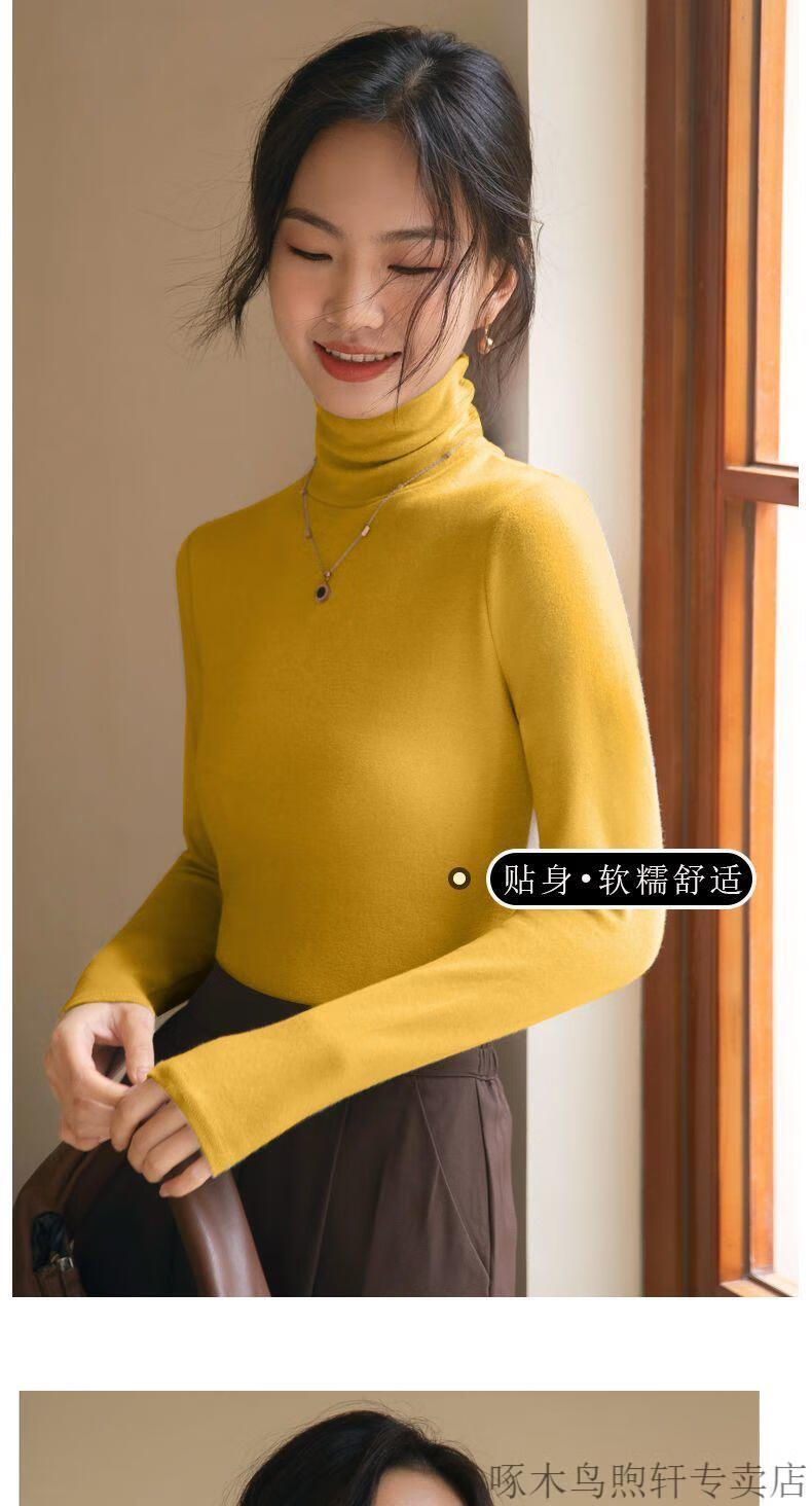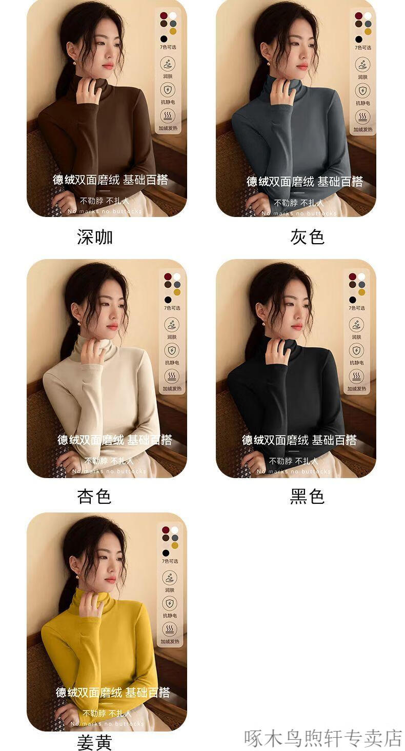 Woodpecker double-sided German velvet turtleneck warm thickened bottoming shirt for women autumn and winter new style versatile pile collar long-sleeved top black high quality 4XL recommended 155-170 pounds