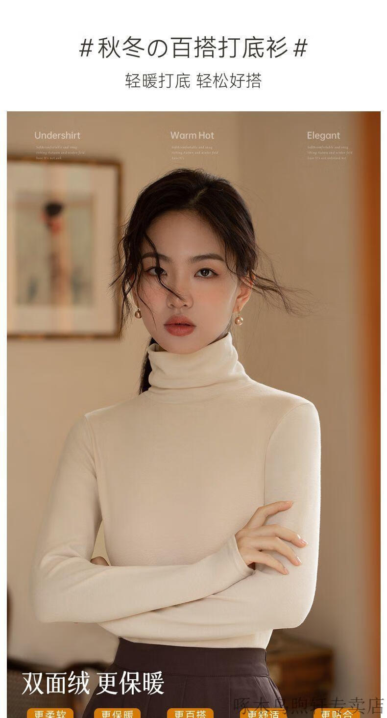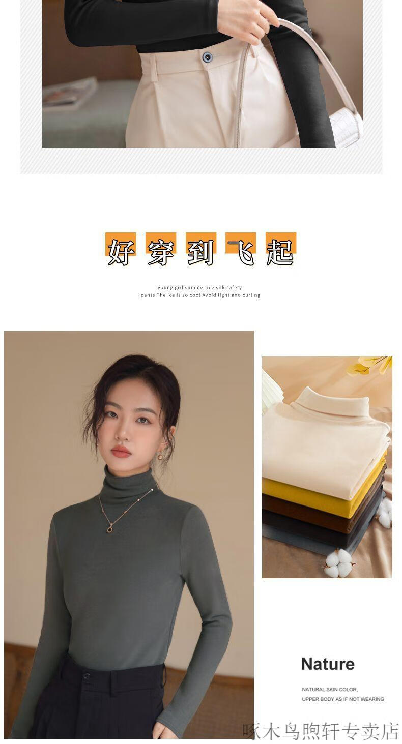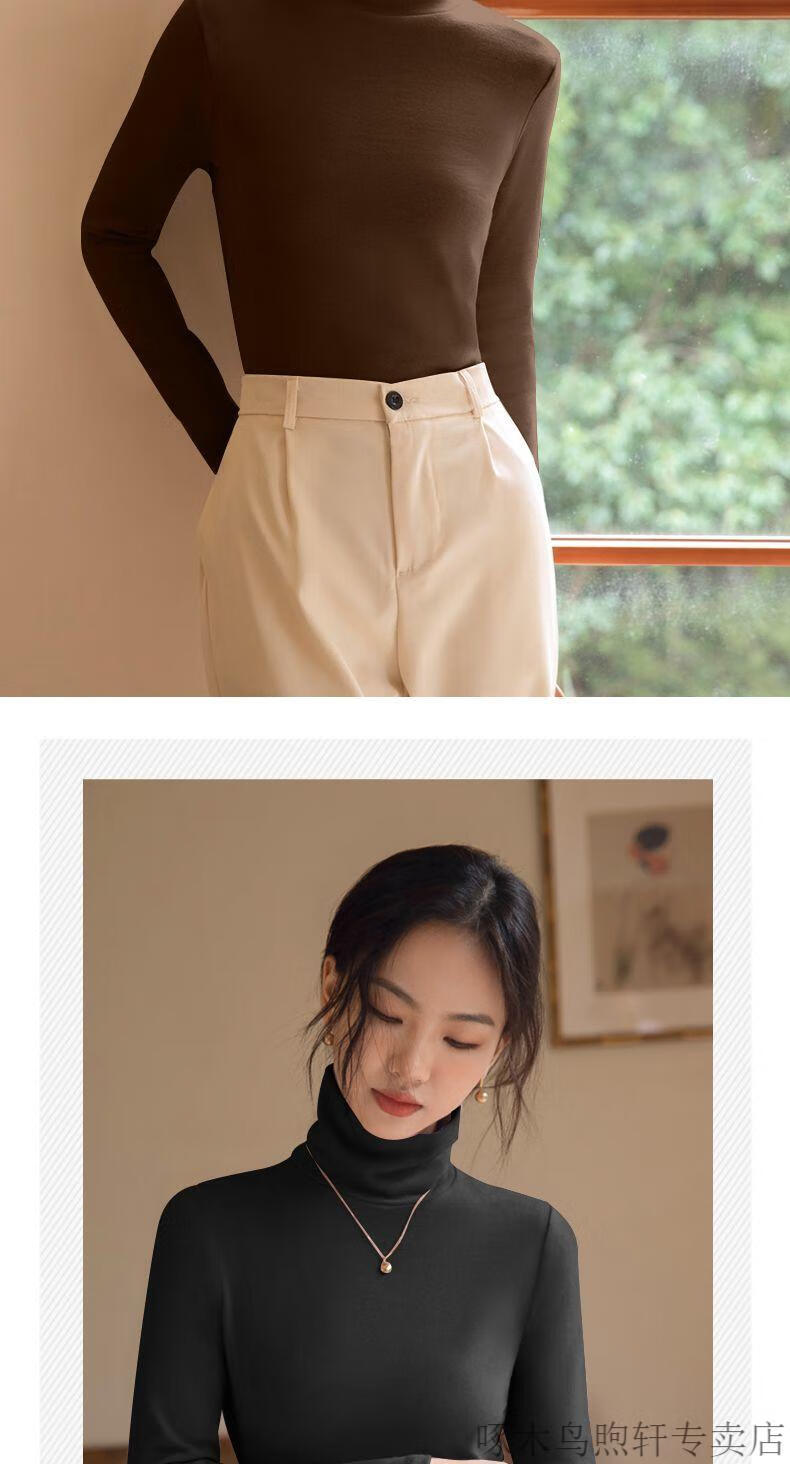 Woodpecker double-sided German velvet turtleneck warm thickened bottoming shirt for women autumn and winter new style versatile pile collar long-sleeved top black high quality 4XL recommended 155-170 pounds