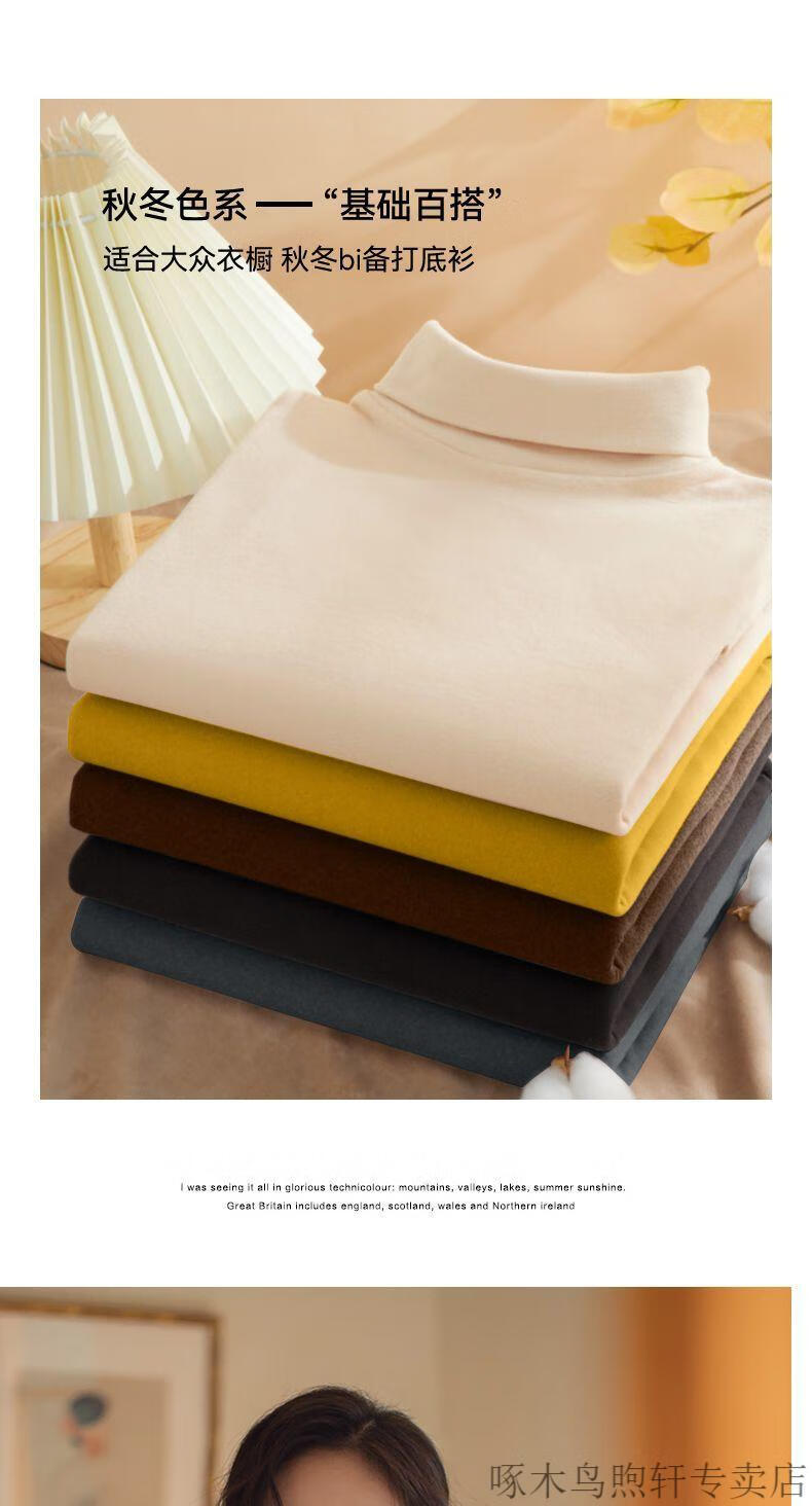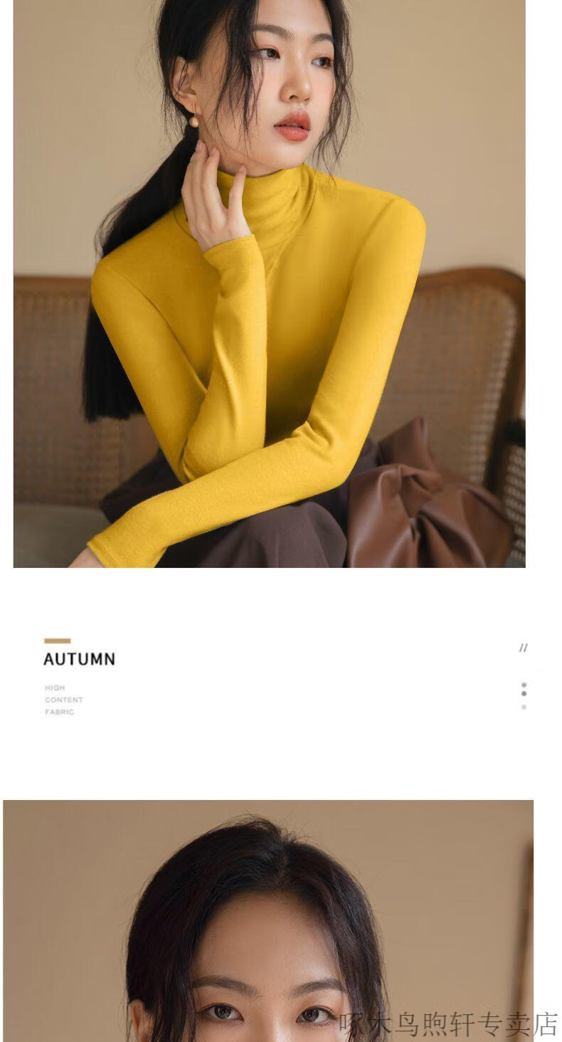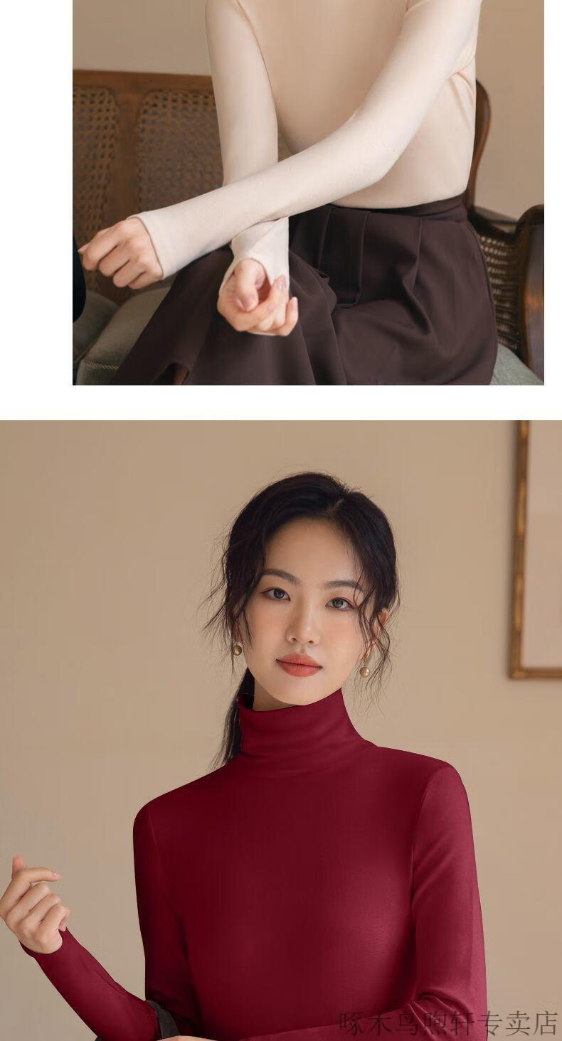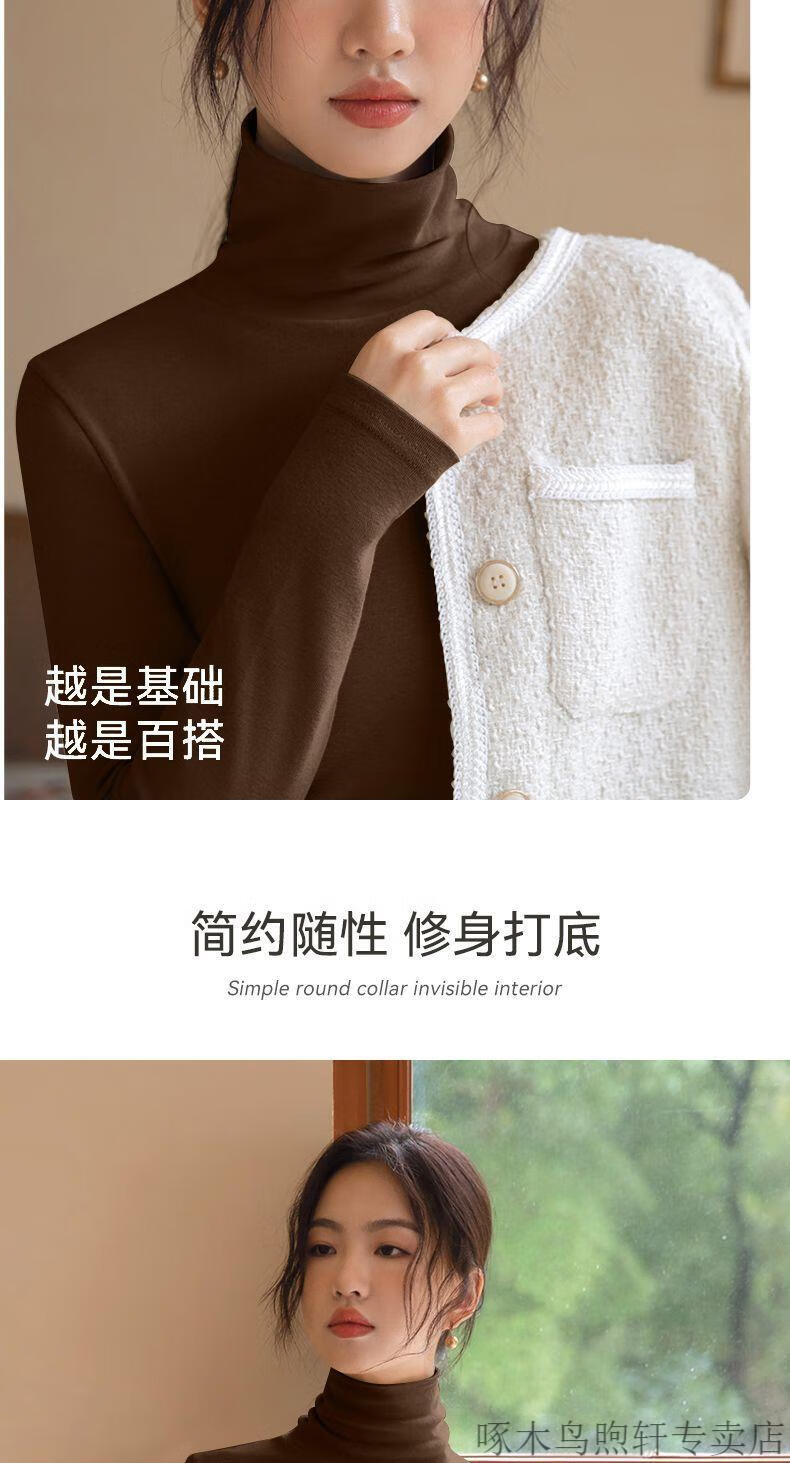 Woodpecker double-sided German velvet turtleneck warm thickened bottoming shirt for women autumn and winter new style versatile pile collar long-sleeved top black high quality 4XL recommended 155-170 pounds