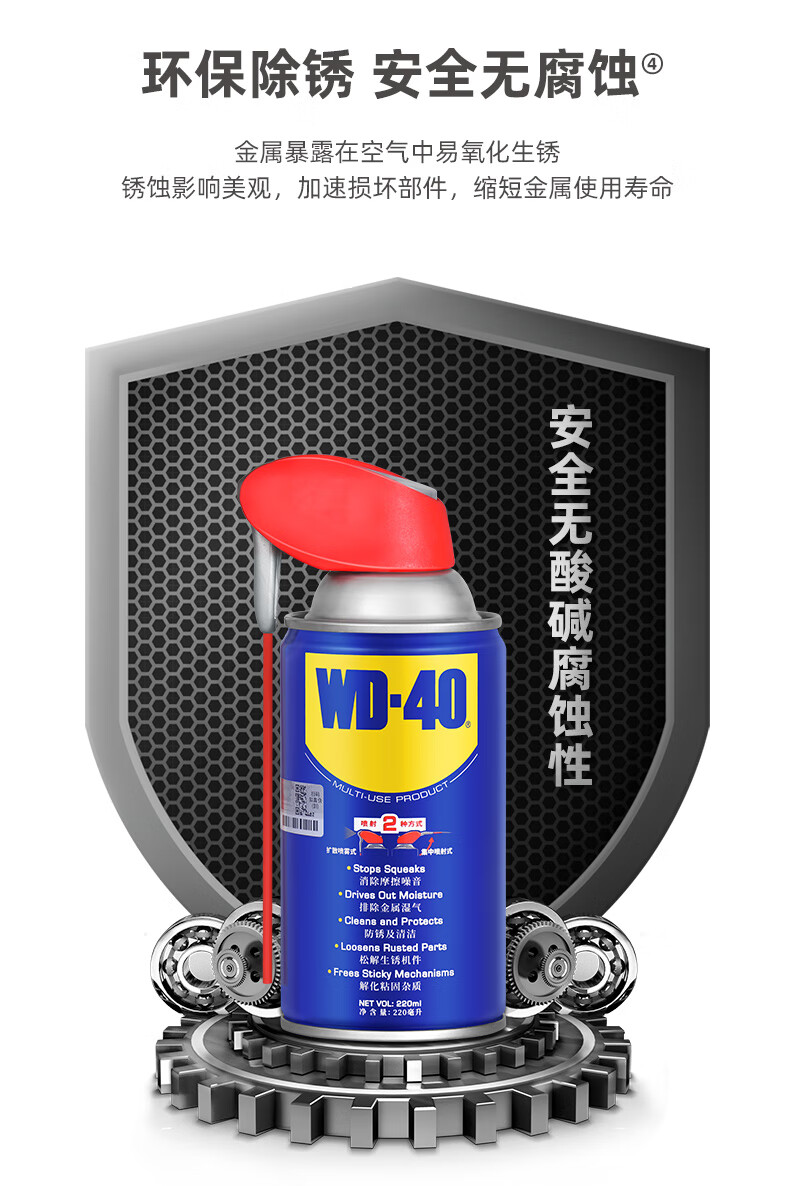 WD-40 metal rust removal lubricant smart can anti-rust agent spray powerful screw loosening agent WD-40 multi-purpose product smart spray can 220ml