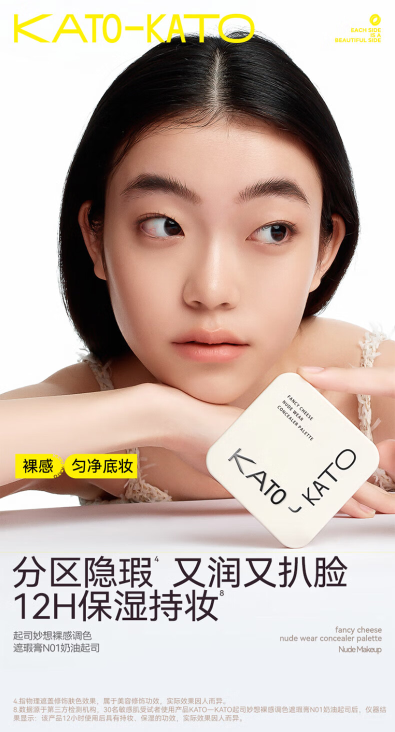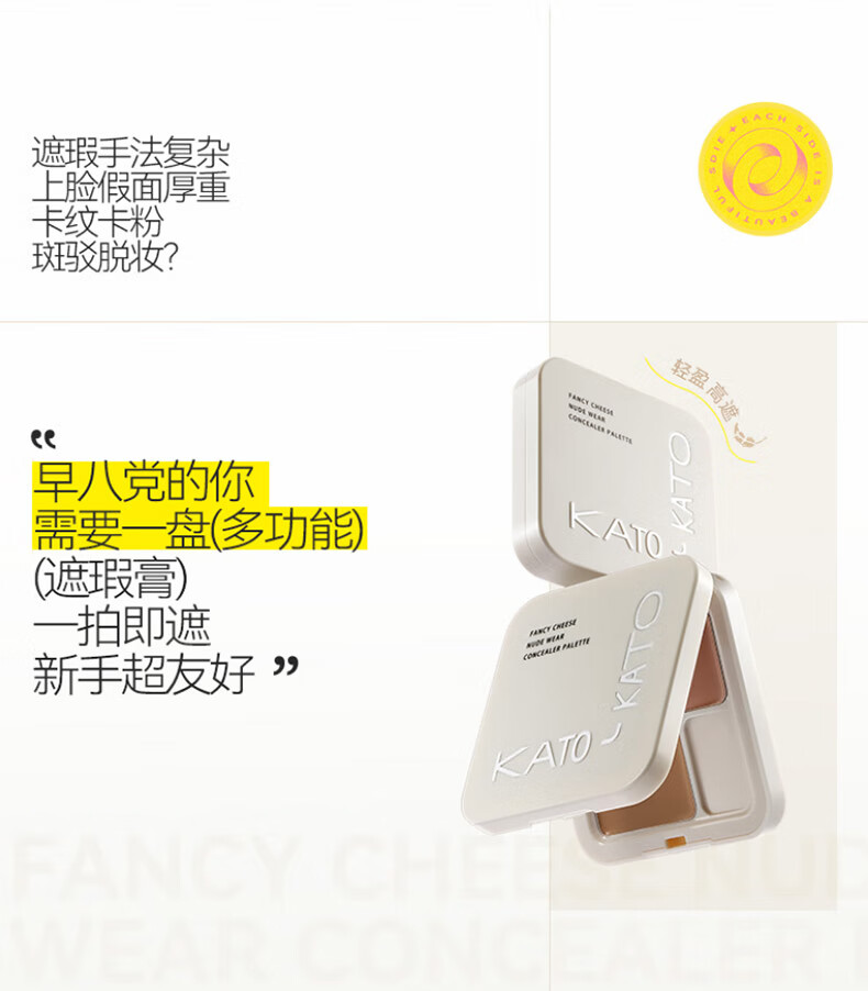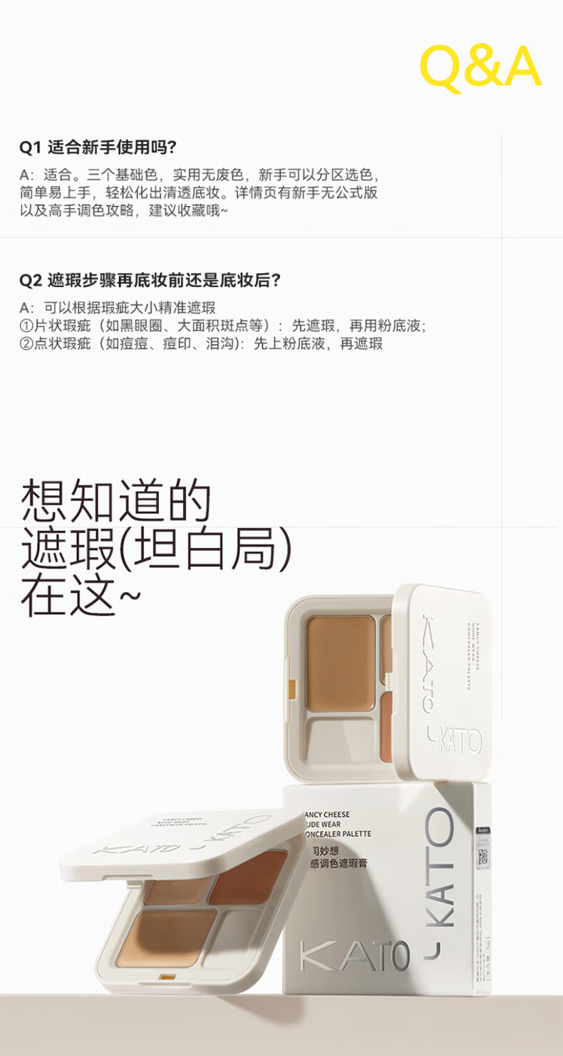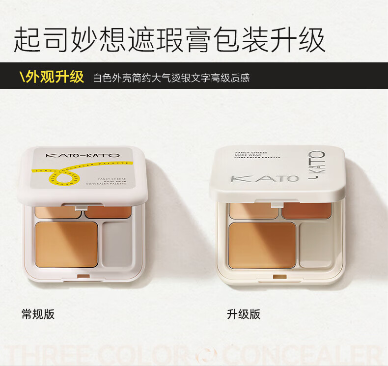 KATO-KATO three-color concealer to cover spots, dark circles, tear troughs, acne marks, liquid brightening, powerful contouring palette, triple cheese concealer 3.9g
