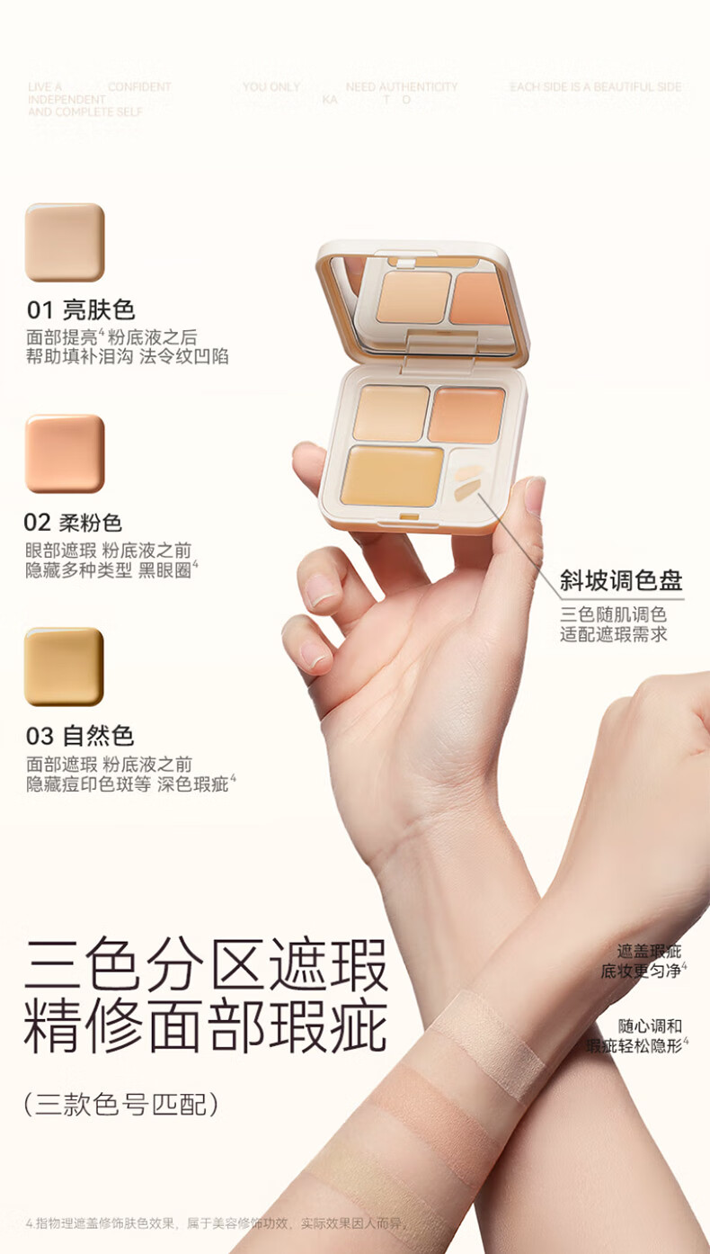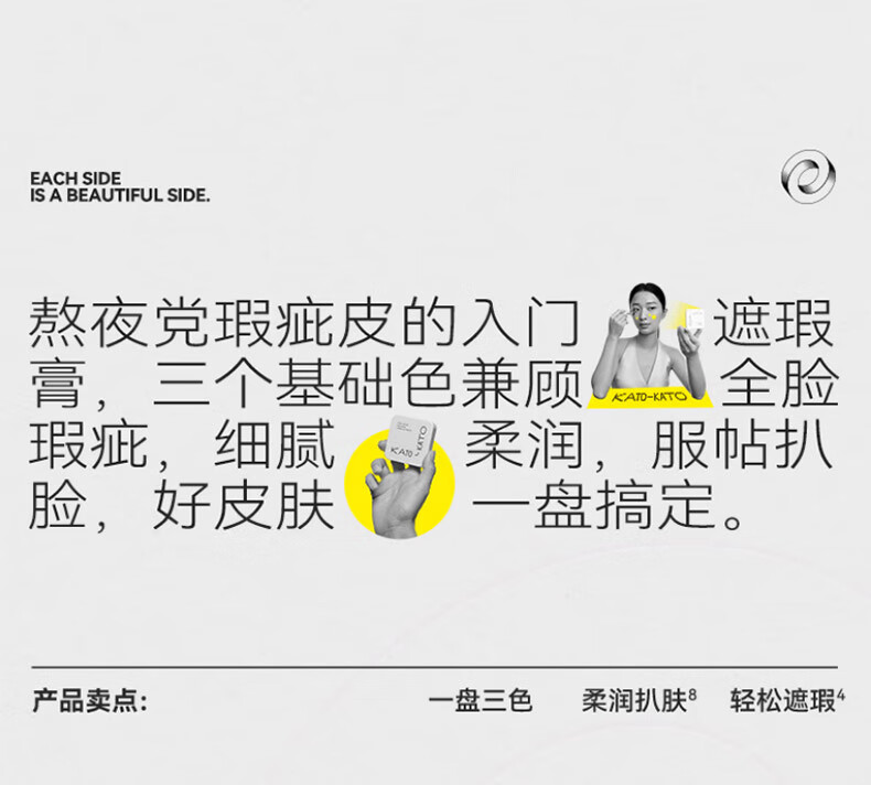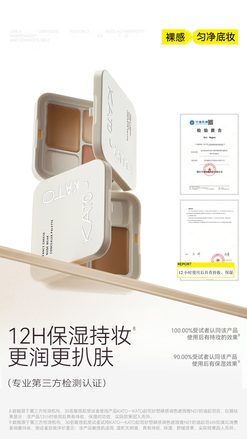 KATO-KATO three-color concealer to cover spots, dark circles, tear troughs, acne marks, liquid brightening, powerful contouring palette, triple cheese concealer 3.9g