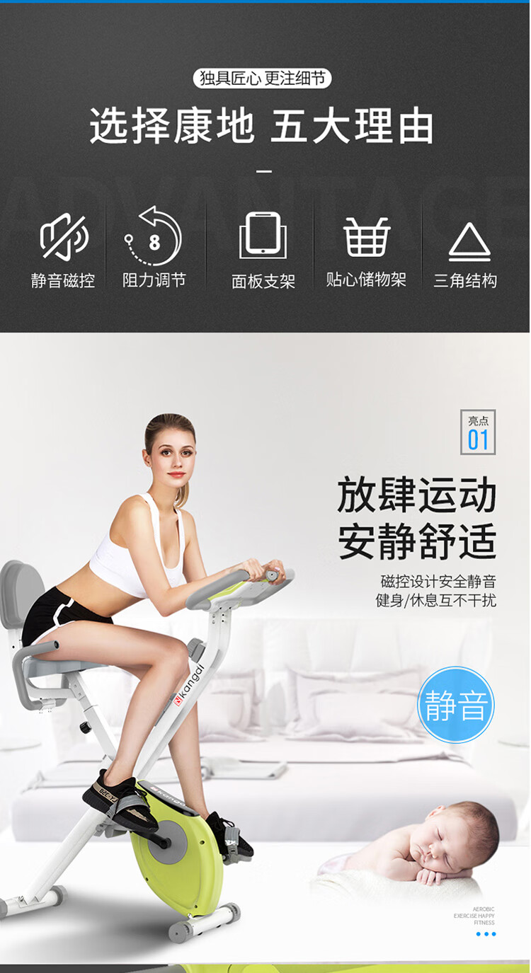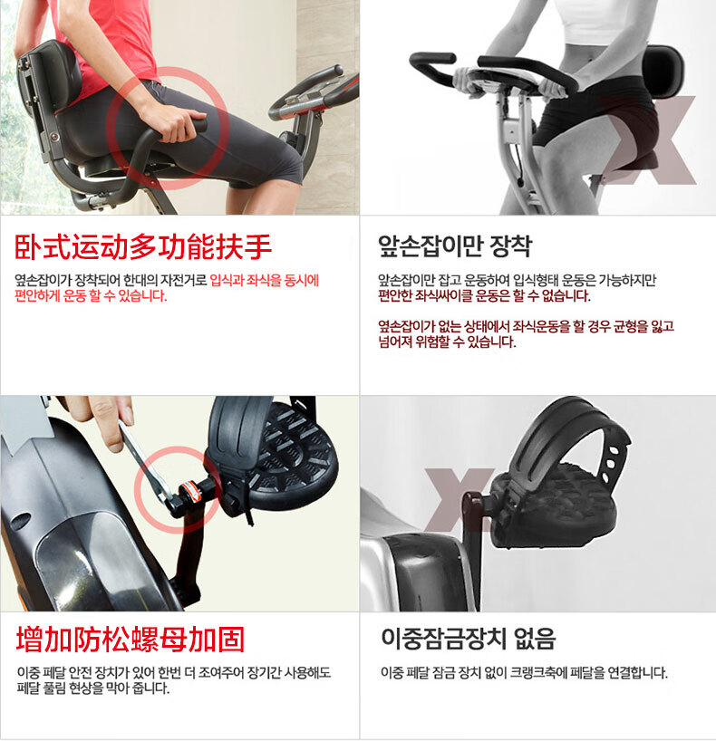 Iosn horizontal exercise bike home magnetic pedal bicycle foldable spinning bicycle indoor sports black magnetic control without backrest + with heart rate