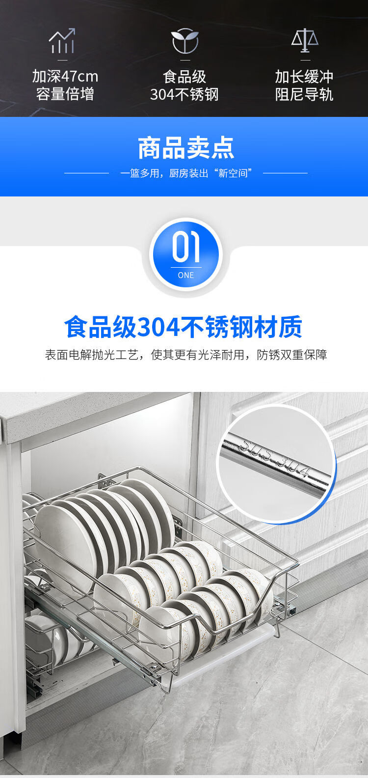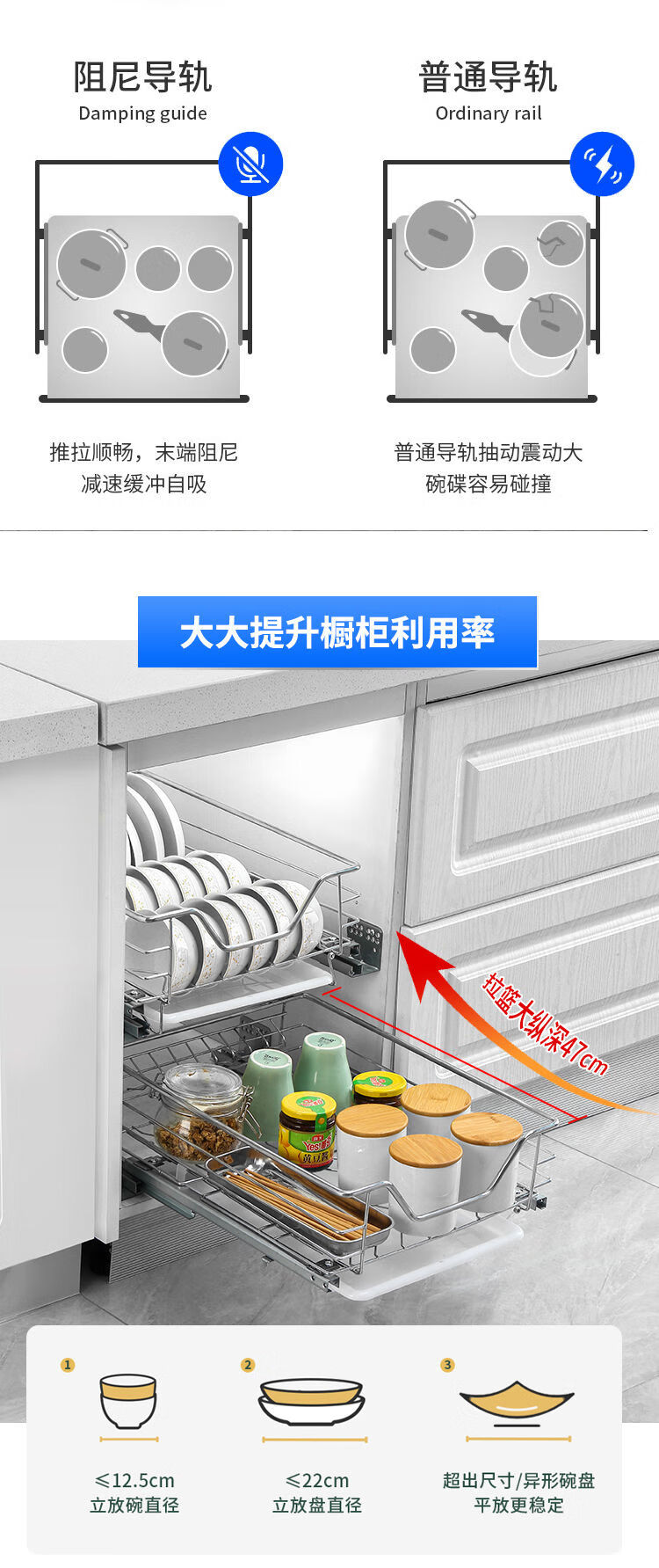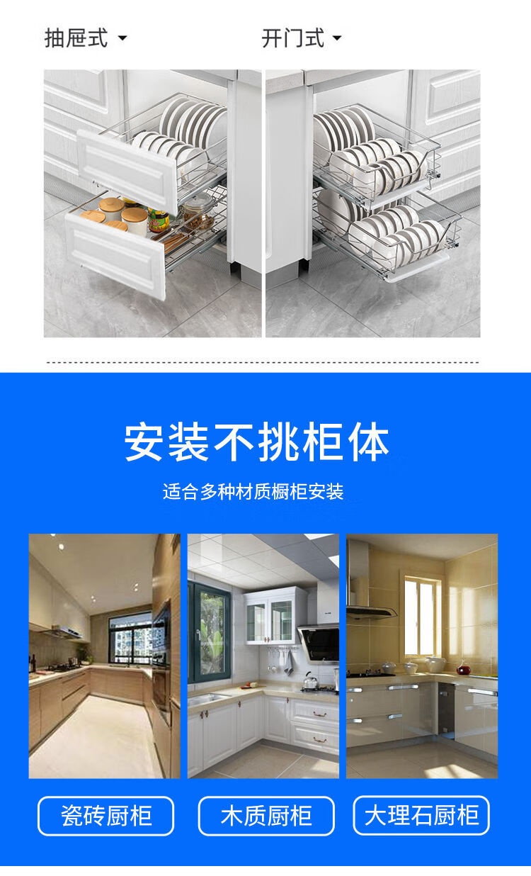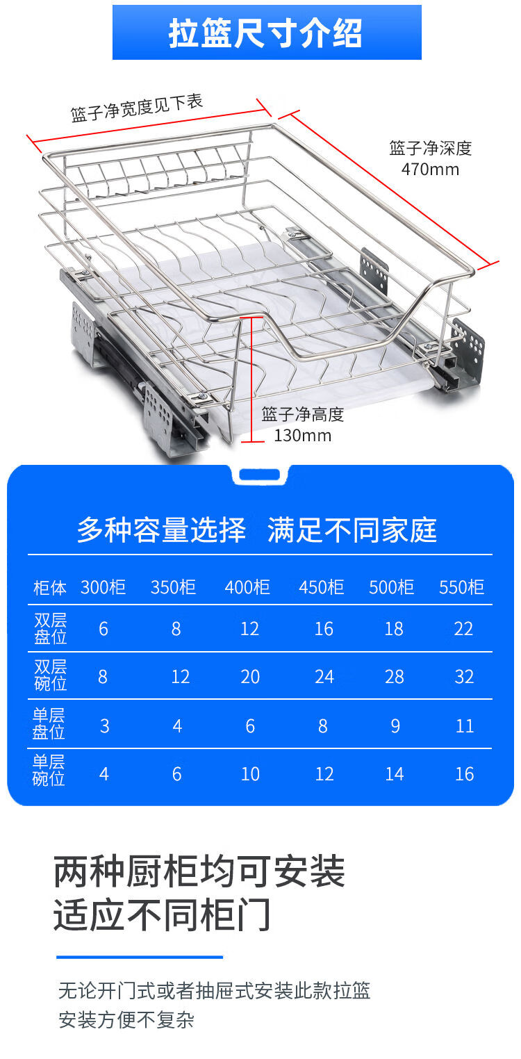 Huili's narrow cabinet pull basket 304 stainless steel double layer kitchen cabinet small size dishes, fruit and vegetable seasoning basket drawer type buffer 300 cabinet tool basket one layer double layer drawer type