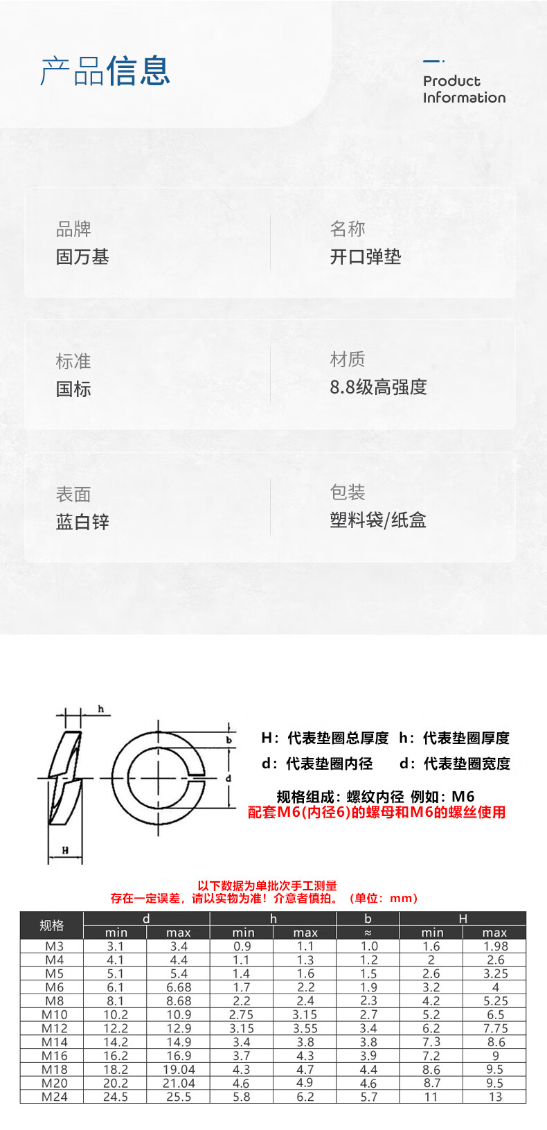 Guwanji grade 8.8 galvanized spring washer open spring washer metal washer screw spring washer M16 40 pieces (thick style)