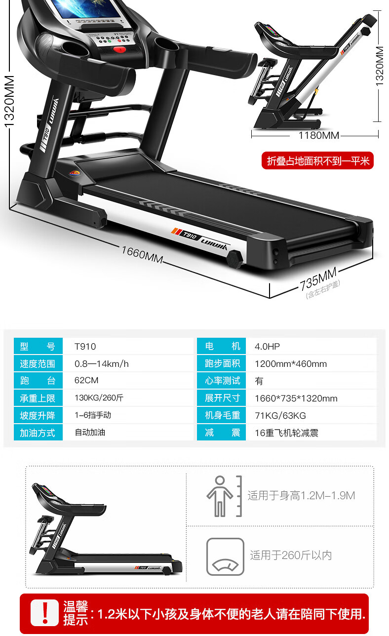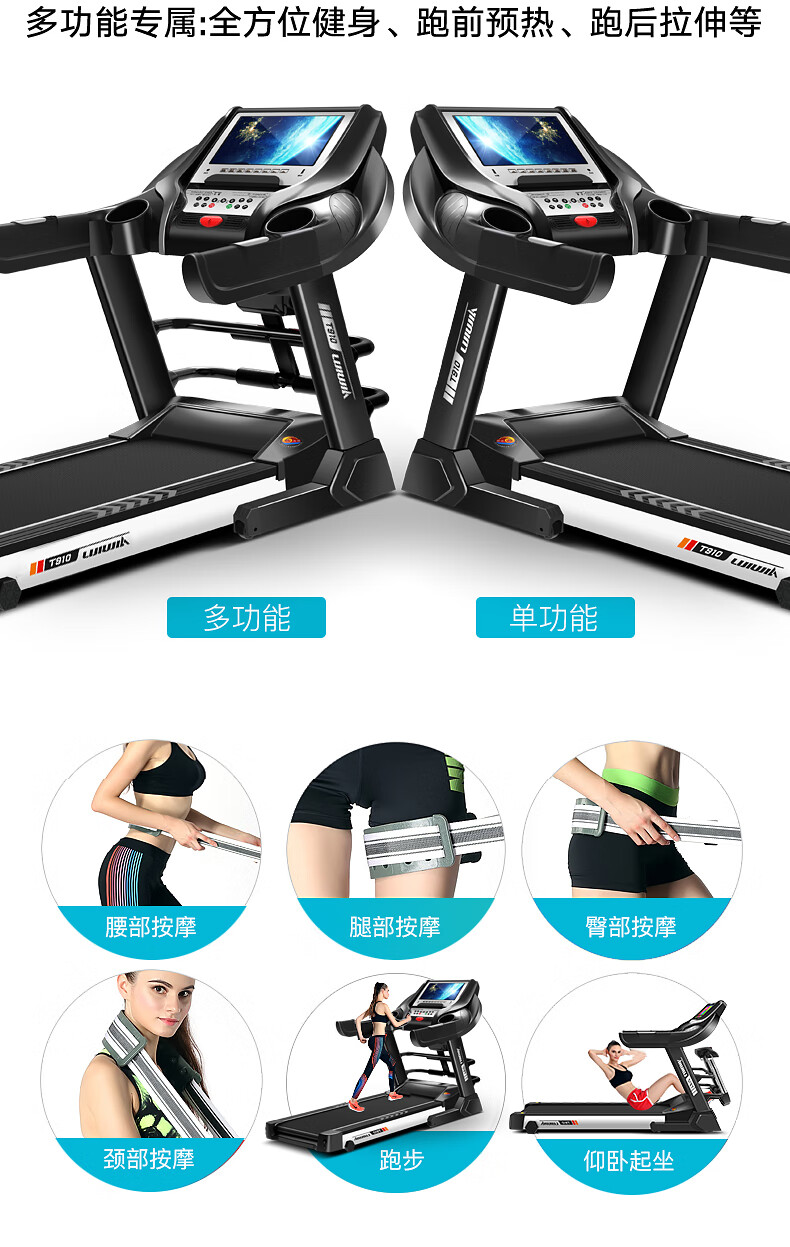 Lijiujia Treadmill Home Indoor Large Foldable Ultra-Quiet Electric Walking Machine Gym Equipment MT900 Bluetooth Version-Single Function 56cm Treadmill None