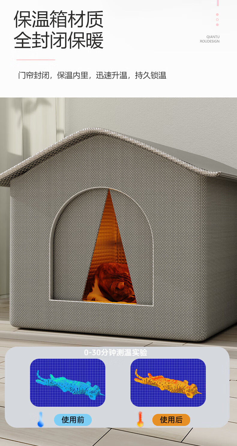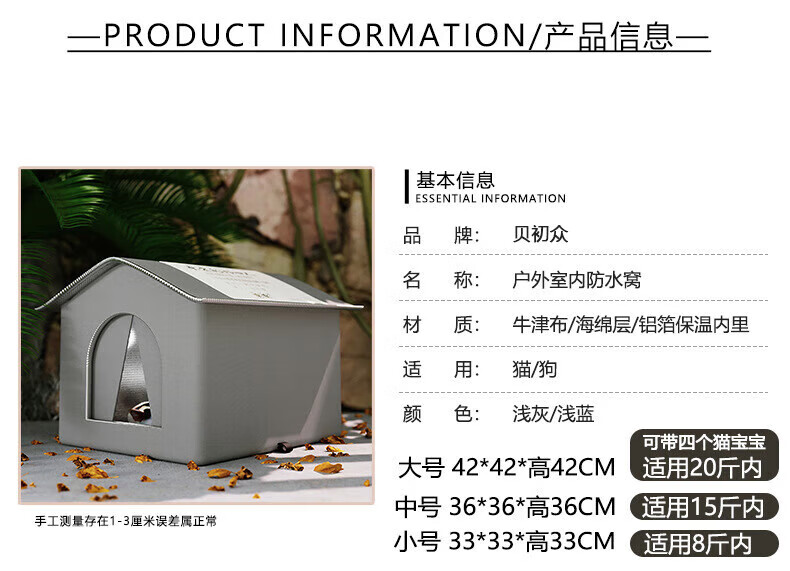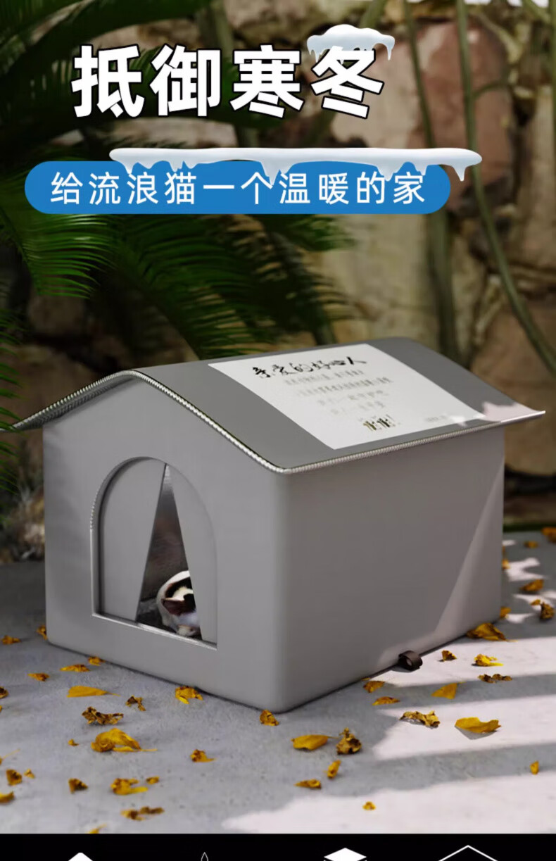 Bei Chuzhong stray cat nest outdoor nest is waterproof, rainproof, cold-proof and windproof, spring warm outdoor cat nest, cat house, sun protection, closed type, large size, suitable for 20 pounds - cat family, 42*42*42, stable structure - large eaves, rainproof - closed with door curtain, gray stray cat nest - warm, locked and waterproof - waterproof and moisture-proof