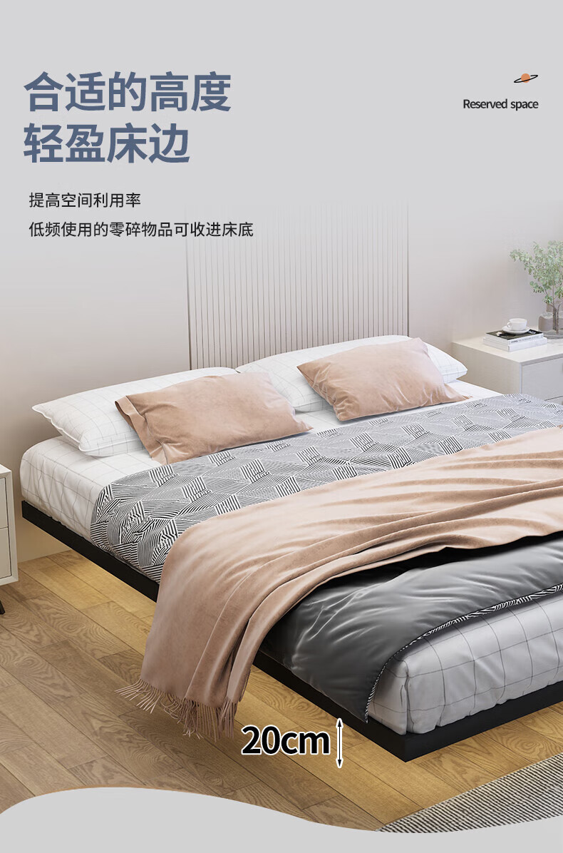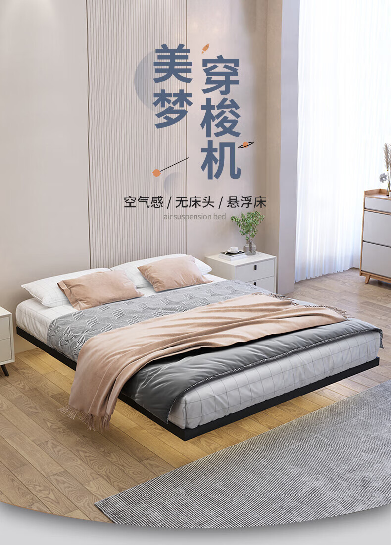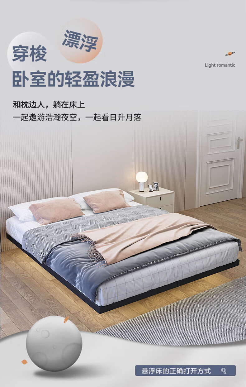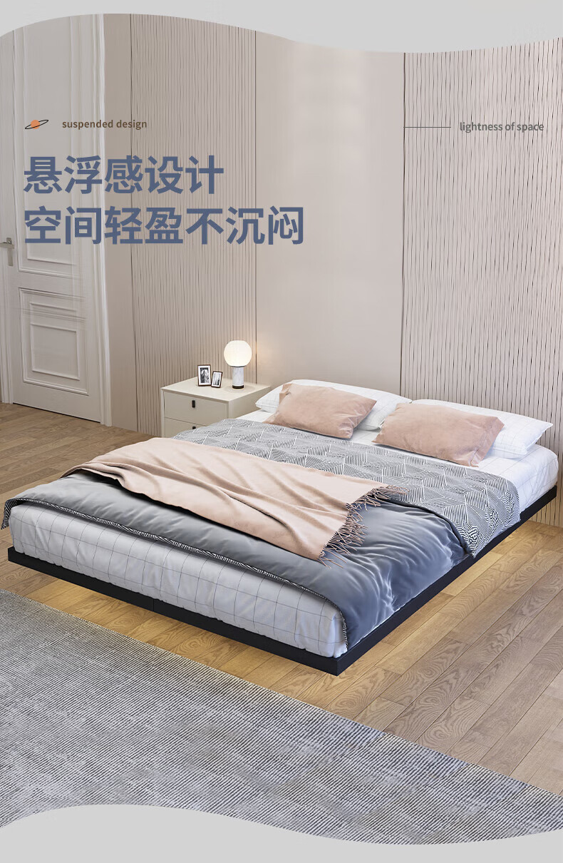 Mengyier suspended bed simple Italian minimalist tatami row frame double master bedroom iron bed suspended bed frame upgraded rounded corners suspended black bed (bold and thickened 1000mm*2000mm