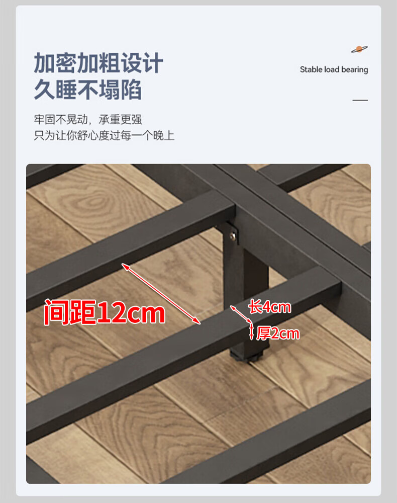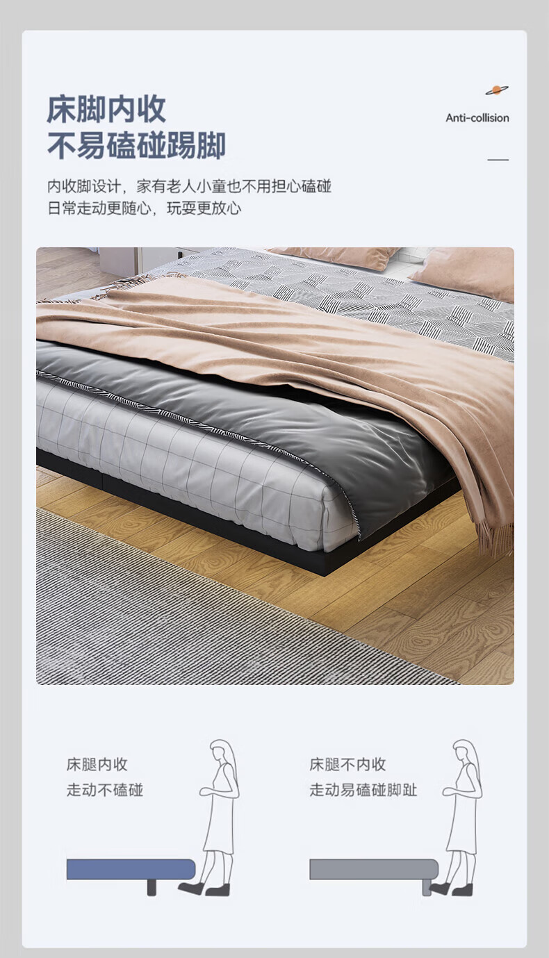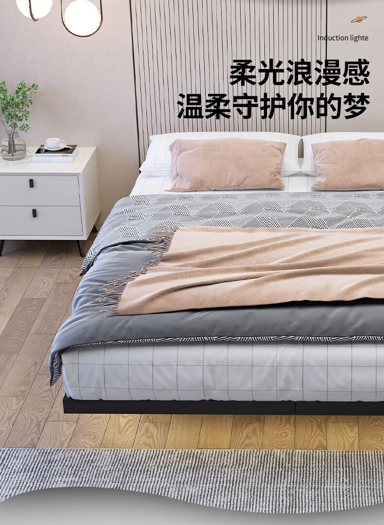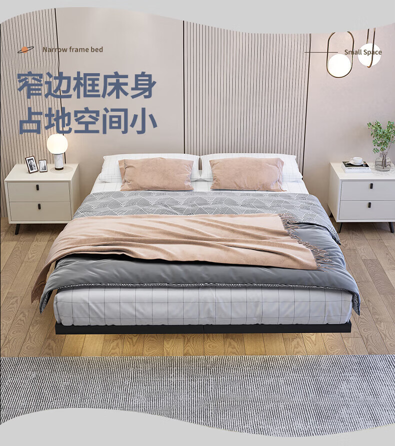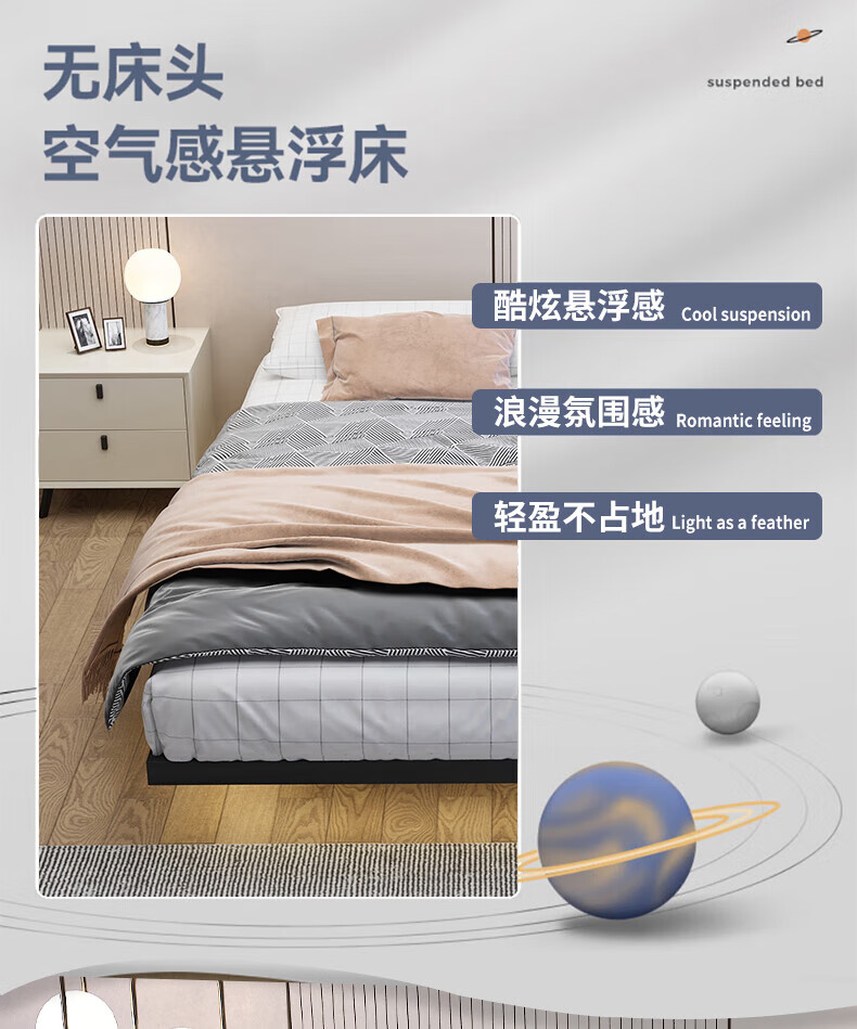 Mengyier suspended bed simple Italian minimalist tatami row frame double master bedroom iron bed suspended bed frame upgraded rounded corners suspended black bed (bold and thickened 1000mm*2000mm