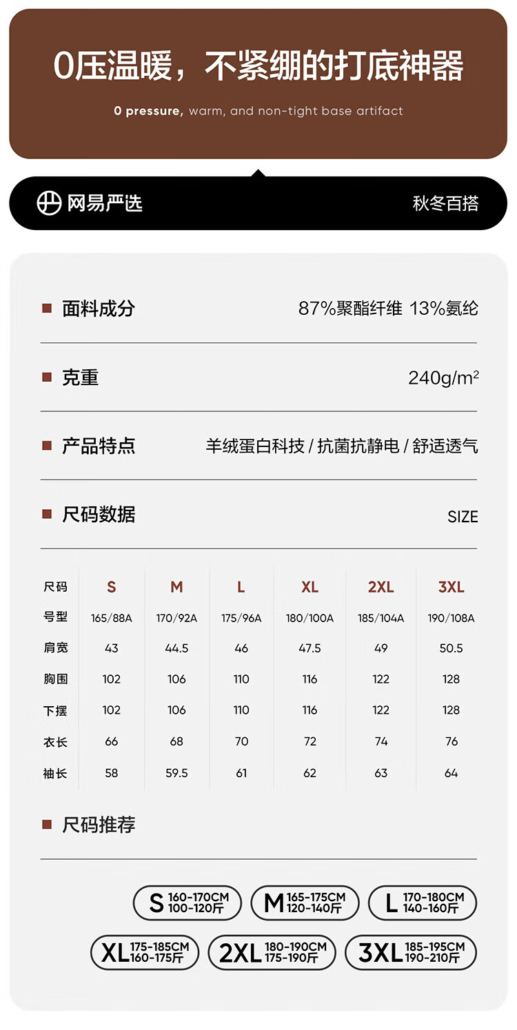 NetEase carefully selects 25 new polar fleece protein bottoming shirts, anti-static, antibacterial, breathable, lightweight, far infrared, warm inner wear, Côte d'Azur L
