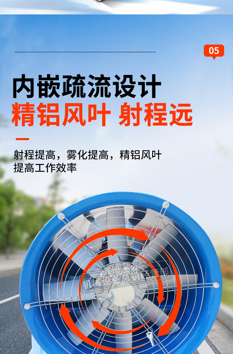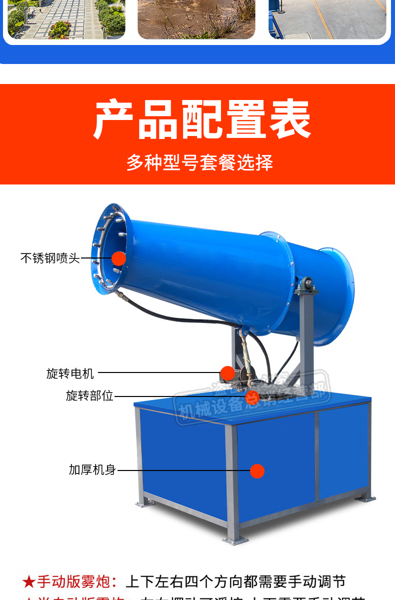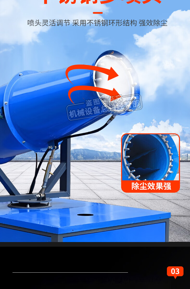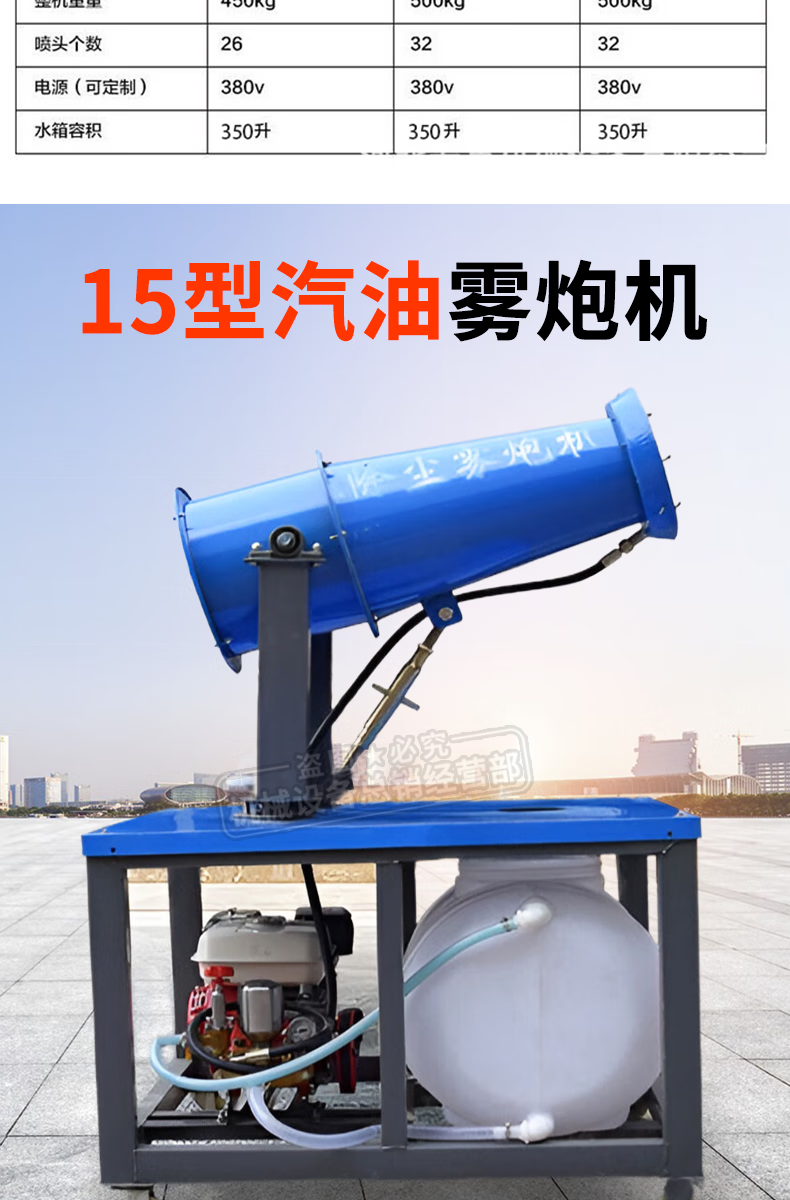 This is a fog cannon machine, construction site dust removal cannon, fog machine, dust-proof, environmentally friendly watering machine, vehicle-mounted movable high-range dust reduction spray machine, environmental impact assessment type three-phase electric fog cannon machine