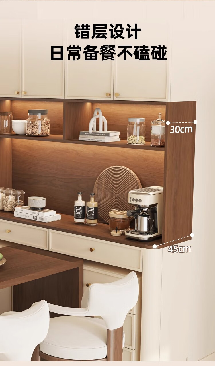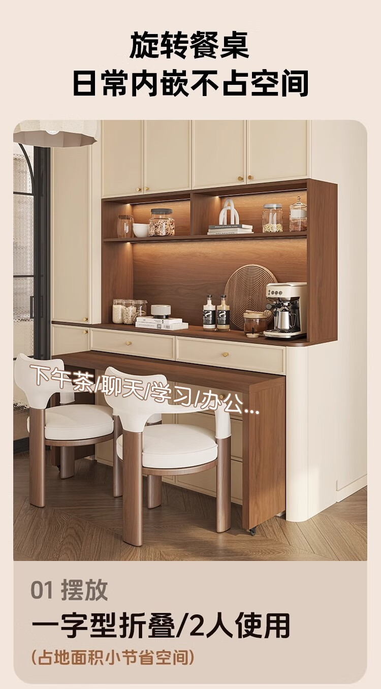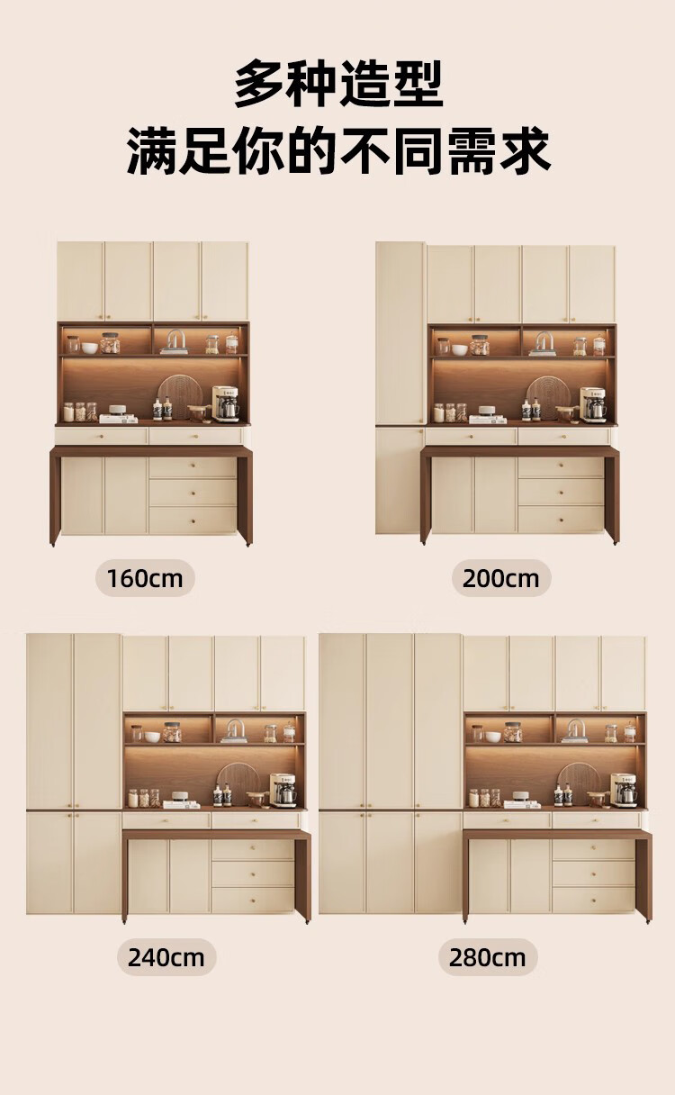 Haiers customized sideboard can be embedded into the dining table, tea cabinet, integrated retractable small apartment, mid-century style arc storage cabinet, length 200, top width, 30 bottom width, 45 table, 70 height, 240 logs