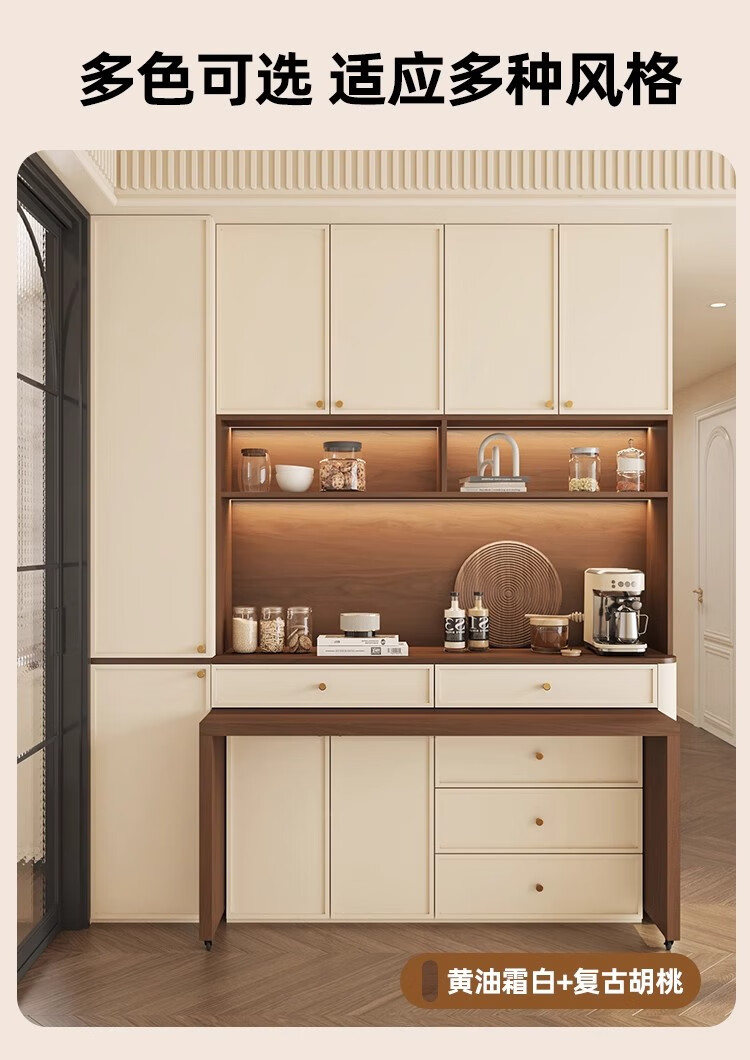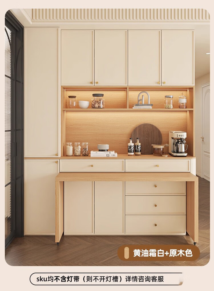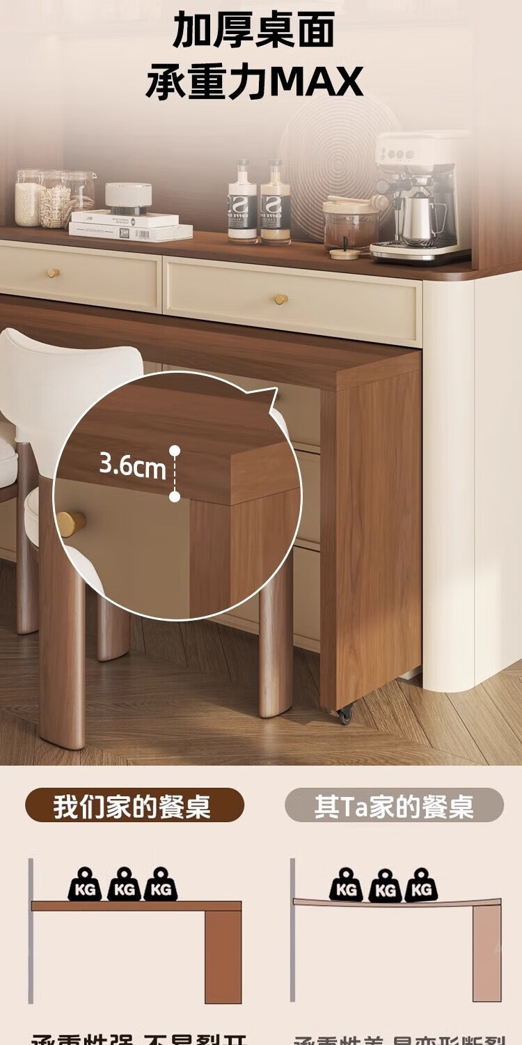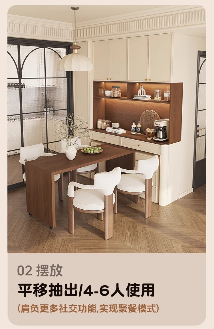 Haiers customized sideboard can be embedded into the dining table, tea cabinet, integrated retractable small apartment, mid-century style arc storage cabinet, length 200, top width, 30 bottom width, 45 table, 70 height, 240 logs