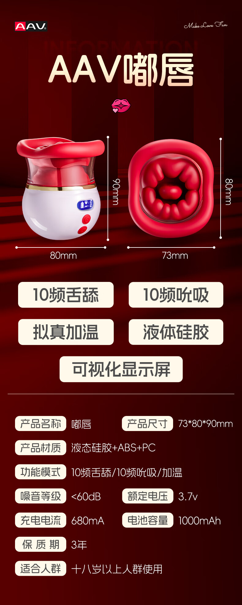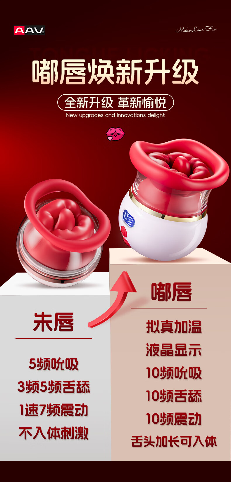 AAV vibrator adult sex toy for women special decompression toy massage artifact masturbation advanced av breast massage AAV fourth generation long tongue model 8cm long tongue into the body | fat lips licking and sucking | mute couple bed love tool women advanced adult toys self-defense massager vibrating egg tongue