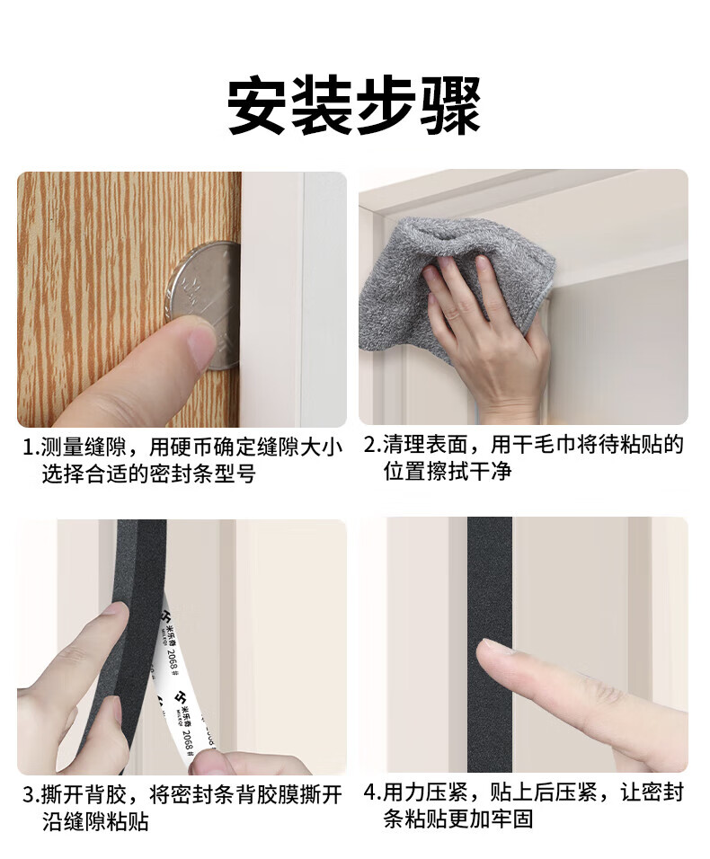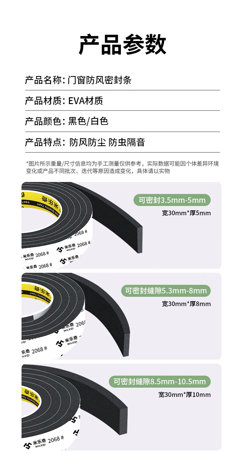 Mileqi door and window door seam door frame door bottom seal strip eva single-sided foam tape high viscosity thickened seal strip noise reduction buffer anti-collision strip bedroom concierge door anti-leakage wind blocking strip 10mm wide * 5 meters long 1mm thick