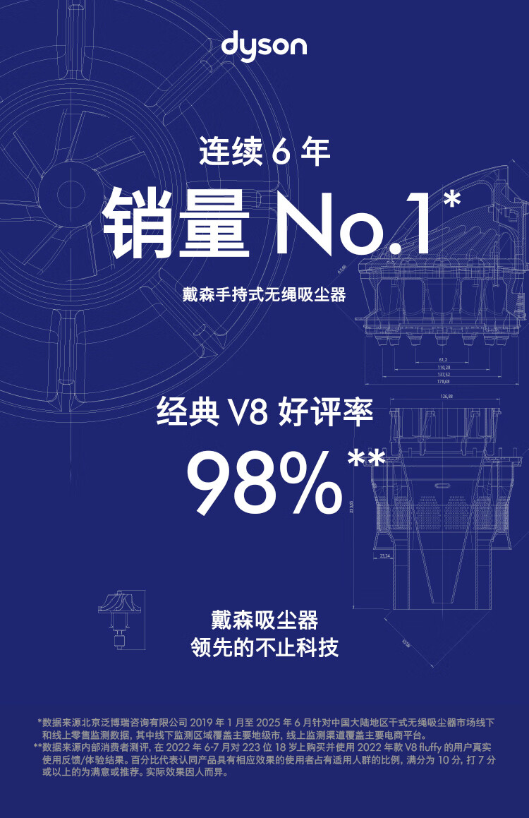 Dyson's new blockbuster V8 Cyclone DS20 cordless vacuum cleaner, handheld wireless, mite removal, pet, family suitable, gift recommendation, 2025 new flagship version