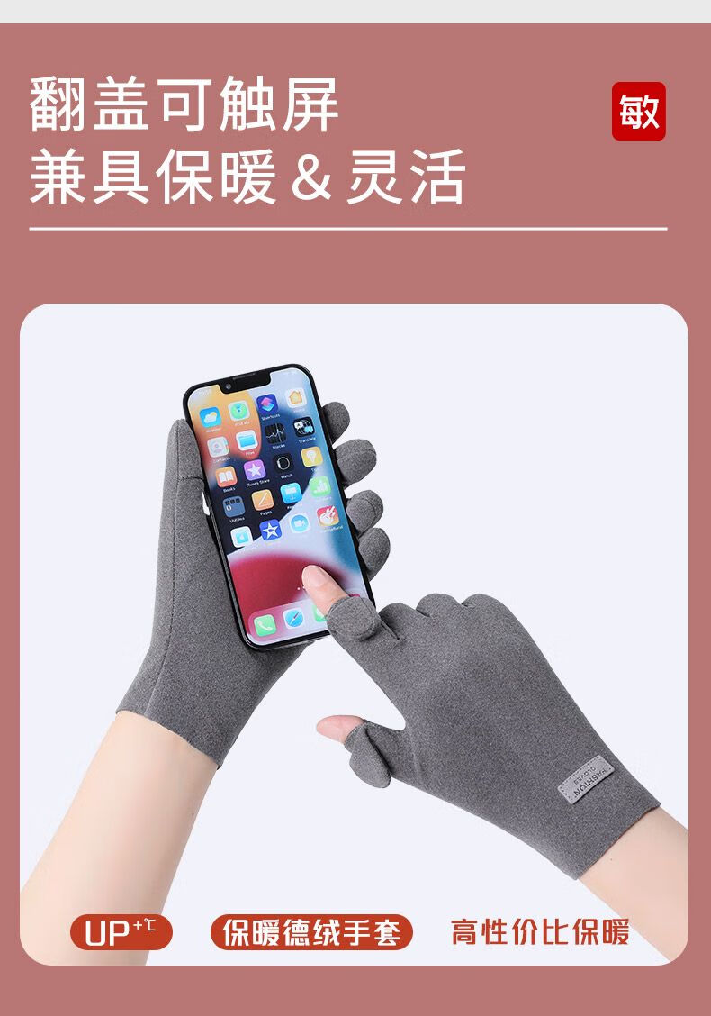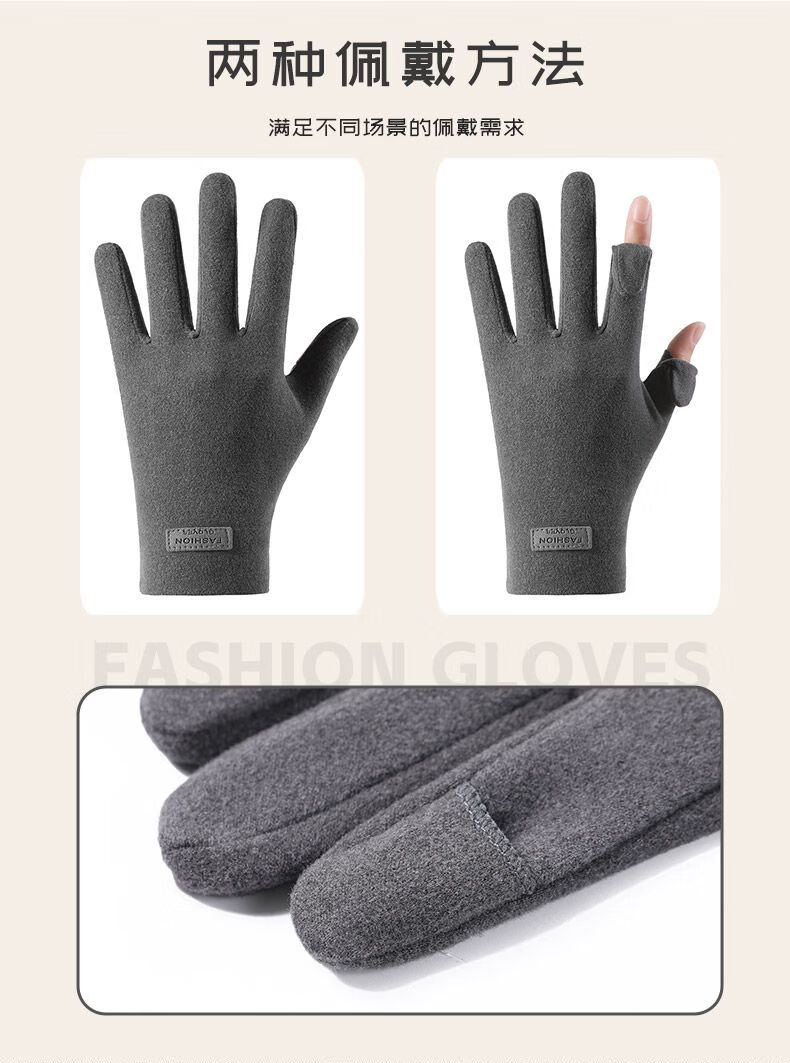 Derong self-heating split-finger gloves for female students to write in winter half-fingered plus velvet warm cycling driving gloves Derong-long finger gray