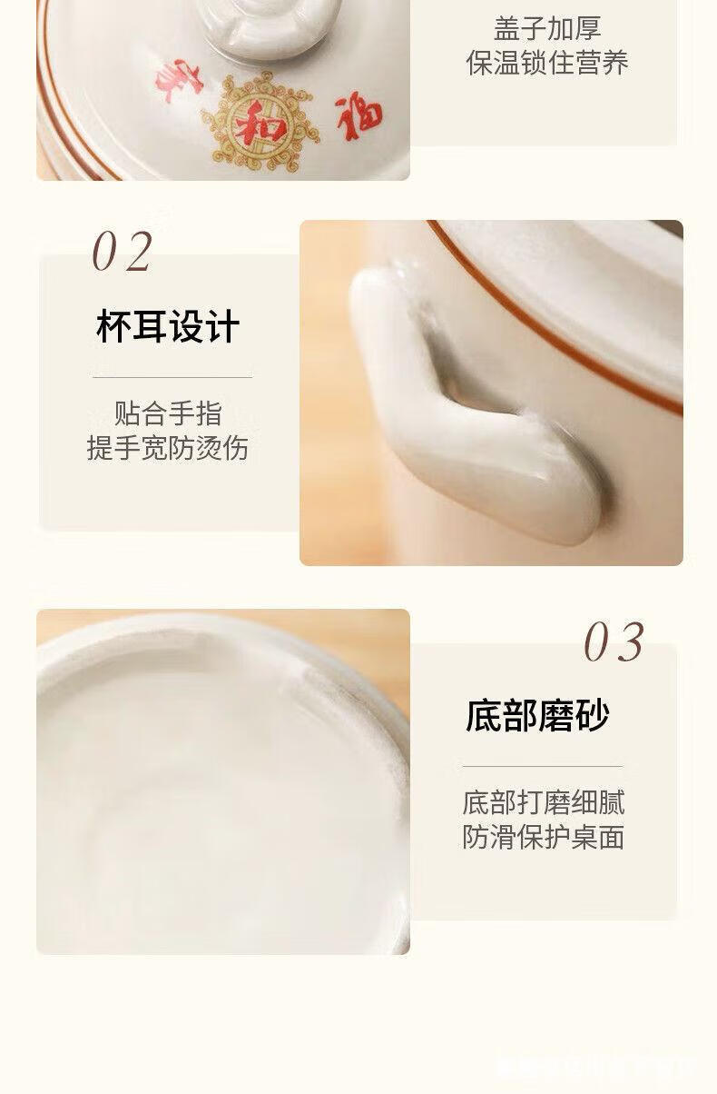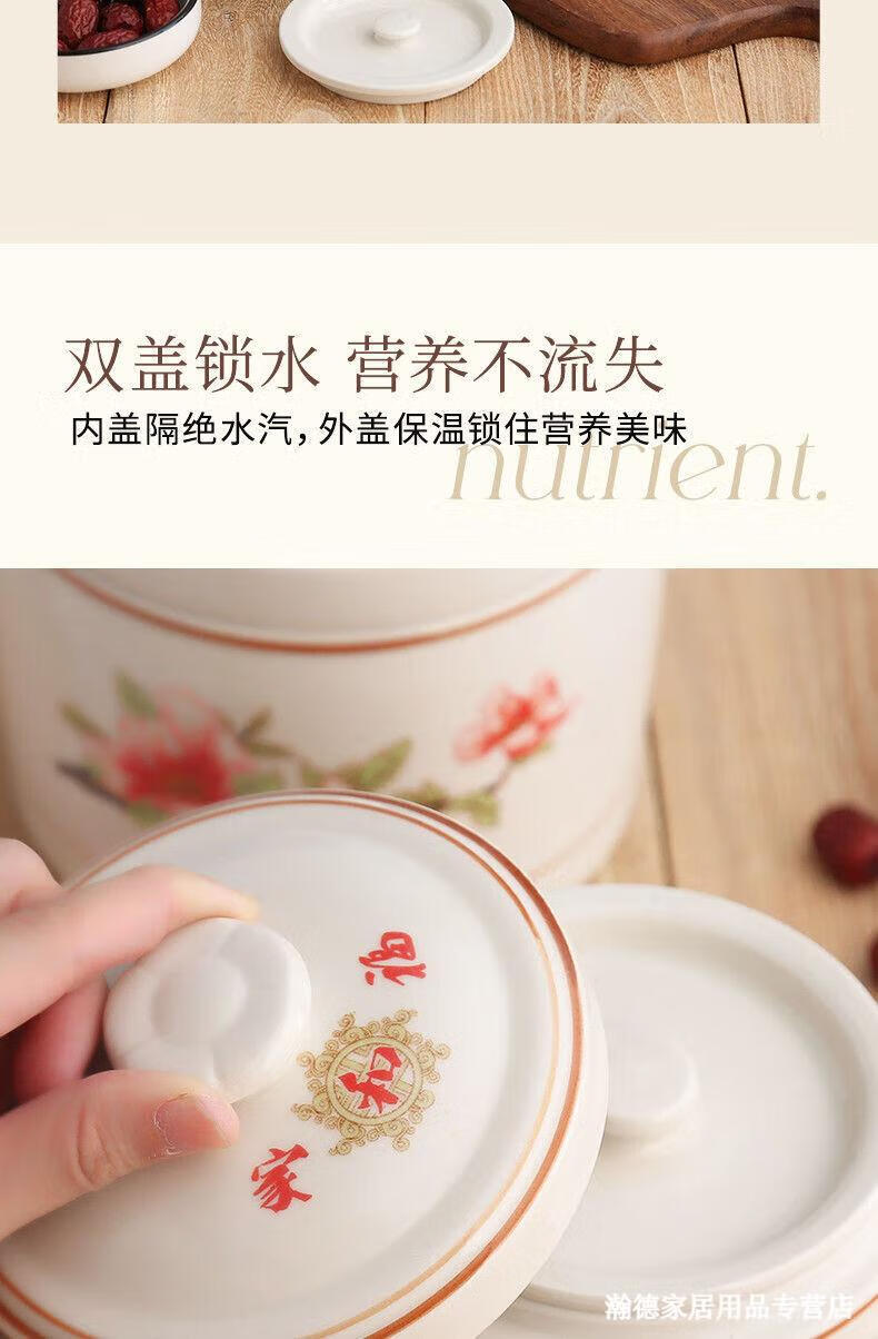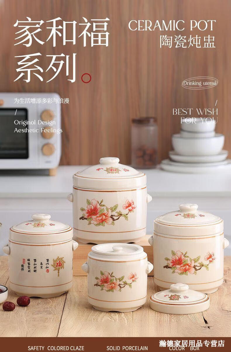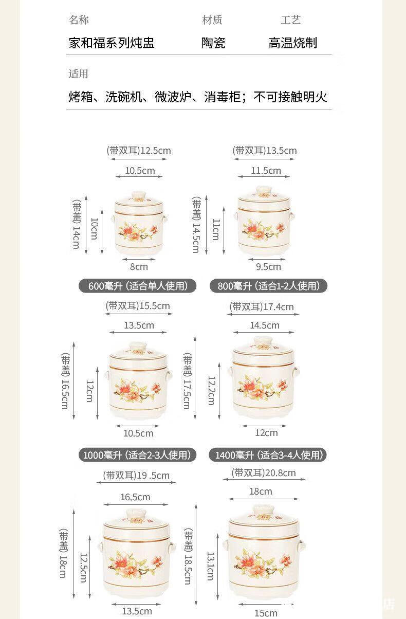Jingle food-grade stew pot, old-fashioned family-sized steam soup pot, stew pot, ceramic double ears and double lid, household soup and ginseng cup, Jiahefu (600ml for 1 person)