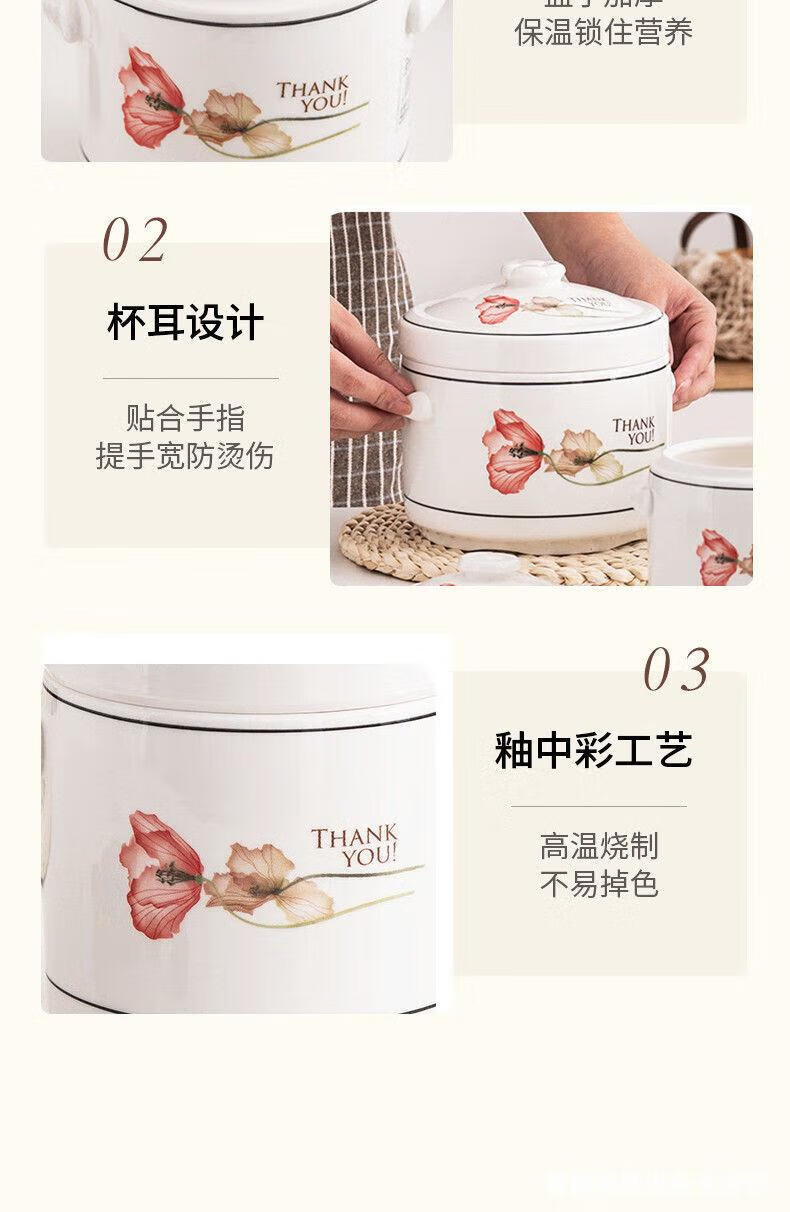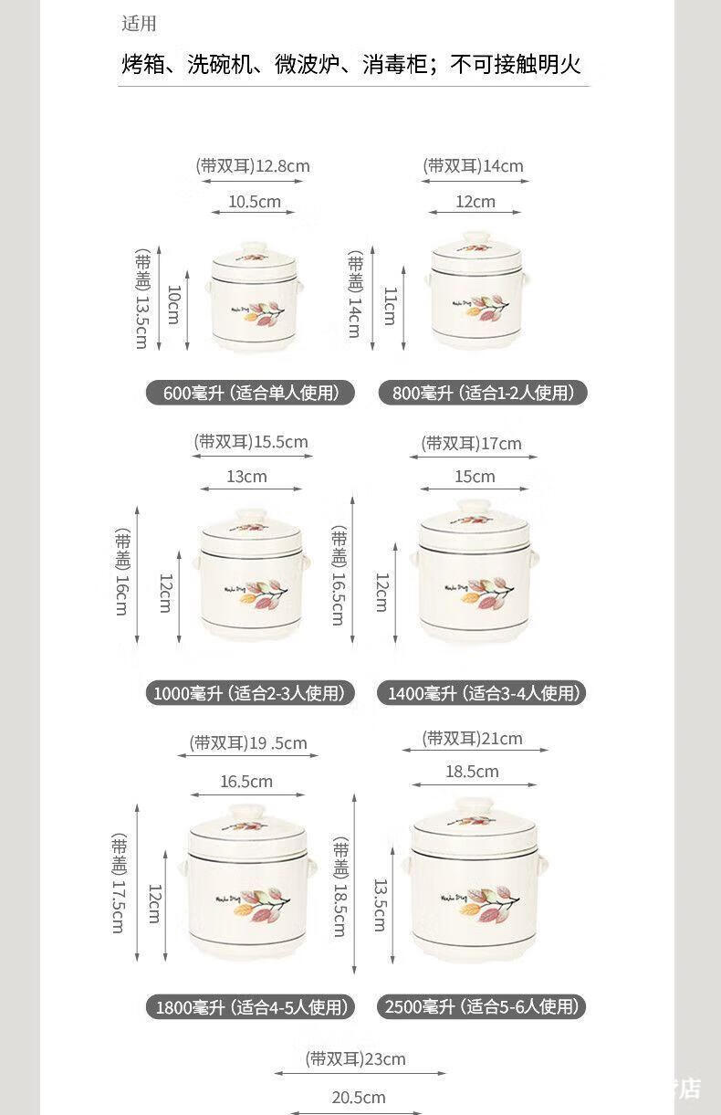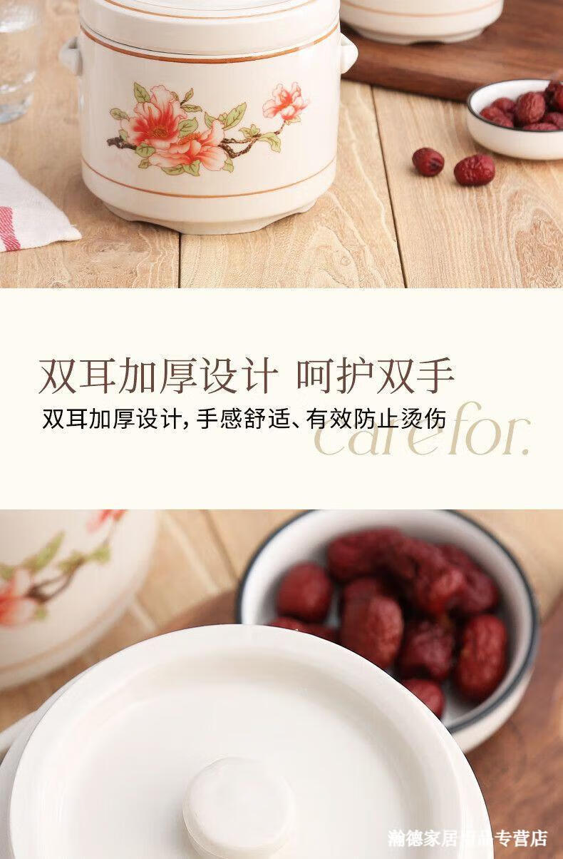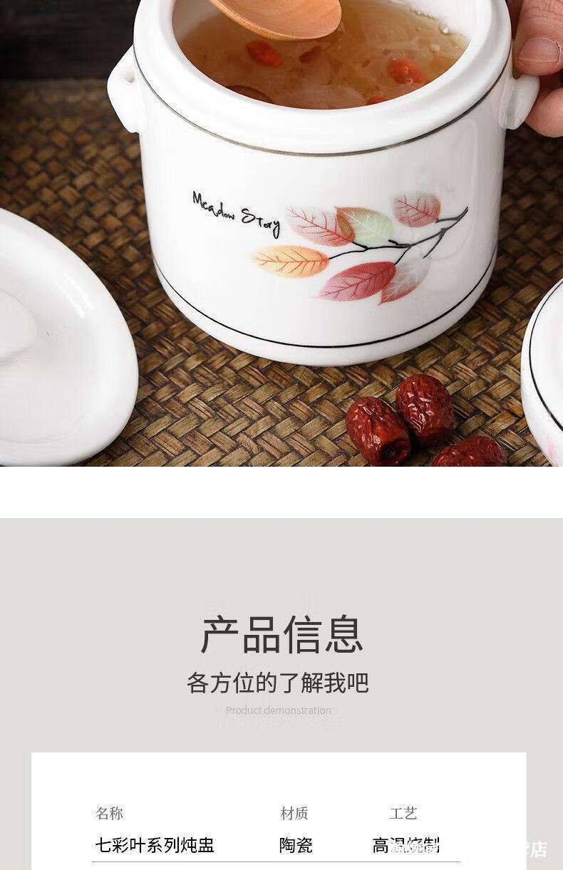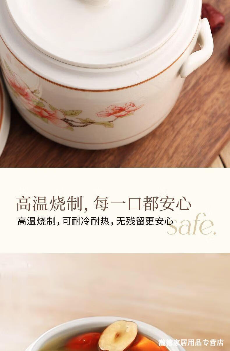 Jingle food-grade stew pot, old-fashioned family-sized steam soup pot, stew pot, ceramic double ears and double lid, household soup and ginseng cup, Jiahefu (600ml for 1 person)