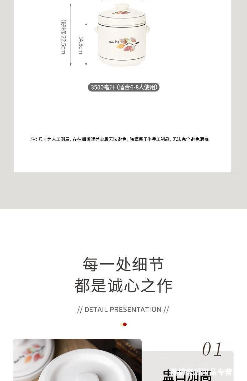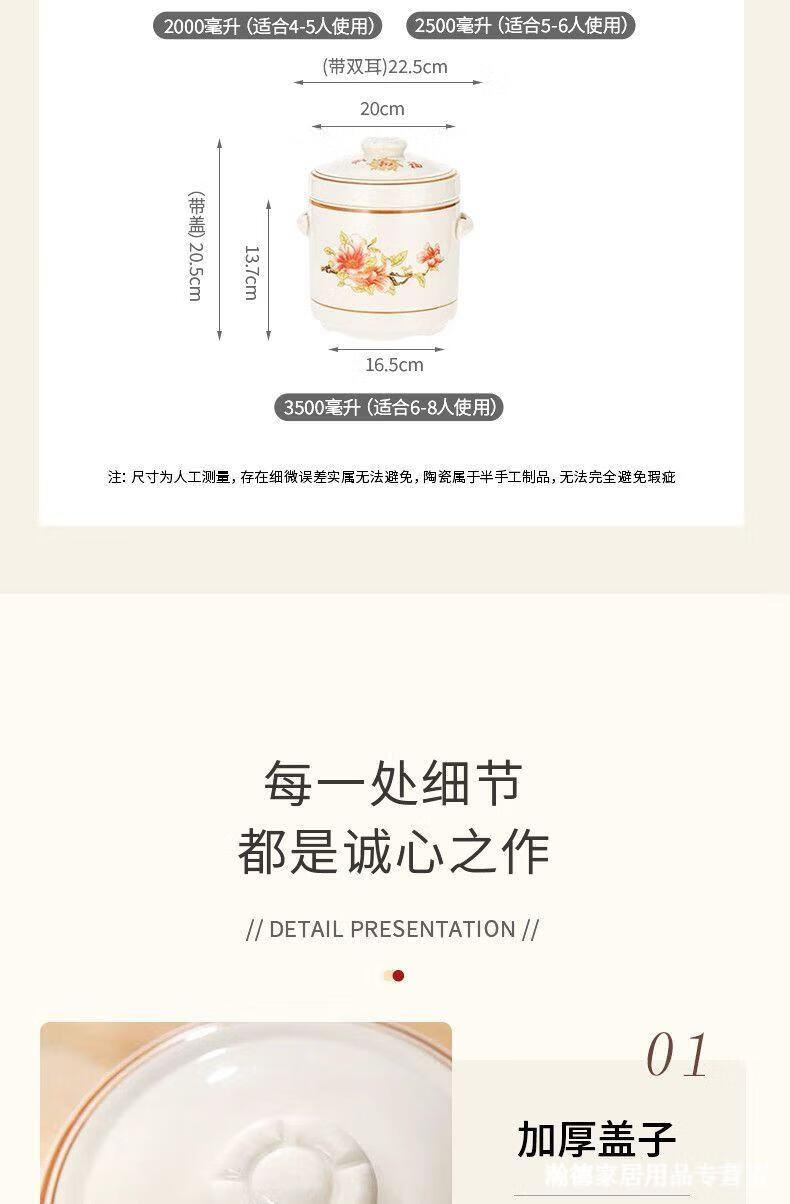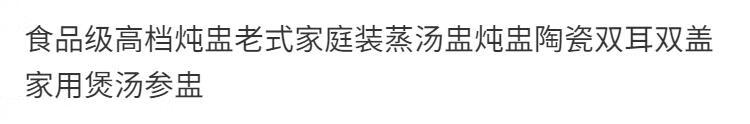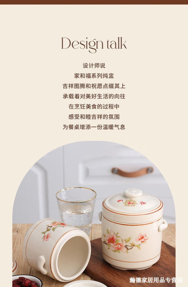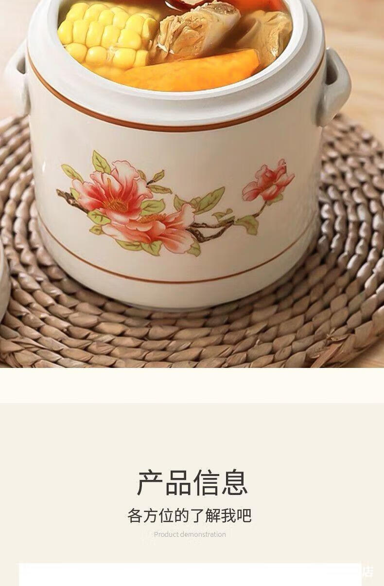 Jingle food-grade stew pot, old-fashioned family-sized steam soup pot, stew pot, ceramic double ears and double lid, household soup and ginseng cup, Jiahefu (600ml for 1 person)